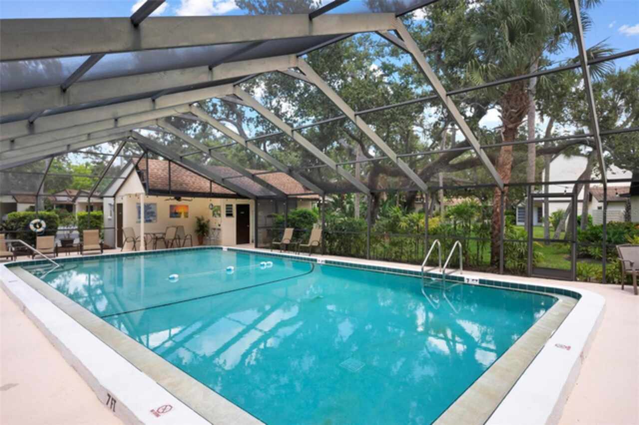 Charming villa just minutes from Siesta Key, surrounded by mature Old Florida landscaping in a private enclave of villa-style condos, close to Gulf Gate and US41. This inviting 2-bedroom, 2-bath home in Sarasota’s desirable Gulf Gate area was built in 1974, blending classic Florida charm with modern comfort. The spacious layout includes a bright Florida room, screened porch, and covered carport. Recent updates feature a newer AC system, new electric panel, and water heater, plus newly paved neighborhood roads. The community offers a tennis/pickleball court and a large screened-in heated swimming pool. Not in a flood zone requiring insurance, this home is available for immediate occupancy, perfect for seasonal or year-round living. Just a 5-minute drive to world-famous Siesta Key Beach and close to shopping, dining, and entertainment, it’s ideal as a permanent home, vacation retreat, or investment property.
