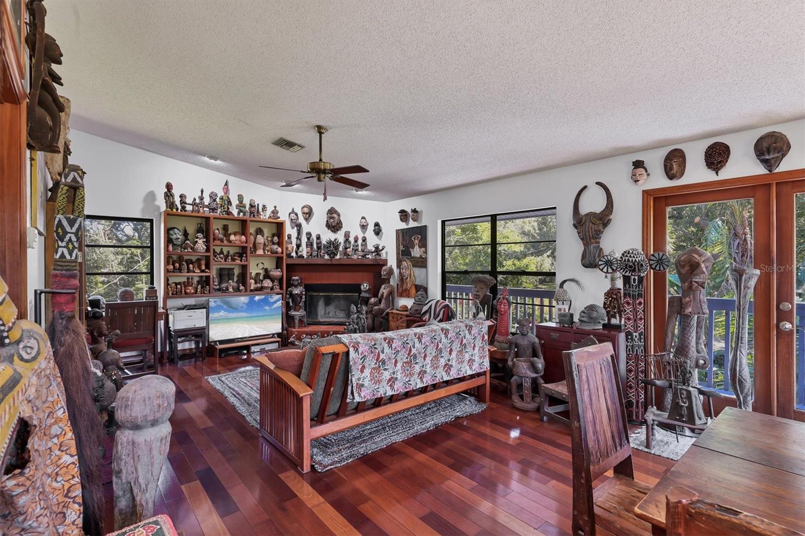 One or more photo(s) has been virtually staged. The most magnificent wooded 10 acres you will ever see with two ponds that are stocked with bass, catfish, tilapia, blue gill and sunfish. The property has a private driveway easement through the property in front of it so it sits back from Myakka Road giving you serene and secluded privacy. It is surrounded by lush nature and abundant wildlife making it ideal for raising animals, horses, cattle, gardening and more. Step inside the first floor bar and entertaining area with office/bedroom and travertine floors. The second floor with terrace that overlooks the patio with fire pit boasts the family room, kitchen and primary bedroom covered in Brazilian cherry hardwood floors. There are 2 sheds and a caged area for raising animals like birds, chicken or dogs. There are endless possibilities with the property. You can add another home, pool or anything that will fit withing the 10 acres. Enjoy the peace and quiet of country-style living at its finest in the fenced 10 acre property. Its strategic locations allows for easy access to Sarasota, Bradenton, St. Pete and popular destinations like Lakewood Ranch, Siesta Key, Lido Beach and Anna Maria Island. No HOA or deed restrictions! Property is just two miles from the north entrance of Myakka State Park. This is A must see live in person property!