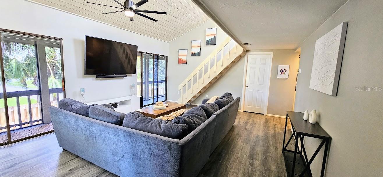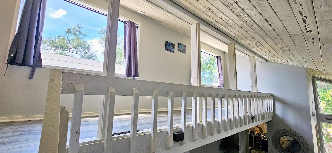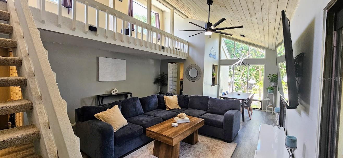 Welcome to this beautifully maintained end-unit condominium ideally situated in one of Sarasota’s most sought-after neighborhoods. Just minutes to vibrant downtown Sarasota’s arts district, offering fine dining, boutique shopping, theaters, and cultural venues. Close to the scenic Bayfront Park and Marina Jack, perfect for waterfront dining, walking trails, and watching sunsets over Sarasota Bay. Easy access to Sarasota Memorial Hospital, world-class beaches (including Siesta Key and Lido Beach), and premier golf courses. This spacious 2-bedroom, 2-bath split-plan layout offers privacy and comfort, ideal for both seasonal or year-round living. As an end unit, this home features extra privacy and natural light, enhanced by soaring vaulted Pecky Cypress ceilings and large transom windows that fill the open-concept living area with abundant light, while adding warmth and architectural character. The open floor plan includes a spacious kitchen, perfect for entertaining, and flows into the main living and dining areas. Enjoy a bonus loft perfect for a home office, guest space, or creative studio, and relax on two private, screened-in lanais—ideal for morning coffee or evening cocktails. Additional features include updated bathrooms, in-unit laundry, and plenty of storage throughout. Whether you're looking for a primary residence, seasonal retreat, or an income-producing property (with 6-month rental capability), this home offers the best of Sarasota living in an unbeatable location.