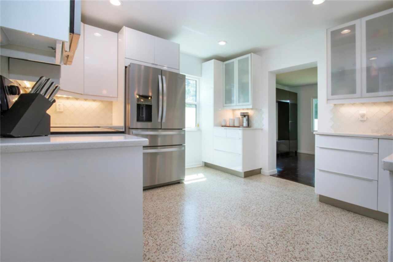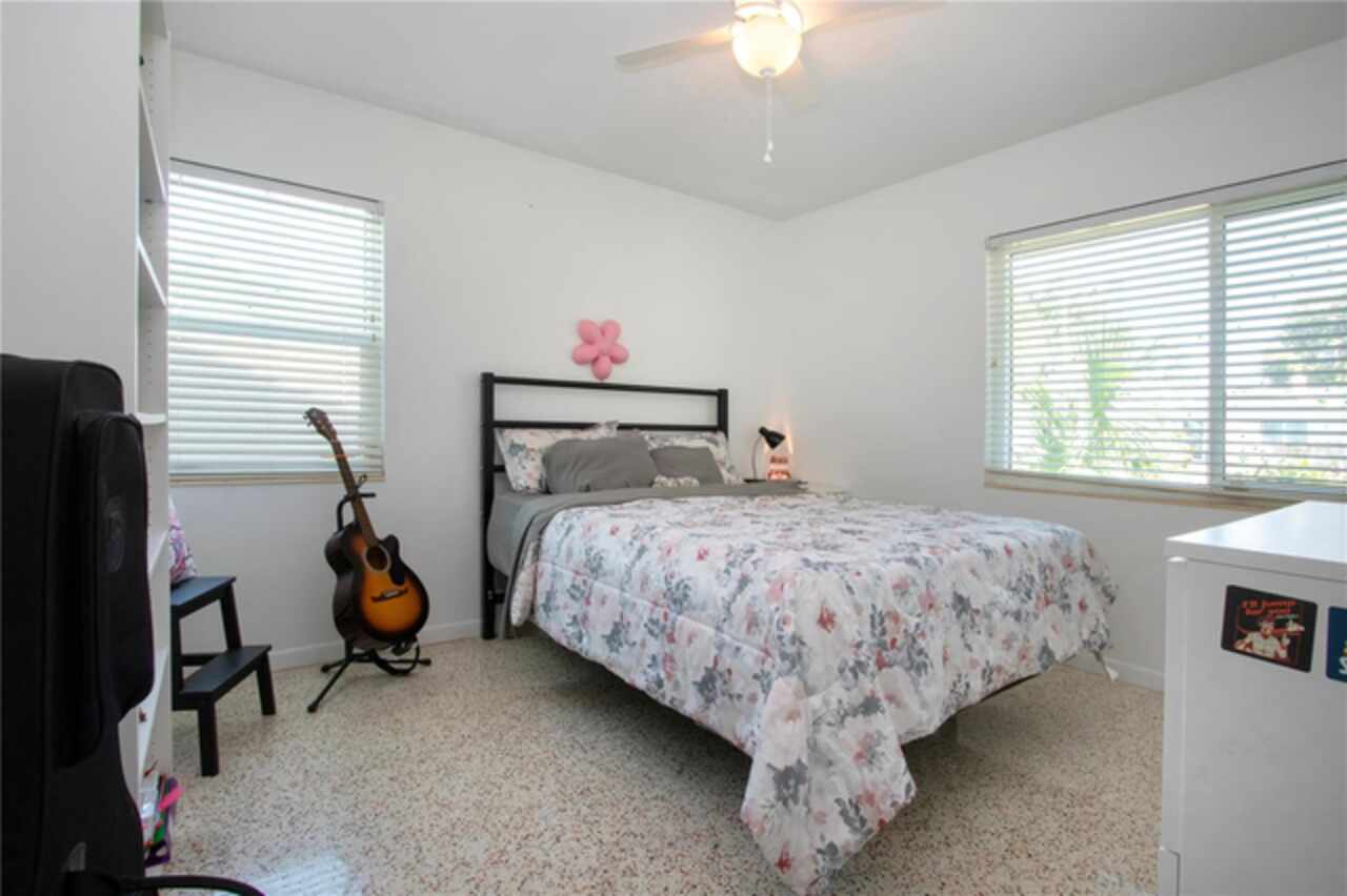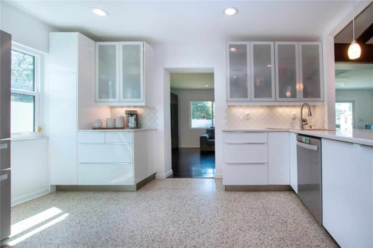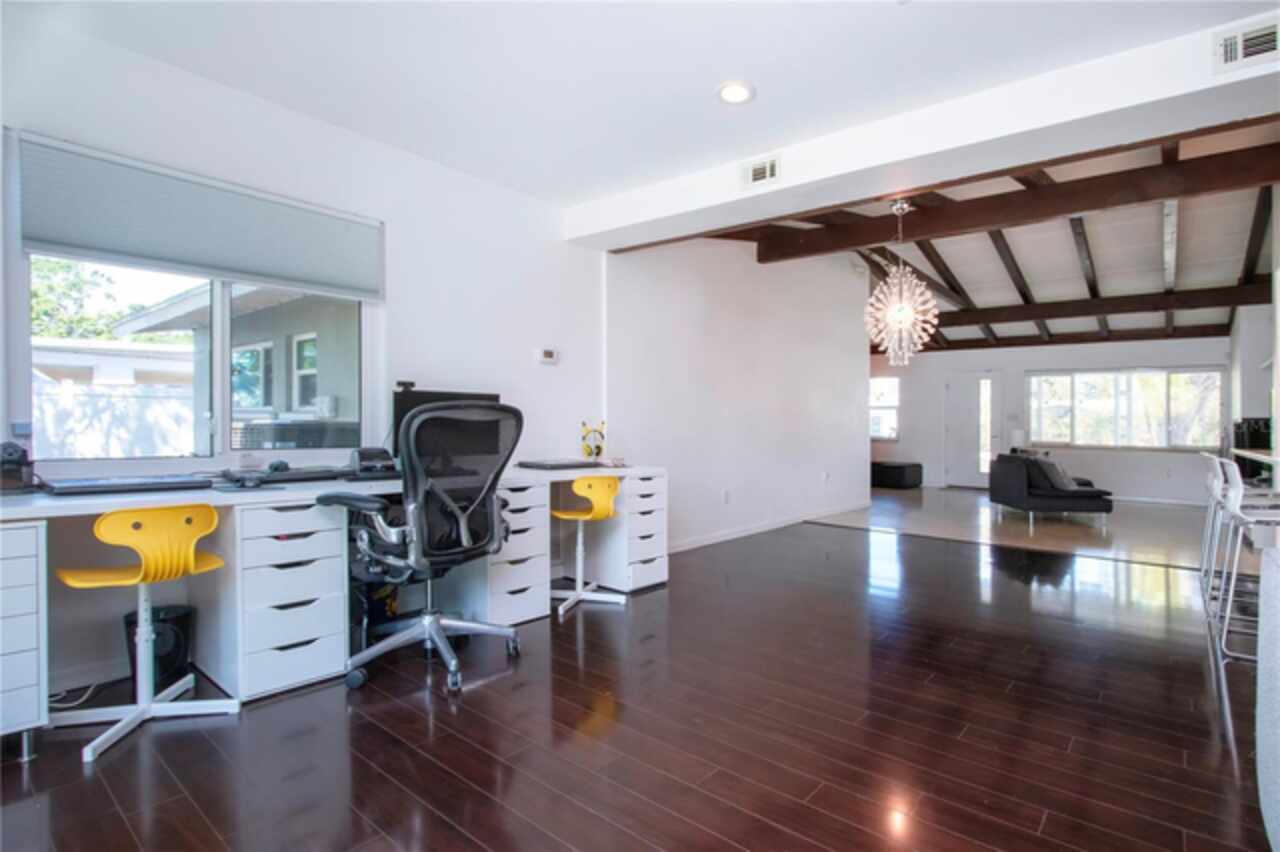 One or more photo(s) has been virtually staged. BACK ON THE MARKET WITH A SIGNIFICANT PRICE REDUCTION!!! Don't let the modest exterior fool you...the drama is inside!! This mid-century home has been completely updated both inside and out! As you enter the home, you are met with soaring cathedral ceilings with exposed beams. The spacious kitchen has been completely updated with sleek modern cabinets, backsplash and quartz counters. The large bar is the perfect spot for the family to gather. The mid century architecture continues with gleaming terrazzo floors, a cool wood-burning fireplace and built-ins in one of the two living areas. A family room addition provides plenty of casual living space as well as easy access to the large private back yard (room for a pool). This home has been made hurricane ready with NEW ROOF WITH EXTRA HURRICANE STRAPS, NEW IMPACT RESISTANCE WINDOWS AND DOORS, TWO NEW AC SYSTEMS, EXTRA ATTIC INSULATION and a SECURITY SYSTEM. Plumbing and electric upgraded in 2014... Walk to Southside School and Brookside Middle School, bike to the beach while enjoying easy access to downtown restaurants and shops.