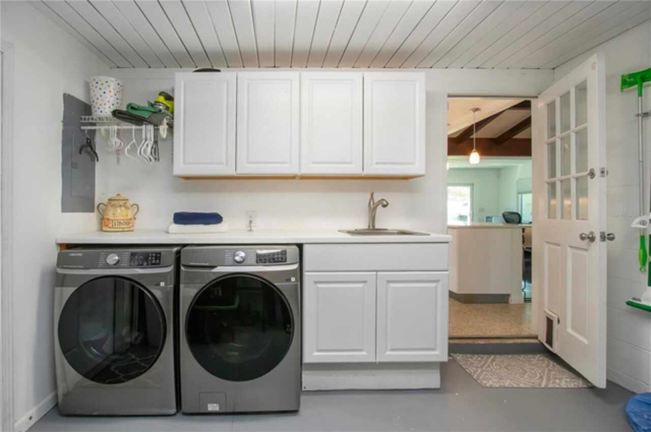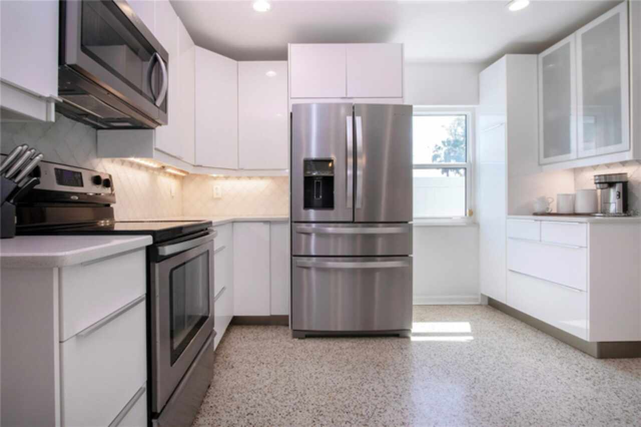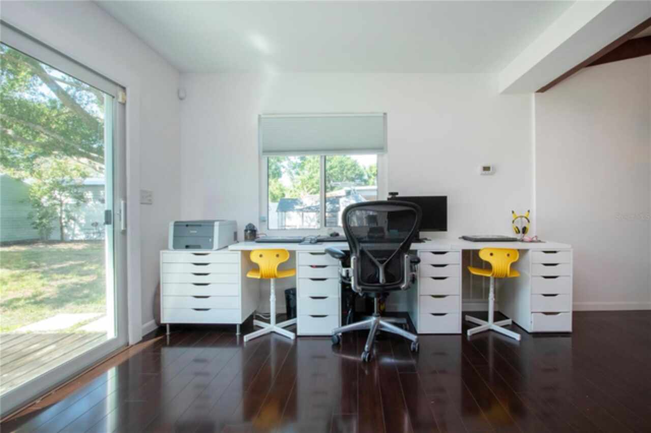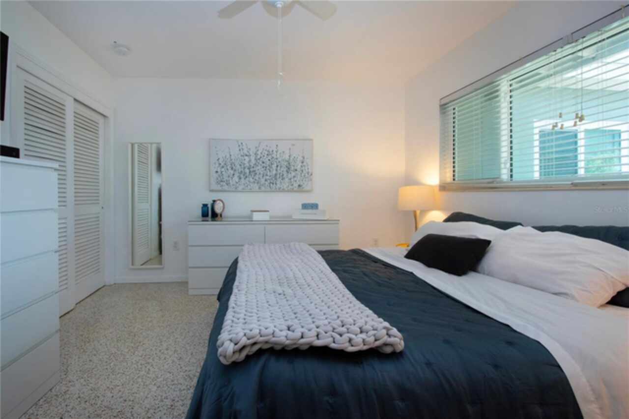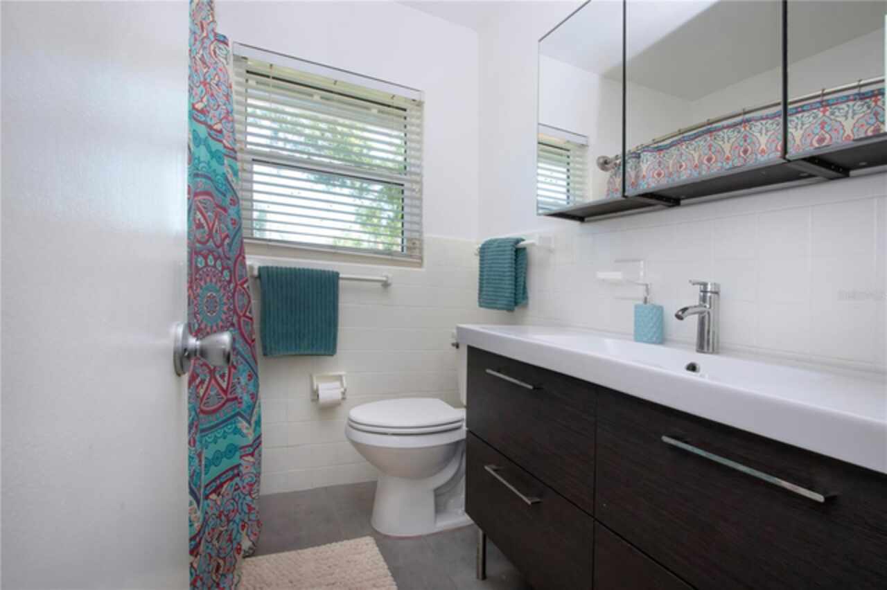 One or more photo(s) has been virtually staged. BACK ON THE MARKET WITH A SIGNIFICANT PRICE REDUCTION!!! Don't let the modest exterior fool you...the drama is inside!! This mid-century home has been completely updated both inside and out! As you enter the home, you are met with soaring cathedral ceilings with exposed beams. The spacious kitchen has been completely updated with sleek modern cabinets, backsplash and quartz counters. The large bar is the perfect spot for the family to gather. The mid century architecture continues with gleaming terrazzo floors, a cool wood-burning fireplace and built-ins in one of the two living areas. A family room addition provides plenty of casual living space as well as easy access to the large private back yard (room for a pool). This home has been made hurricane ready with NEW ROOF WITH EXTRA HURRICANE STRAPS, NEW IMPACT RESISTANCE WINDOWS AND DOORS, TWO NEW AC SYSTEMS, EXTRA ATTIC INSULATION and a SECURITY SYSTEM. Plumbing and electric upgraded in 2014... Walk to Southside School and Brookside Middle School, bike to the beach while enjoying easy access to downtown restaurants and shops.