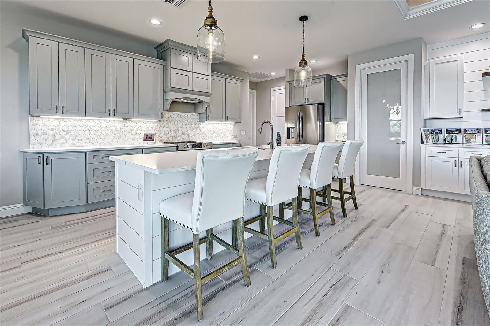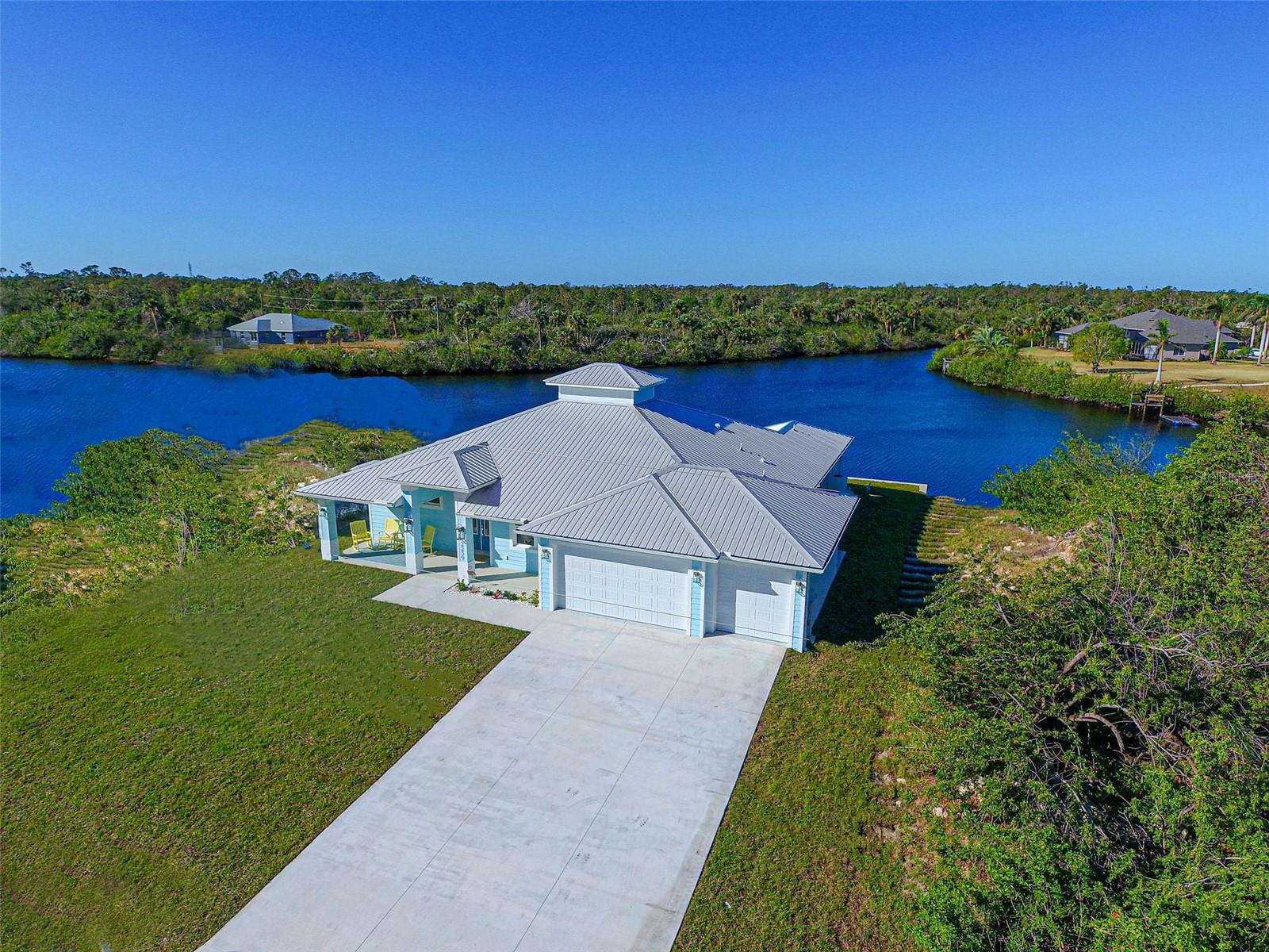 This award-winning model home is truly a gem! Hurricane tested and high and dry! As you step through the front door, the breathtaking waterfront view immediately captivates your attention, setting the tone for a home filled with elegance and charm. The seamless flow of the open floor plan, accentuated by the corner impact slider, creates a welcoming space that is perfect for hosting gatherings both indoors and outdoors. The inclusion of a separate office or flex space adds versatility to the layout, while the abundance of closets and the oversized walk-in pantry ensure that storage is never an issue in this thoughtfully designed home. The primary bedroom, with ample room for a king-size bed and dressers, offers a peaceful retreat complete with not one, but two walk-in closets. The en suite primary bathroom promises a spa-like experience, adding a touch of luxury to your everyday routine. Guests will feel right at home in the second bedroom, which boasts a queen-size bed accommodation, generous closet space, and its very own en suite bathroom for added convenience and privacy. The third bedroom continues the theme of comfort and functionality, providing another queen-size bed option along with plenty of closet space to keep belongings organized. To top it off, the oversized garage ensures that parking is never a hassle, accommodating even a full-size truck with ease. This home truly offers a blend of beauty, functionality, and comfort, making it a rare find that is not to be missed. If you're interested in experiencing the magic of this model home firsthand, don't hesitate to schedule a tour today. Seeing the property in person will allow you to fully appreciate all its features and envision the possibility of calling this stunning waterfront retreat your own.
