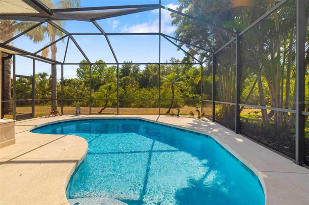Welcome to Greyhawk Landing, a gated, multigenerational community located in beautiful Florida! This meticulously maintained 4-bedroom, 3-bath pool home sits on a private preserve lot and showcases a new roof, newer A/C, and 2, 230 sq. ft. of thoughtfully designed living space. The split-bedroom layout offers a stylish kitchen with wood cabinetry, gas appliances, tile backsplash, and breakfast nook, plus a formal dining room that flows seamlessly into the spacious living area. The primary suite features dual closets, dual vanities, a soaking tub, and direct lanai access. Enjoy peaceful preserve views from the screened pool and spa—perfect for morning coffee or Florida sunsets. Residents of Greyhawk Landing enjoy resort-style amenities including two pools, a fitness center, tennis and pickleball courts, playgrounds, sports fields, walking trails, fishing pier, and bass-stocked ponds—all for only $75/year HOA fee. It is conveniently located near Lakewood Ranch schools, dinning, medical facilities, I75, golf courses, UTC Mall, and the award-winning Gulf beaches.