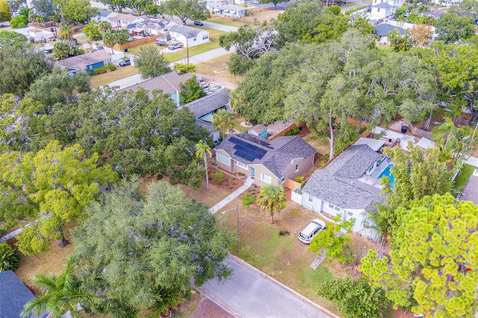 Nestled in the heart of the highly sought-after Coffee Pot Bayou neighborhood, this home offers the perfect blend of modern updates and classic Florida appeal. This inviting home features an open kitchen and living room layout ideal for both everyday living and entertaining. The kitchen is beautifully appointed with granite countertops, solid wood cabinets, and stainless steel appliances. The primary bedroom looks out to the picturesque backyard and has an en suite bathroom including a shower/tub combo, and dual closets. Major updates provide peace of mind, including a 2022 roof, and fully paid-off solar panels installed in 2023 that keep the electric bill at a remarkably consistent $35.71 per month! Additional highlights include alley access with a dedicated parking area, a spacious storage shed built in 2019, and a Golden Oak vinyl fence installed around the entire backyard in 2023. Speaking of the large backyard, it's perfect for entertaining with a cozy fire pit area with plenty of room to add a pool, a gazebo, or both! All of this is just 10 minutes from vibrant downtown St. Pete, making this home an exceptional opportunity in an unbeatable location. Though located in Flood Zone AE, the property has not experienced any flooding. Schedule your appointment to see this home today!