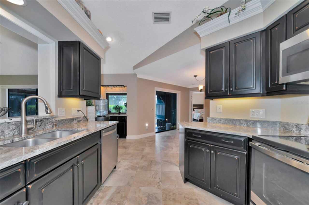 DOES NOT REQUIRE FLOOD INSURANCE | LOCATION! LOCATION! POOL HOME – Just minutes from Wellen Park High School! Welcome to 225 Brighton Ct, a beautifully renovated retreat tucked away on a peaceful cul-de-sac in a deed-restricted community with NO HOA fees and no flood insurance required! This exquisite 3-bedroom, 2-bath pool home in Englewood offers the perfect blend of sophistication, functionality, and the Florida lifestyle. From the moment you enter, you're greeted by an open, elegant interior featuring solid cherry wood cabinets and $30K+ in high-end granite countertops (with gold flake accents!) throughout. Crown molding, brushed nickel hardware, and custom steel wire closet shelving add both style and functionality. Every detail has been carefully curated—including a $25K Hunter Douglas plantation shutter package and a Definitive Technology recessed speaker system—creating a luxurious and comfortable living experience. The home also boasts a high-efficiency Carrier “Green” two-stage A/C, Square D 100 amp panel, and energy-efficient stainless appliances. The garage is heated and cooled, offering flexibility for a gym, workshop, or storage. Step into your private backyard oasis featuring a heated in-ground spa and pool, a completely redone pool cage, and a new pass-through kitchen window to the lanai, which is wired for TV and streaming—making entertaining seamless. A 140-foot deep well supplies irrigation to keep your lush landscaping vibrant year-round, and hurricane shutters enclose both the home and garage for added protection and insurance compliance. This home is ideal for families, entertainers, or anyone seeking a luxury retreat in a quiet, centrally located neighborhood. With Wellen Park High School just 7 miles away, and Gulf beaches, shopping, and dining all nearby, 225 Brighton Ct offers the ultimate in privacy, convenience, and peace of mind—without the burden of flood insurance.