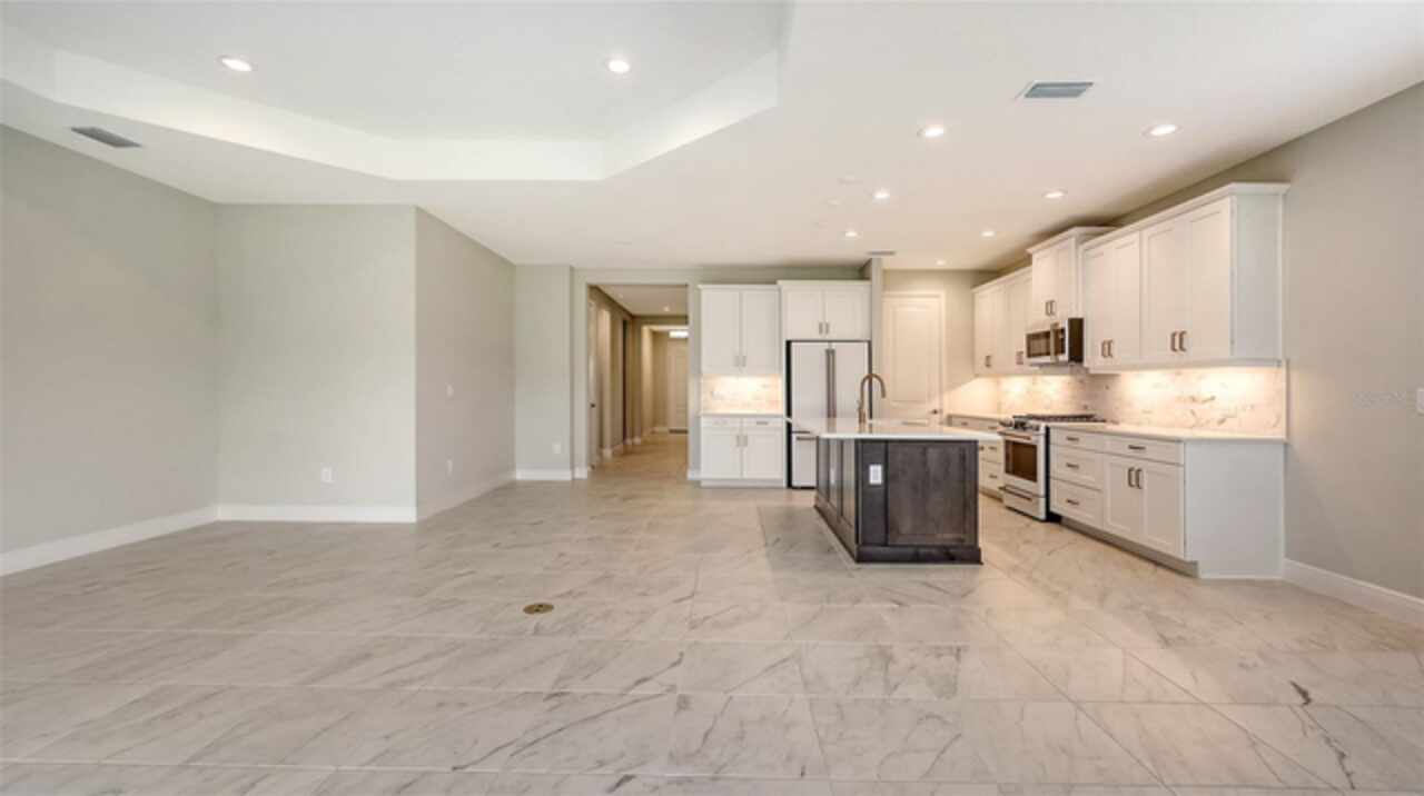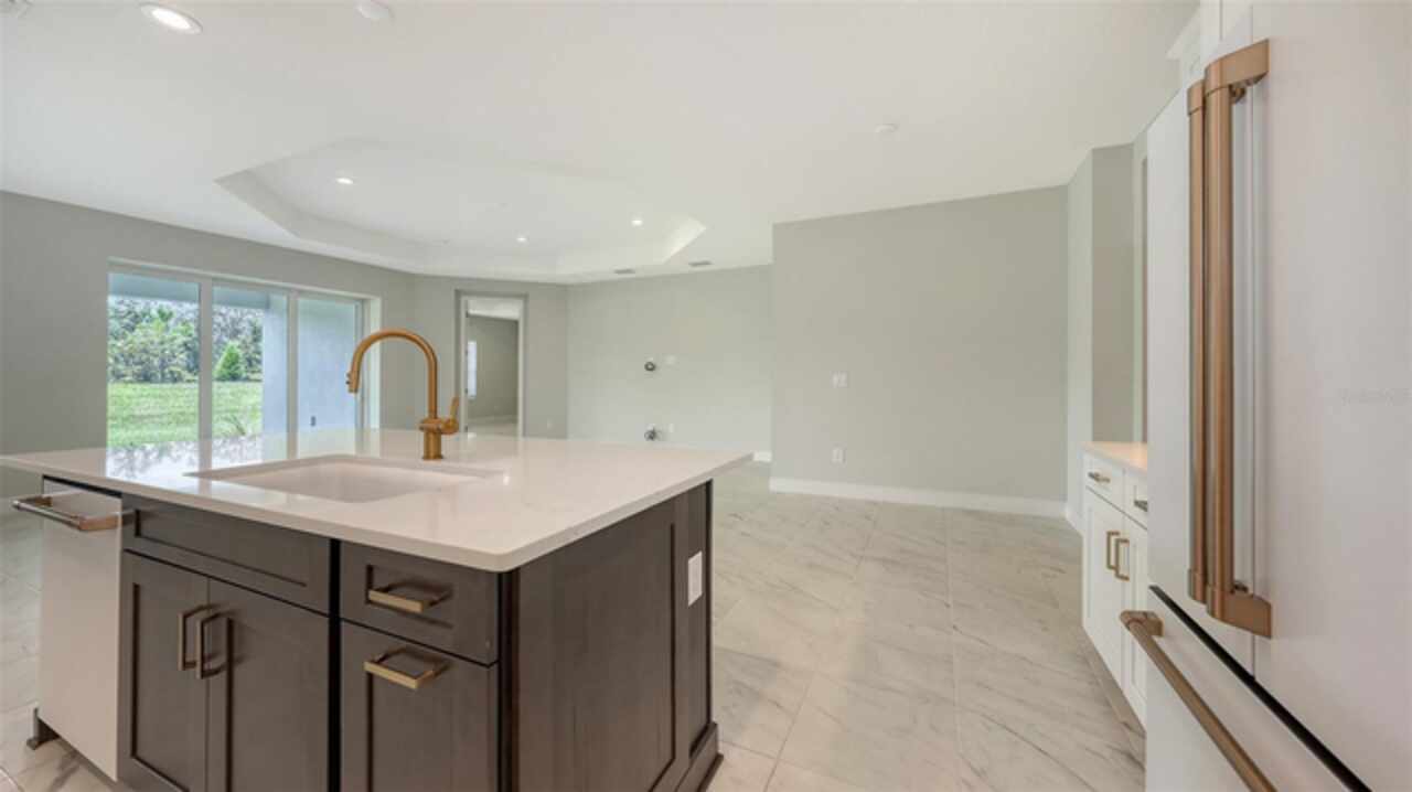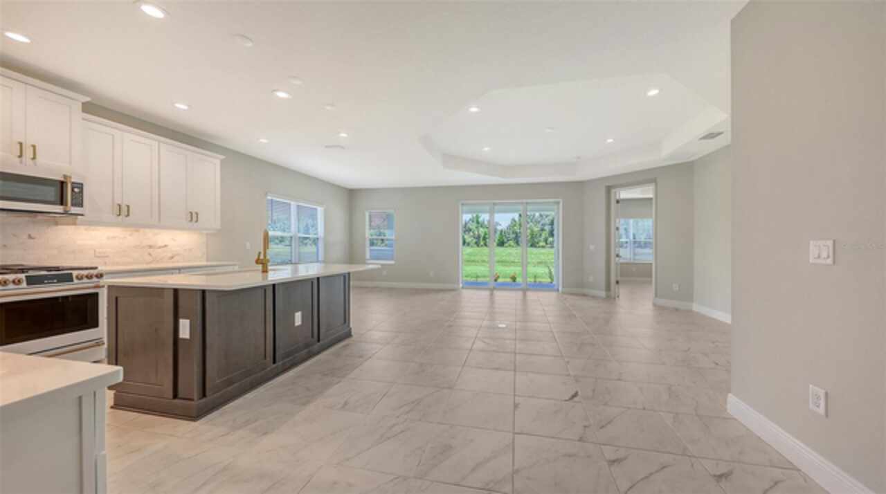 Sophistication meets comfort in this beautifully designed home. From the elegant foyer and gallery-style entry to the open-concept layout, every detail is thoughtfully crafted. The gourmet kitchen includes a large island and walk-in pantry—perfect for entertaining. Enjoy seamless indoor-outdoor living in the great room with an octagonal recessed ceiling and pocket sliding glass doors leading to the covered lanai. The spacious master suite offers two walk-in closets and a luxurious bath with dual vanities, a walk-in shower, and a private water closet. Three additional bedrooms include a guest suite with a private ensuite bath, ideal for visitors or multigenerational living. Don't miss this stunning home that blends style, functionality, and comfort in every space.