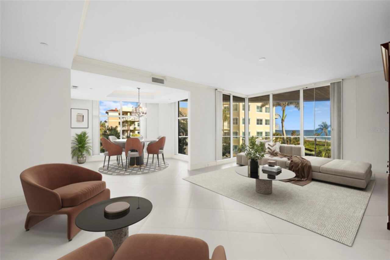 One or more photo(s) has been virtually staged. Are you ready to discover your very own private Gulf Oasis? Step into a slice of paradise at your dream coastal retreat located in the esteemed Aria community on Longboat Key's coveted south end. This serene haven is not just a residence; it offers an exclusive lifestyle filled with tranquility and easy access to the finest dining, arts, and cultural experiences that nearby Sarasota has to offer. Imagine living in a stunning home nestled along 300 feet of pristine private Gulf-front shoreline, where every day brings a lifestyle that is truly extraordinary. As you approach through Aria's gated entrance, you’ll be welcomed by timeless design, lush native landscaping, charming walking trails, and a lovingly preserved artesian well—a beautiful nod to the property’s storied history. Step inside your private elevator and explore nearly 4, 000 square feet of meticulously crafted, light-filled living spaces. The grand foyer seamlessly flows into an open-concept layout that beautifully blends a chef’s kitchen, luxurious spa-inspired bathrooms, and elegant living areas—all thoughtfully designed for comfort and effortless entertaining. Soaring 9+ foot ceilings, floor-to-ceiling glass windows, and wrap-around terraces provide breathtaking Gulf views that you can enjoy from every angle. Relax in the inviting family room or host unforgettable gatherings in the magnificent great room. The kitchen is a culinary dream, showcasing exquisite quartz countertops, solid wood cabinetry for ample storage, and elite Wolf and Miele appliances. The primary suite is a tranquil sanctuary designed for ultimate relaxation, complete with an opulent ensuite bathroom featuring two private baths connected by a spacious walk-in shower—an indulgence you’ll cherish every day. Two additional ensuite bedrooms ensure your guests feel right at home, while a versatile home office or optional fourth bedroom adds practicality. A bonus room awaits your creative hobbies, crafts, or extra storage needs. Living in Aria means immersing yourself in a truly unparalleled lifestyle. At the community's heart lies Villa am Meer, a beautifully restored 1935 seaside mansion that forms the elegant residents' clubhouse. Whether you’re hosting friends or enjoying a peaceful evening, you can unwind in the exclusive wine cellar and choose a bottle to savor on your terrace as the sun dips below the horizon. Enjoy an array of resort-style amenities, including a beachfront pool and spa, yoga and fitness studios, a massage room, and a serene, service-oriented atmosphere. A private, oversized two-car dehumidified garage adds to your convenience, while a dedicated resident caretaker ensures that personal service is always just a phone call away. Aria is not just a home; it’s a lifestyle choice that embodies luxury and elegance. Make 2251 Gulf of Mexico Drive #301 your new address—a place where timeless sophistication meets contemporary indulgence. Embrace the extraordinary life by the sea at Aria. Don’t let this opportunity slip away!