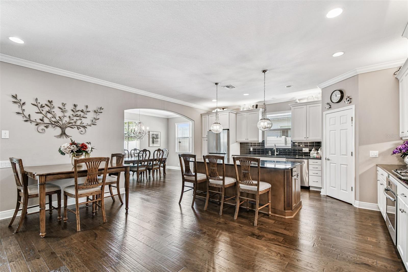 Under contract-accepting backup offers. Located within the private, gated community of Highwood Estates, this 4-bedroom, 3-bath residence blends timeless elegance with modern convenience. Built in 2018 and lovingly maintained by its original owner, the home spans 2, 736 square feet - one of the largest floor plans in this development - with an open, split floor plan designed for both comfortable everyday living and effortless entertaining. A covered front porch and French door entry introduce interiors enhanced by rich wood flooring, detailed crown molding, and refined lighting throughout. The spacious living area features tray ceilings, recessed lighting, and a built-in dry bar with wood cabinetry and sleek black granite, creating a warm, welcoming gathering space. The kitchen is a true centerpiece, outfitted with GE appliances, a gas range, Bosch double-drawer refrigerator and dishwasher, soft-close cabinetry, black granite countertops, and a walk-in pantry. Elegant lighting above and below the cabinets adds to the polished look. A formal dining room offers a dedicated setting for special occasions and family meals. The primary suite enjoys private access to the lanai and pool area, two walk-in closets, and a spa-style bath with separate vanities, a soaking tub, walk-in shower with built-in shelving, and a private water closet. Additional bedrooms include built-in closets and a hall bath with granite counters, while the fourth bedroom doubles perfectly as an office or guest room. The outdoor living space is a highlight, featuring a covered lanai, paver patio, and screened-in pool with three cascading waterfalls and lush landscaping, creating a private retreat ideal for relaxing or entertaining. Practical features include pre-drilled hurricane shutters, Ring doorbell connect, TVs mounts in every room, and both gas and electric connections. The laundry room offers granite countertops, wood cabinetry, a utility sink, and additional closet for ample storage. The 3-car garage is equipped with shelving, a workbench, tankless water heater and water softener system. A rare opportunity to own a meticulously maintained and elegantly designed home in one of the area’s most sought-after gated communities - where quality, comfort, and quiet sophistication come together seamlessly. Ideally located just minutes from top-rated schools, shopping, dining, and charming Downtown Dunedin, with easy access to Tampa International and St. Pete-Clearwater airports. Schedule your private showing today!