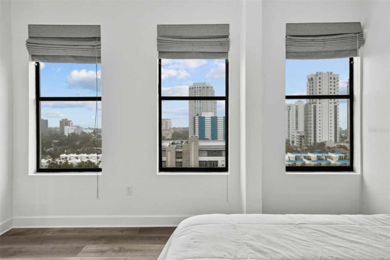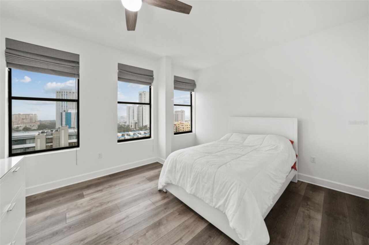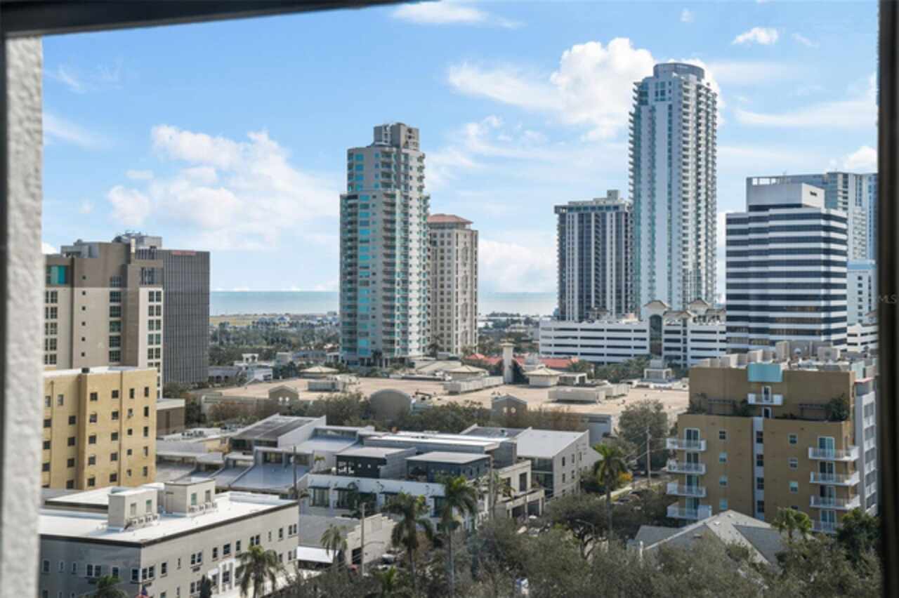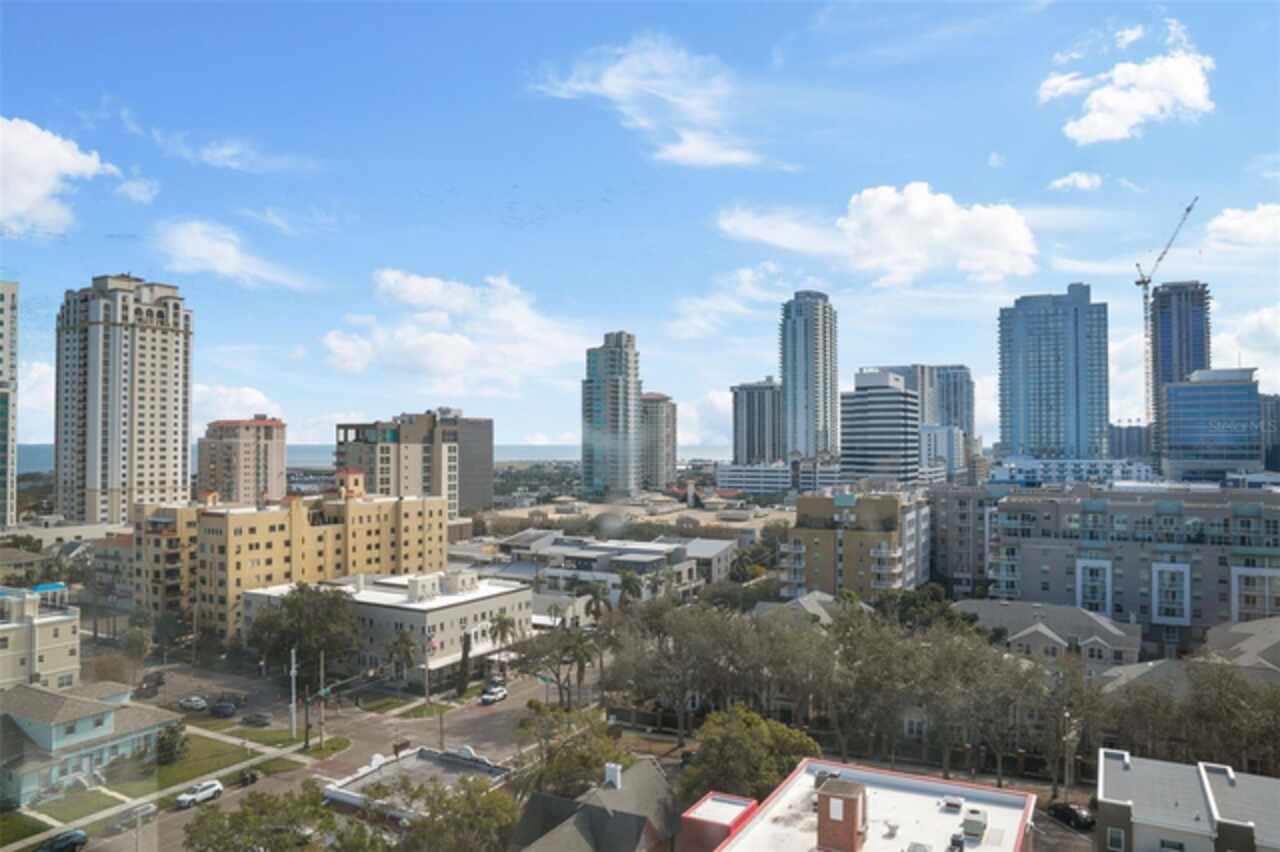 *** One of the very best views of Tampa Bay, the east, southeast, and the city — with large square footage and oversized bedrooms at an AMAZING price point. *** Bask in breathtaking panoramic views of the City Skyline, Tampa Bay, and the Pier from nearly every room of this stunning 11th-floor contemporary residence. Expansive windows, adorned with elegant Roman shades, flood the space with natural light while perfectly framing the spectacular scenery. Spanning 1, 684 square feet, this beautifully upgraded home offers a thoughtfully designed floor plan that ensures privacy. It features two reconfigured and expanded bedrooms, each with an ensuite full bathroom, plus a stylish half bath and a versatile den. The open layout, enhanced by all-new flooring, creates a spacious and inviting atmosphere, while the neutral color palette provides a perfect blank canvas to make the space your own. The kitchen is a chef’s delight, boasting sleek stone countertops, stainless steel appliances, and a beverage refrigerator. A built-in beverage center, conveniently located adjacent to the dining space, makes entertaining effortless. Recent updates, including a new water heater and AC system (2022), ensure peace of mind. With no flood zone concerns, low HOA fees, and two side-by-side parking spaces in the secure garage, this home offers both convenience and value. For even more incredible views, head up to the 15th-floor rooftop terrace with a newly renovated Outdoor Kitchen with Gas Grill and plush seating inviting you to unwind, enjoy a grilled meal all while taking in the stunning cityscape and bay views. Something no balcony can offer. The Walker Whitney building adds further ease with a separate contractor/pet elevator. Ideally located in North Downtown St. Petersburg, Walker Whitney boasts a walkability score of 94 and a biking score of 96, placing you just steps from the Palladium Theater, The Vinoy Resort & Spa, and the vibrant Beach Drive dining scene. Easy access to I-275 makes exploring the rest of Tampa Bay a breeze. This move-in-ready home is waiting for your personal touch—schedule your private showing today!