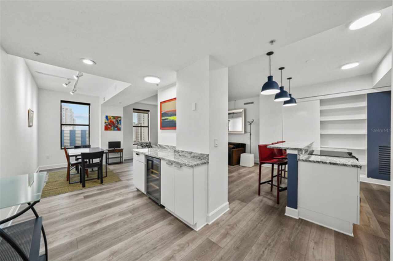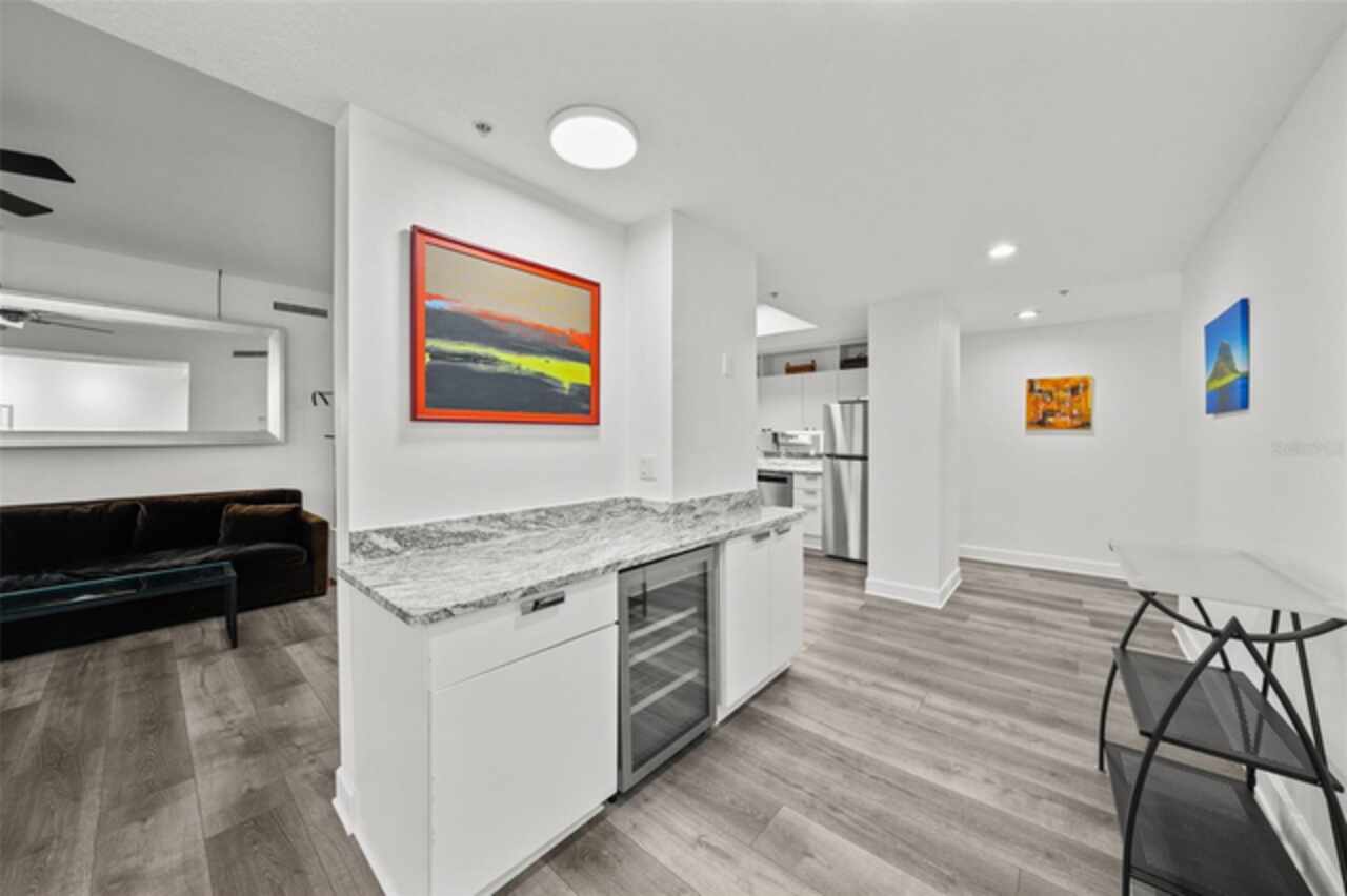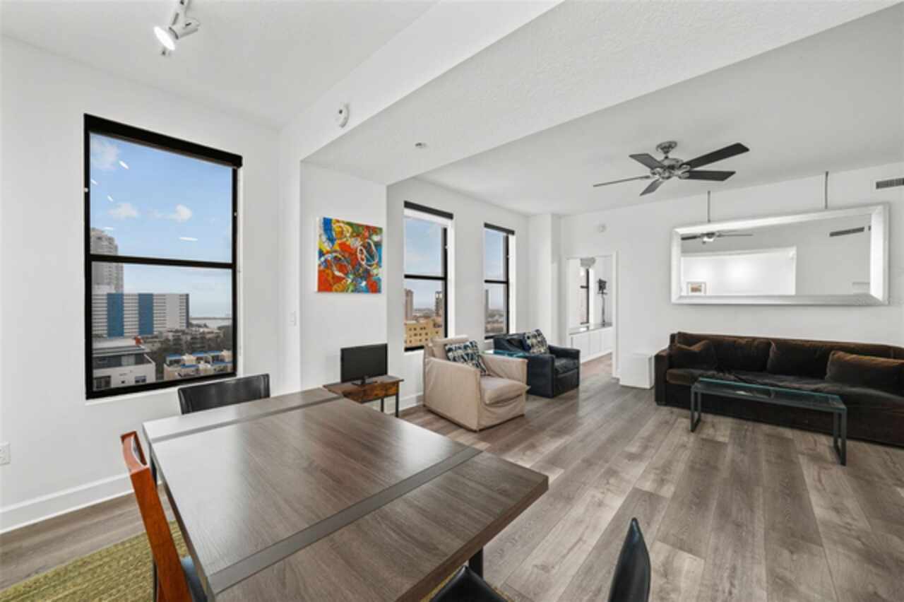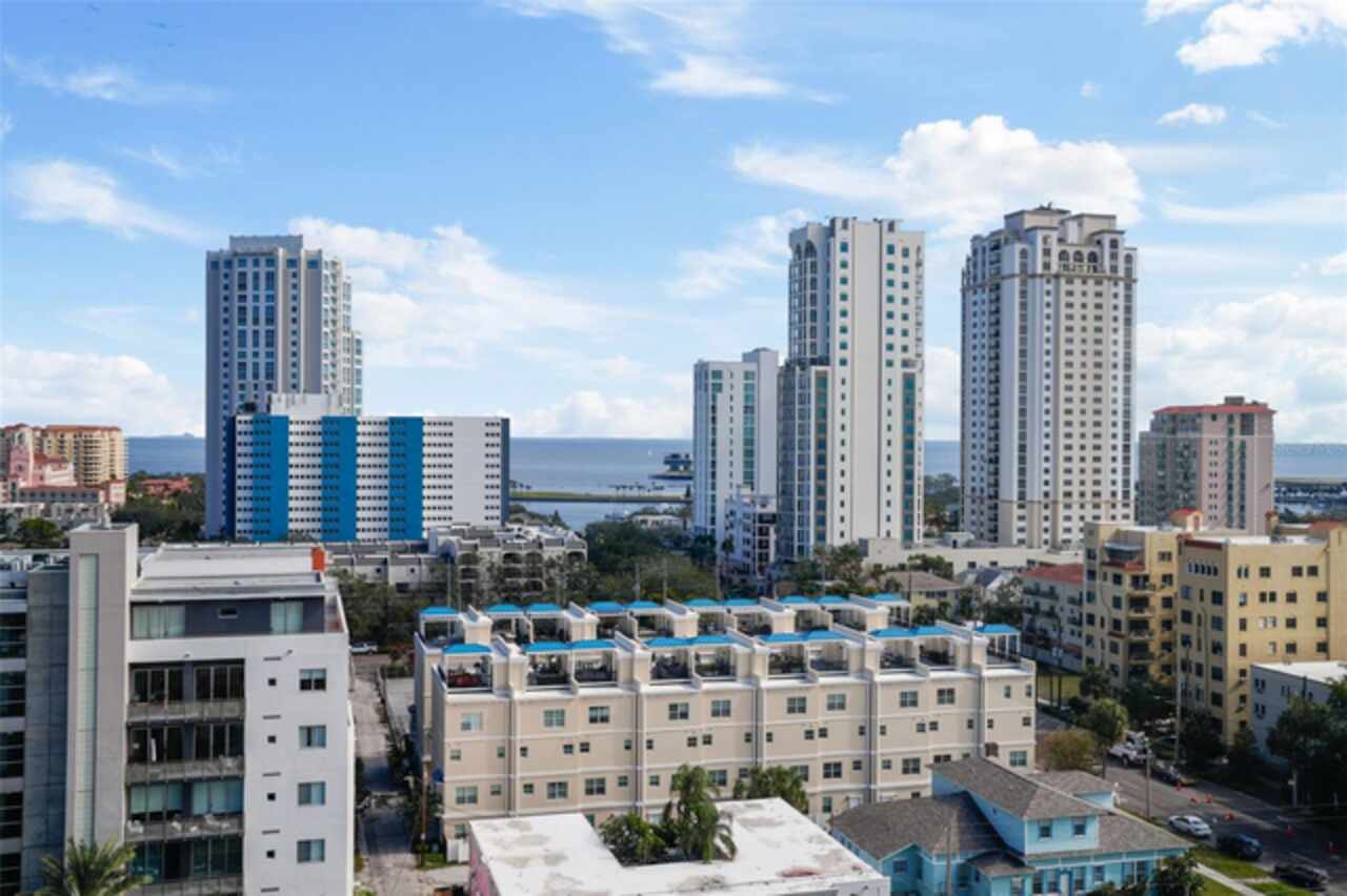 *** One of the very best views of Tampa Bay, the east, southeast, and the city — with large square footage and oversized bedrooms at an AMAZING price point. *** Bask in breathtaking panoramic views of the City Skyline, Tampa Bay, and the Pier from nearly every room of this stunning 11th-floor contemporary residence. Expansive windows, adorned with elegant Roman shades, flood the space with natural light while perfectly framing the spectacular scenery. Spanning 1, 684 square feet, this beautifully upgraded home offers a thoughtfully designed floor plan that ensures privacy. It features two reconfigured and expanded bedrooms, each with an ensuite full bathroom, plus a stylish half bath and a versatile den. The open layout, enhanced by all-new flooring, creates a spacious and inviting atmosphere, while the neutral color palette provides a perfect blank canvas to make the space your own. The kitchen is a chef’s delight, boasting sleek stone countertops, stainless steel appliances, and a beverage refrigerator. A built-in beverage center, conveniently located adjacent to the dining space, makes entertaining effortless. Recent updates, including a new water heater and AC system (2022), ensure peace of mind. With no flood zone concerns, low HOA fees, and two side-by-side parking spaces in the secure garage, this home offers both convenience and value. For even more incredible views, head up to the 15th-floor rooftop terrace with a newly renovated Outdoor Kitchen with Gas Grill and plush seating inviting you to unwind, enjoy a grilled meal all while taking in the stunning cityscape and bay views. Something no balcony can offer. The Walker Whitney building adds further ease with a separate contractor/pet elevator. Ideally located in North Downtown St. Petersburg, Walker Whitney boasts a walkability score of 94 and a biking score of 96, placing you just steps from the Palladium Theater, The Vinoy Resort & Spa, and the vibrant Beach Drive dining scene. Easy access to I-275 makes exploring the rest of Tampa Bay a breeze. This move-in-ready home is waiting for your personal touch—schedule your private showing today!