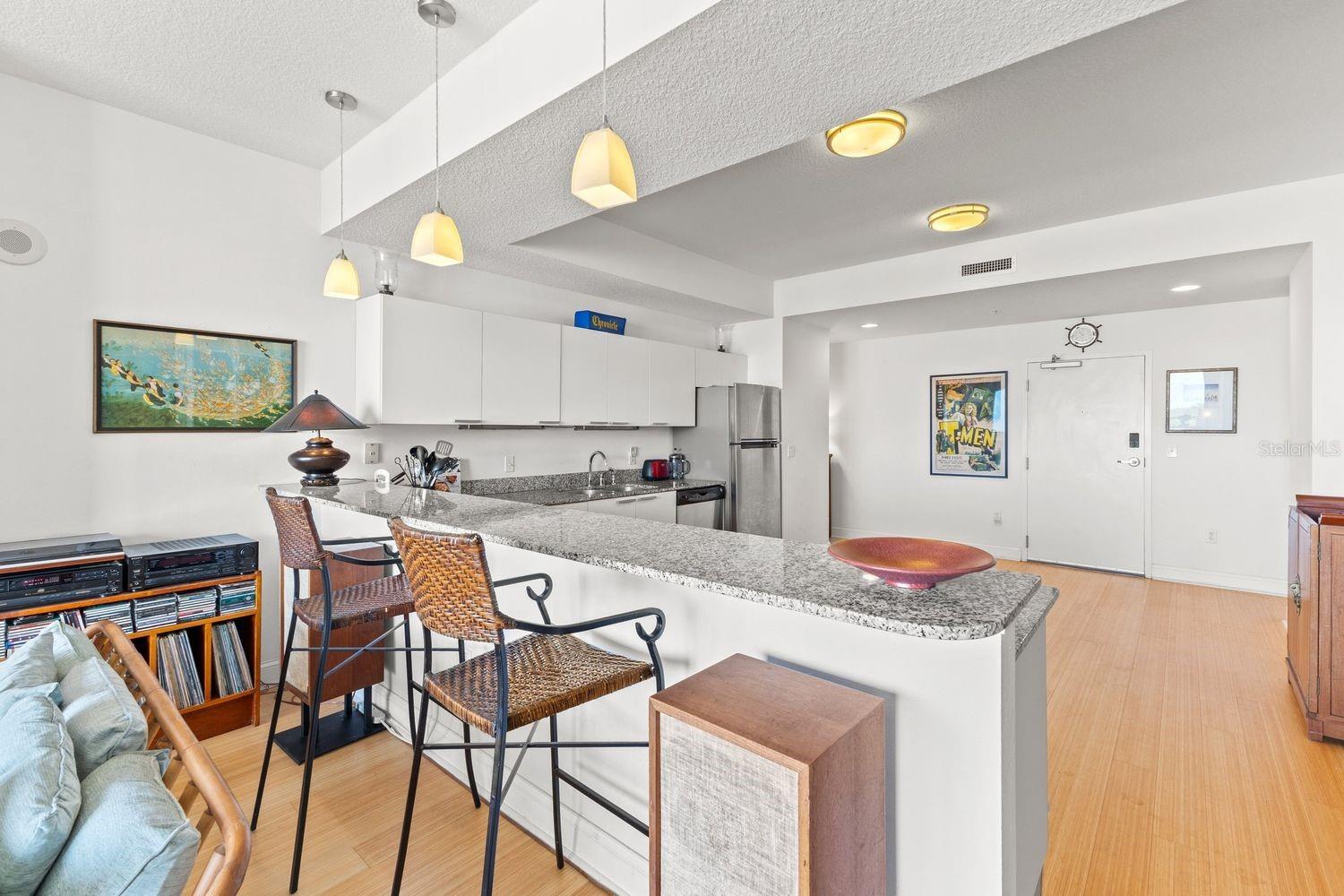 This is not your typical listing description. What you're about to read is the seller's response when I asked him what he will miss most about this boutique style building, The Walker-Whitney and his unit #603. "Our family loved the Walker Whitney’s proximity to prime downtown venues, including terrific restaurants and bars, museums, nightclubs, live theatre and performing arts. My favorite eateries include Seb café’s outdoor patio for Thai food; the Park Shore for seafood dinners; the Bodega Cuban restaurant; Pete’s Bagels; Casita Taqueria; and Bella Brava, an Italian restaurant with a friendly staff. I also enjoyed stopping by Book & Bottle, a bookshop with a wine bar. Occasionally, we’d have a drink at the Renaissance Vinoy resort hotel a few blocks away. I love hearing jazz and blues at the courtyard of The Ale and the Witch, and my younger daughter and her husband—who took over the condo for six months during Covid—made a point of dropping by the Witch’s weekly country & western jam sessions. They also tuned in to St. Pete’s other nightclubs and loved the huge murals on various buildings. I found the condo’s floor plan very flexible. At various times, we used one of the two larger bedrooms as either an office and small library or as a second bedroom. At other times, we turned the den with adjoining half-bath into a guest room. I especially enjoyed reading on our balcony and admiring the view across the tree-lined Old Northeast neighborhood. Nothing was more soothing to me than the sight of the red-tile roofs at the Palladium performing arts theatre, where we also heard music and attended live theatre and contemporary dance concerts. And too, we treasured our occasional meals and holiday celebrations on Walker Whitney’s rooftop, with its barbecue facilities and panoramic views of St. Petersburg and its surroundings. I liked to walk to the downtown supermarket to shop for groceries, glad not to have to drive and park my car each time. Sometimes I'd stop at a café along the route. I often worked and relaxed at St. Pete’s premier cafes, including Kahwa (down the street) and Craft (a half-mile away) in downtown. It's such a small city that it’s really no surprise to run into older friends and new acquaintances. Our family also enjoyed our day-trips to the beach at Siesta Key in Sarasota, a Greek restaurant in the fishing village of Tarpon Springs, kayaking through the mangroves at Fort Desoto, attending ‘spring training’ baseball games in Bradenton and Clearwater, catching a drink at St. Pete’s newly-rebuilt pier, heading south to Fort Myers and taking a fast boat to Key West. I was also able to crew on a friend’s sailboat a number of times. One thing I’ll miss the most are my long walks and bicycle rides along the shoreline. There’s such an incredible variety of wildlife here to see. It’s always a thrill to spot two or three dolphins patrolling near the seawall. And there’s no shortage of egrets, heron and other exotic seabirds."