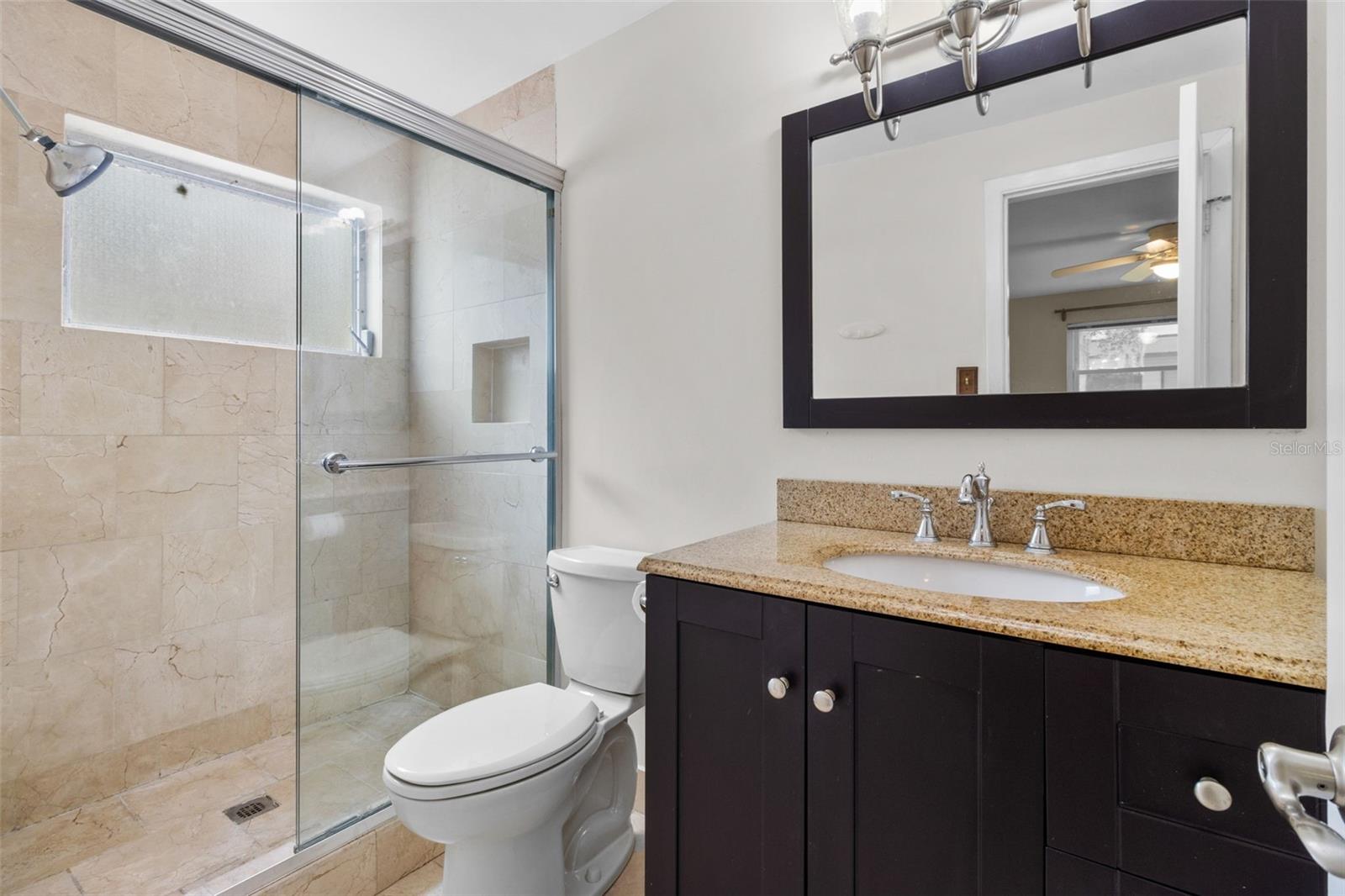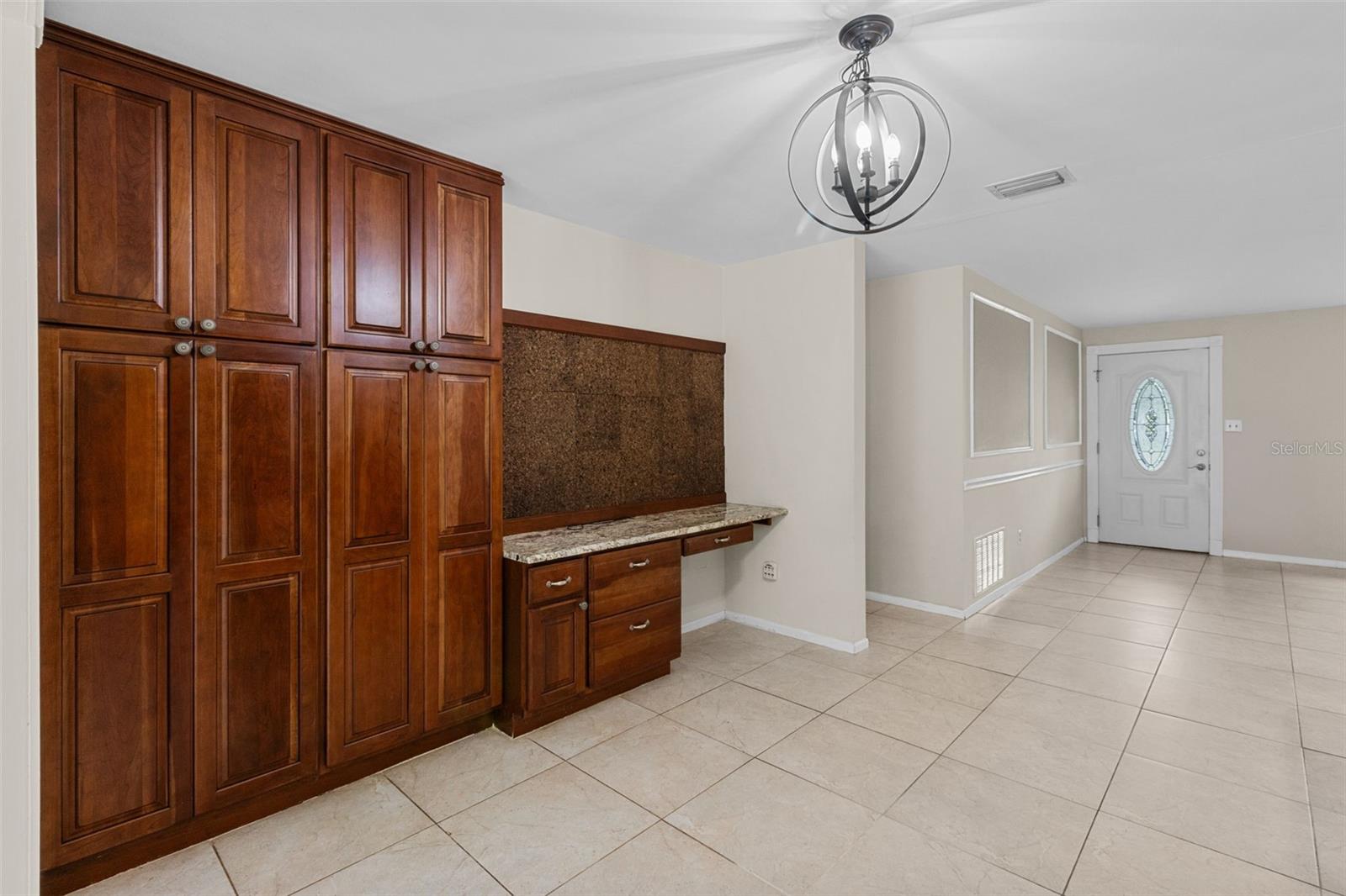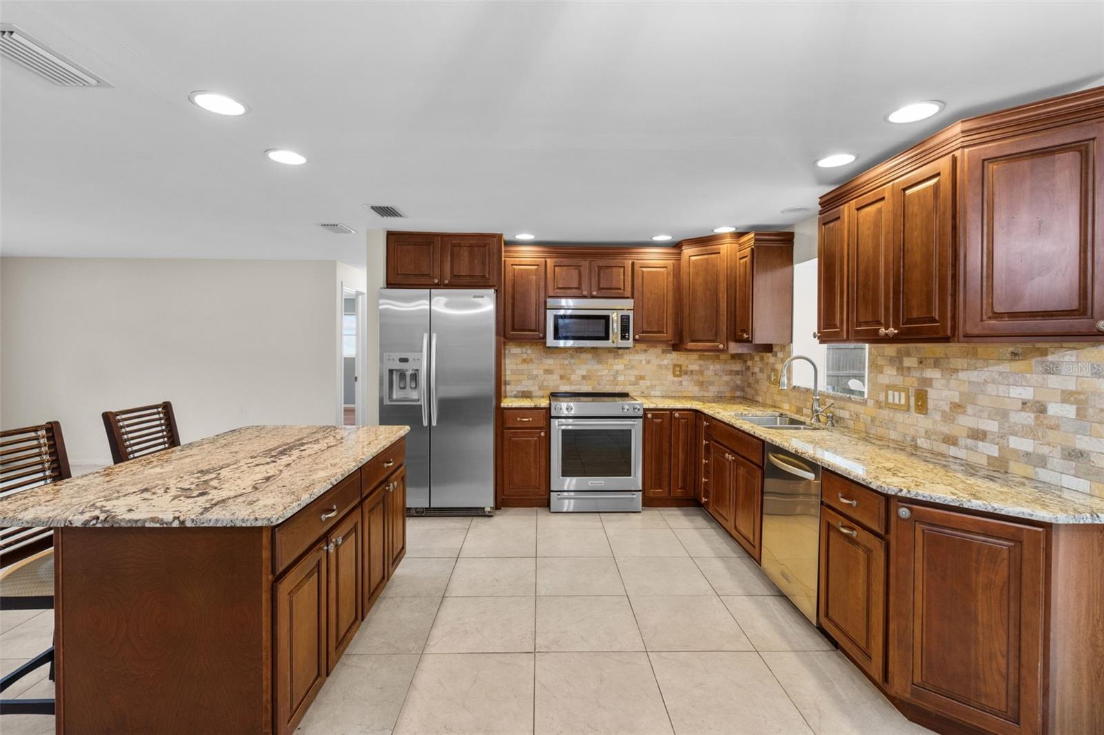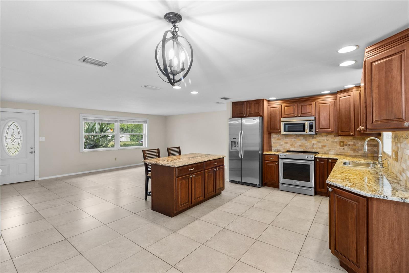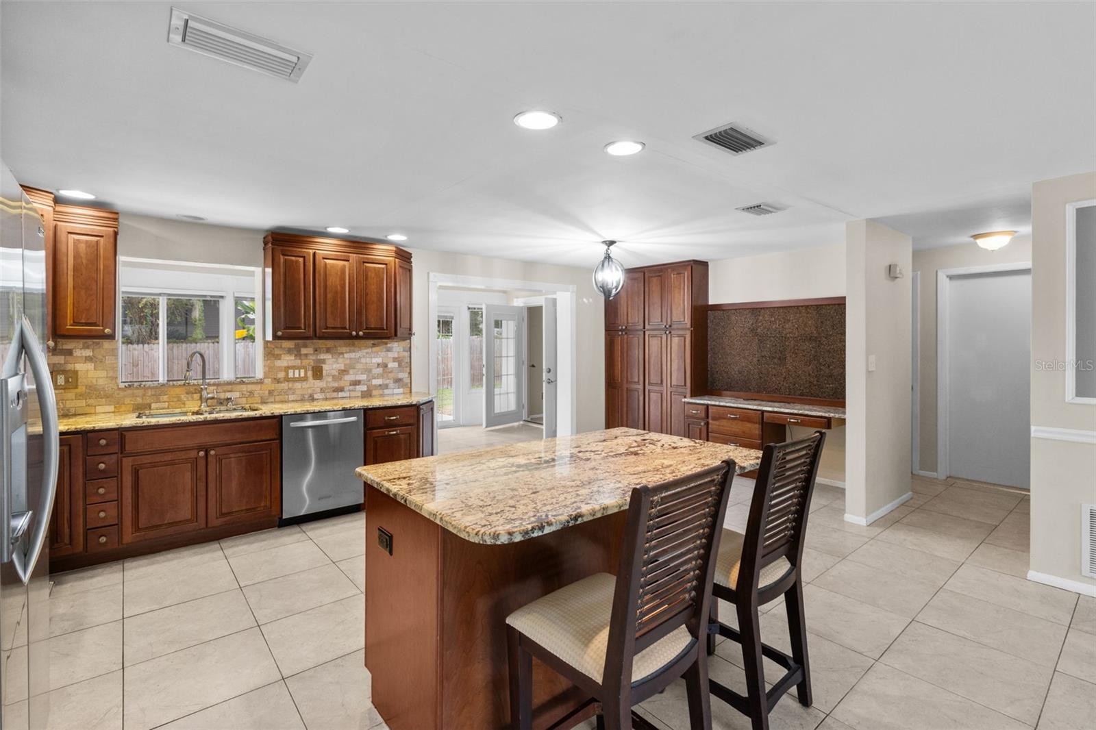 Ceiling Fans(s), Chair Rail, Eat-in Kitchen, Kitchen/Family Room Combo, Open Floorplan, Solid Wood Cabinets, Split Bedroom, Stone Counters, Thermostat