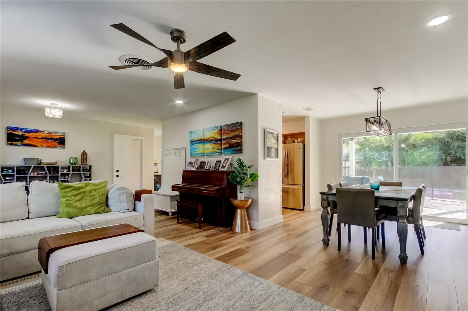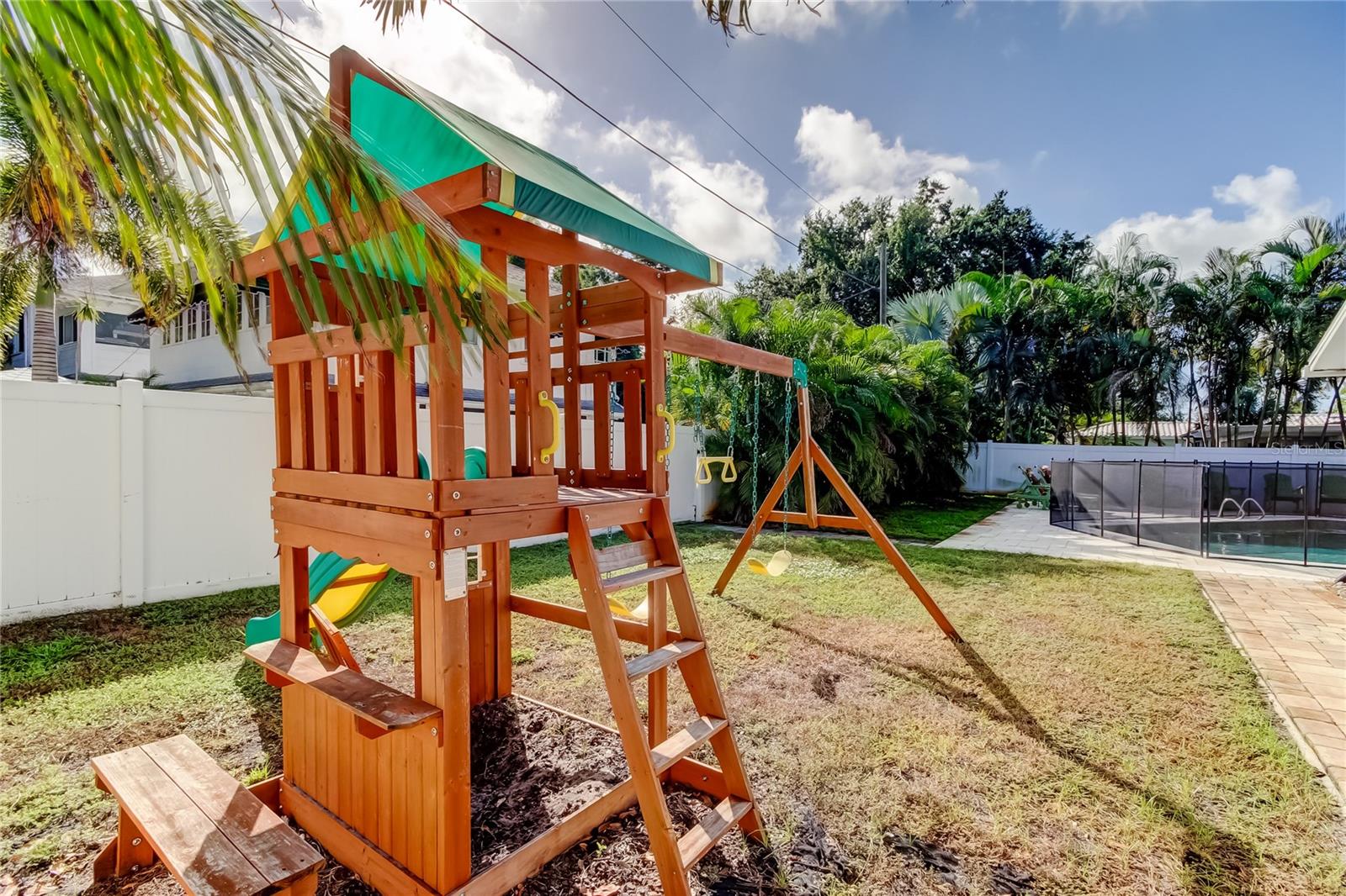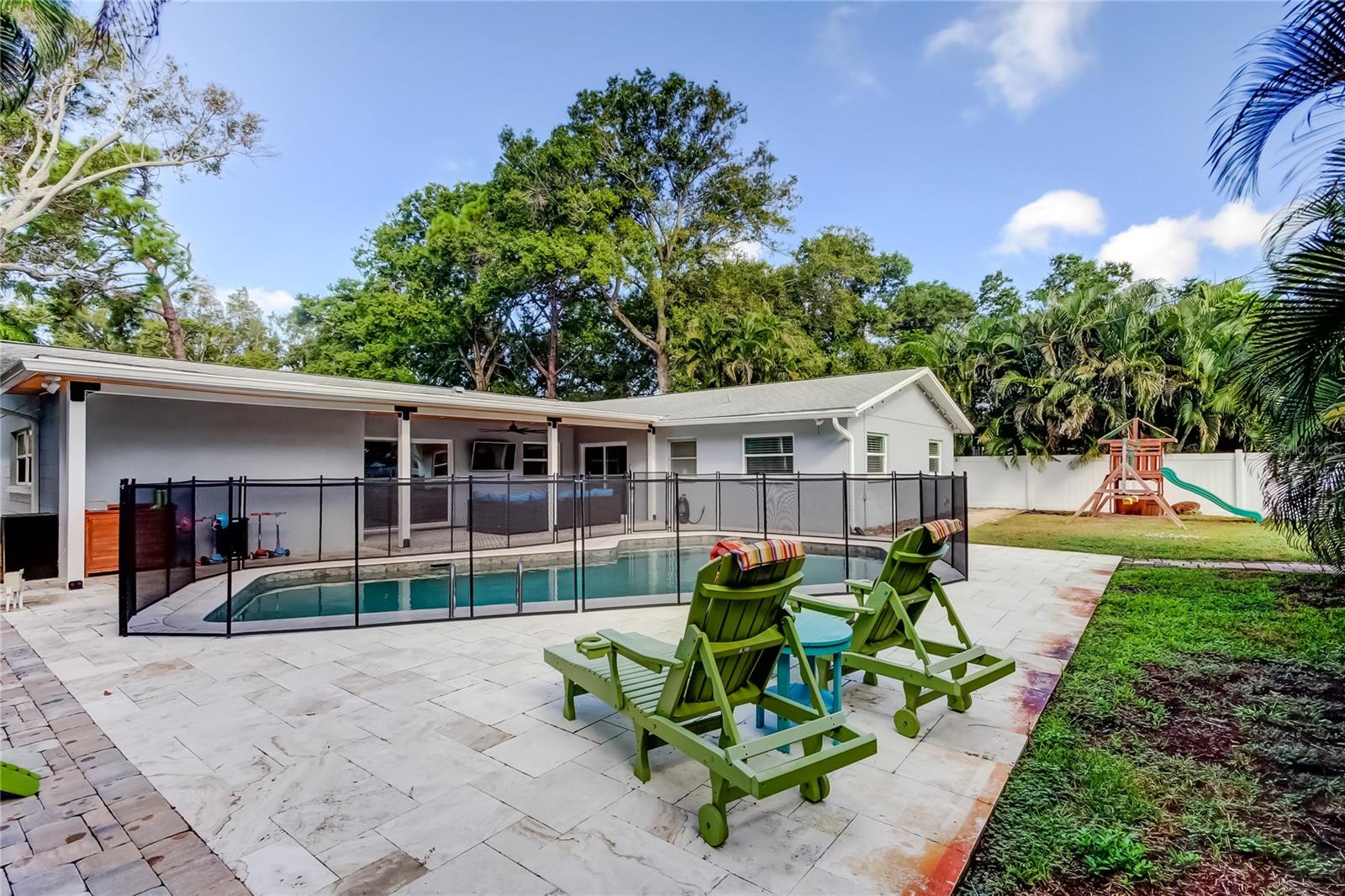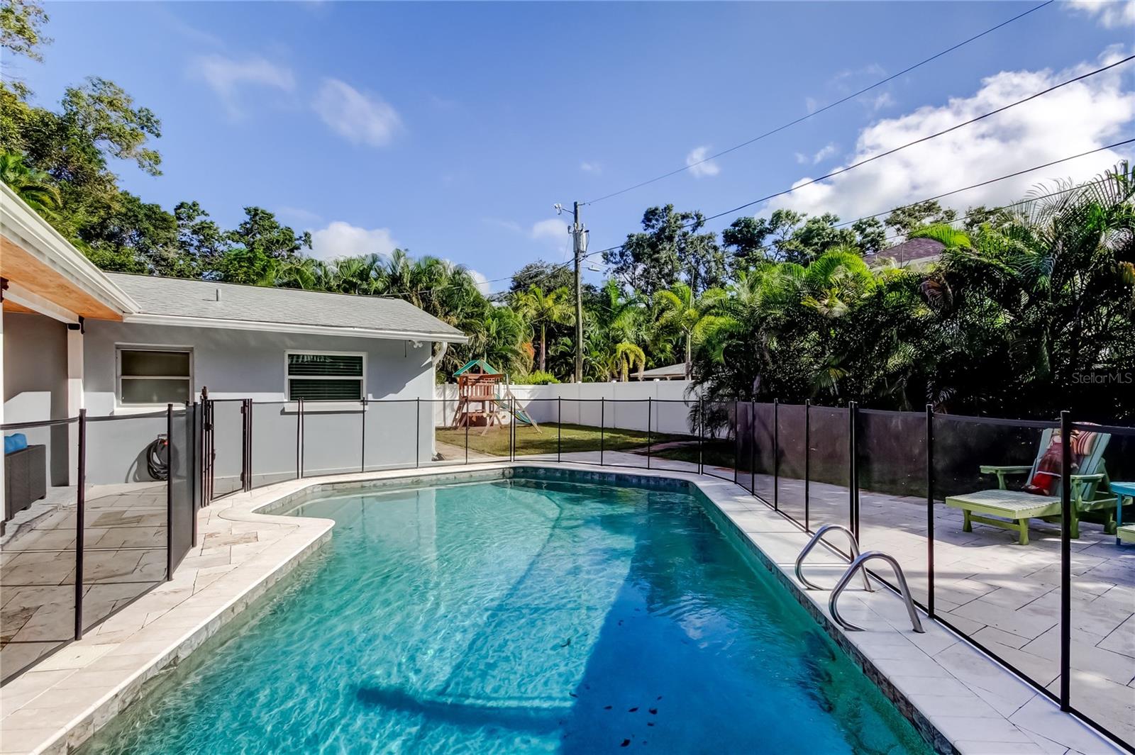 Under contract-accepting backup offers. PRICE ADJUSTMENT! Do not miss this opportunity to live in one of the most sought after neighborhoods in St. Petersburg!!! Perfectly located on a quiet tree lined street with close proximity to shopping, restaurants, entertainment, downtown St.Petersburg, pier, Pinellas trail, beaches, schools and places of worship. Best of all no flood zone! Pride of ownership shows thru out this beautiful 3 bedroom, (could easily be a 4 bedroom), 3 bath home with 1848 square feet of living space. Open split bedroom floor plan has plenty of windows and glass sliders providing plenty of natural light for a warm and cozy feel. Modern kitchen with wood cabinetry, stainless appliances, corian countertops and plenty of additional storage cabinets. Living room and dining room combination with sliders to covered patio and covered deck. Primary bedroom is large and includes 2 walk in closets and adjoining bath. Family room/den is spacious which also has sliding door to exterior. Luxury vinyl plank flooring enhances all rooms in the home. Backyard is a family gathering or entertaining paradise complete with large 281 sq ft covered patio, beautiful pool, patio deck for relaxing, lush landscaping and extra space for family to play or pet area. Oversized 2 car garage and extra wide driveway for additional parking are additional features. Peaceful and tranquil well maintained neighborhood. Owner has completed multiple updates making this a perfect move in condition home!! 2025 - Replaced interior doors, water heater & softener, LVP flooring. 2023 & 2024 - Hurricane doors and windows, updated back patio, updated master closet. 2022 - New kitchen appliances, gutters, PVC fence. 2021 - Pool safety fence, electrical panel, replaced drain plumbing out to city, grading & drainage of back yard, 2020 - Pool resurfaced with pebble tec, installed 4 ton AC and duct work. Schedule your appointment to view today! You will not be disappointed.
