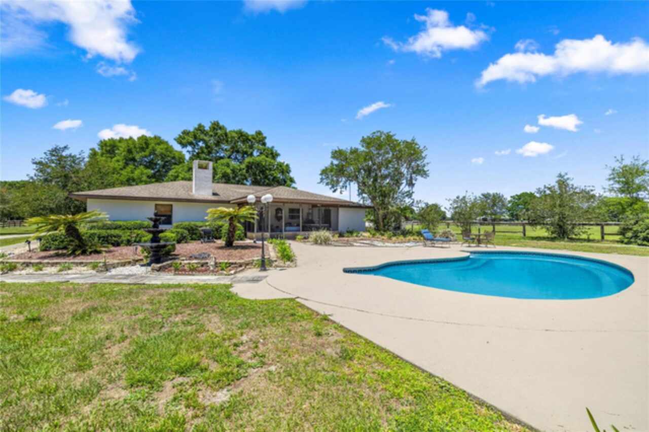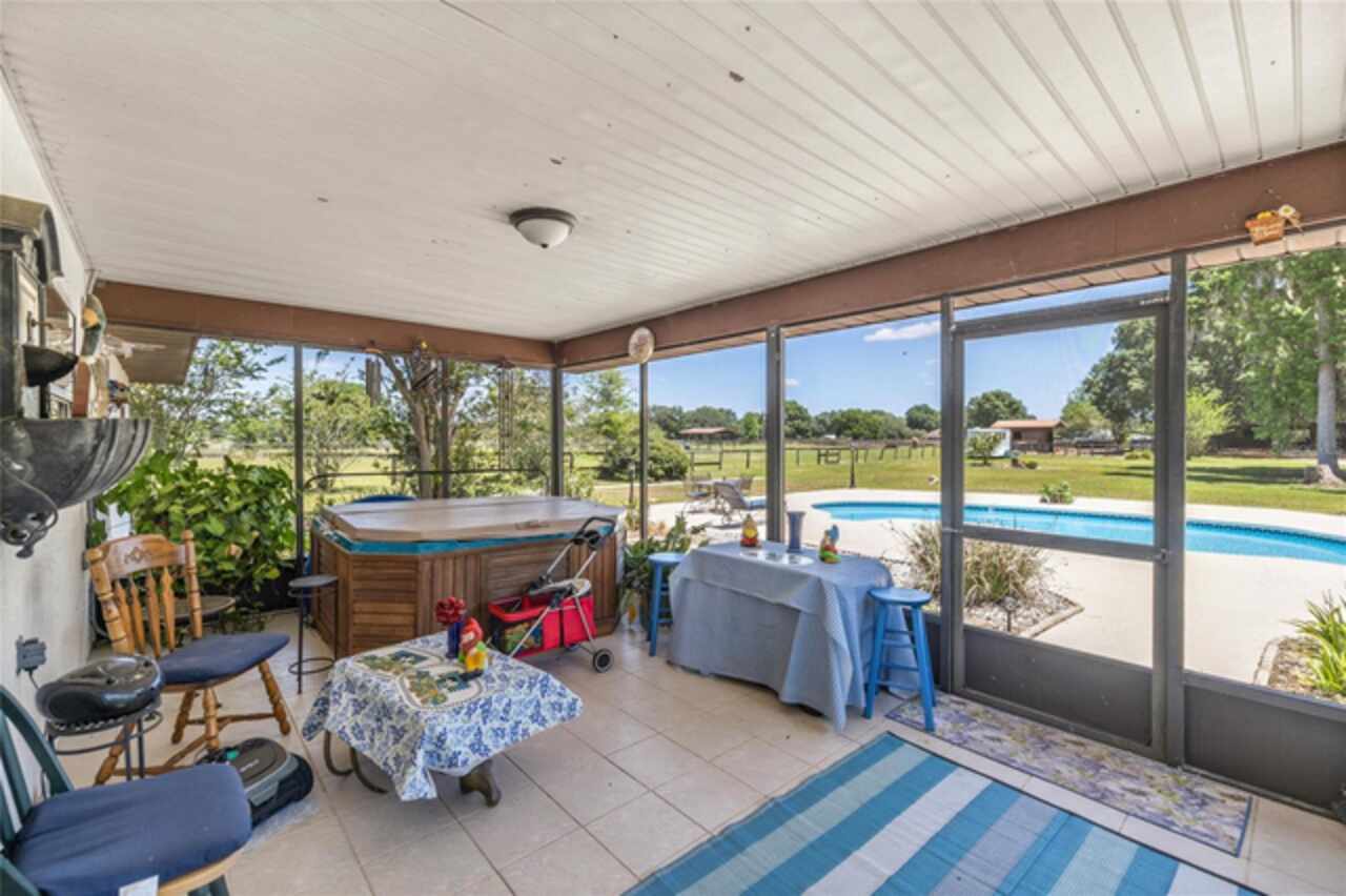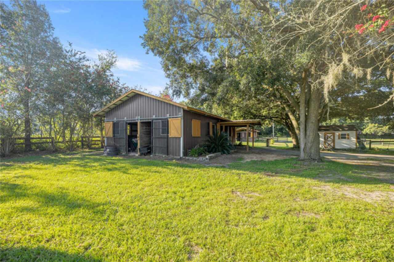 NEW ROOF PRIOR TO CLOSING! *Preferred lender offering a $5, 000 credit towards closing costs* Welcome to your dream countryside retreat! Nestled on 10 acres, this versatile property offers the perfect blend of comfortable living and functional equestrian amenities. The 3 bedroom, 2 bathroom home provides a warm and inviting atmosphere with plenty of natural light. Who wouldn't love the added benefit of an in ground pool and a hot tub in the lanai! Equestrian enthusiasts will love the 5 stall barn (4 stalls are 12x12, 1 stall is 24x12), 3 loafing sheds, and 3 additional 15x15 single stall barns, giving you plenty of space for boarding and training, and the ability to stay out of inclement weather. There is a 60' 4 bay garage with storage room and loft, big enough for both tractors and vehicles. With open land to roam and the infrastructure already in place, this property is ready for your own farm vision. Farm is located less than 2 miles from Florida Horse Park and Greenway Trails. Pool pump replaced in 2024, A/C replaced in 2025. Motivated Seller will consider all offers!