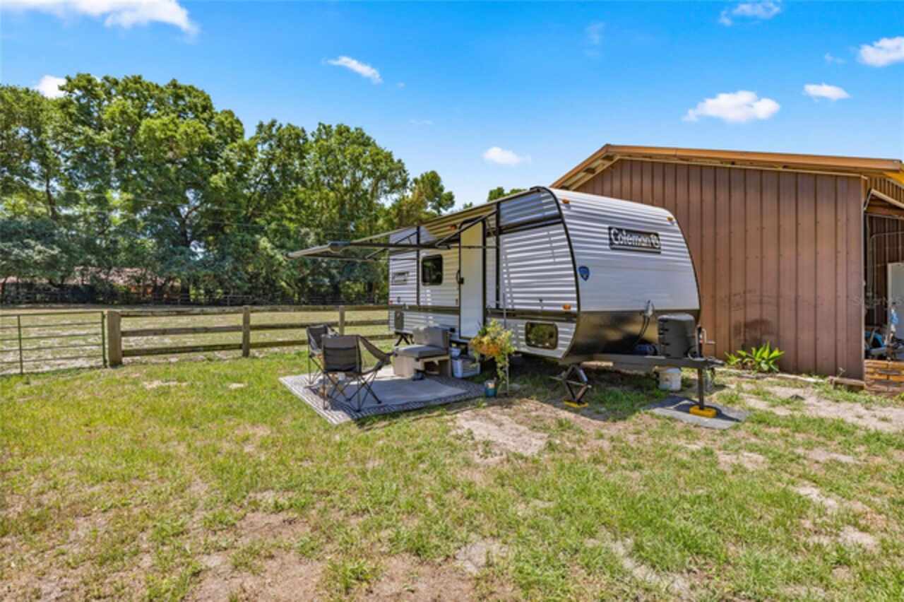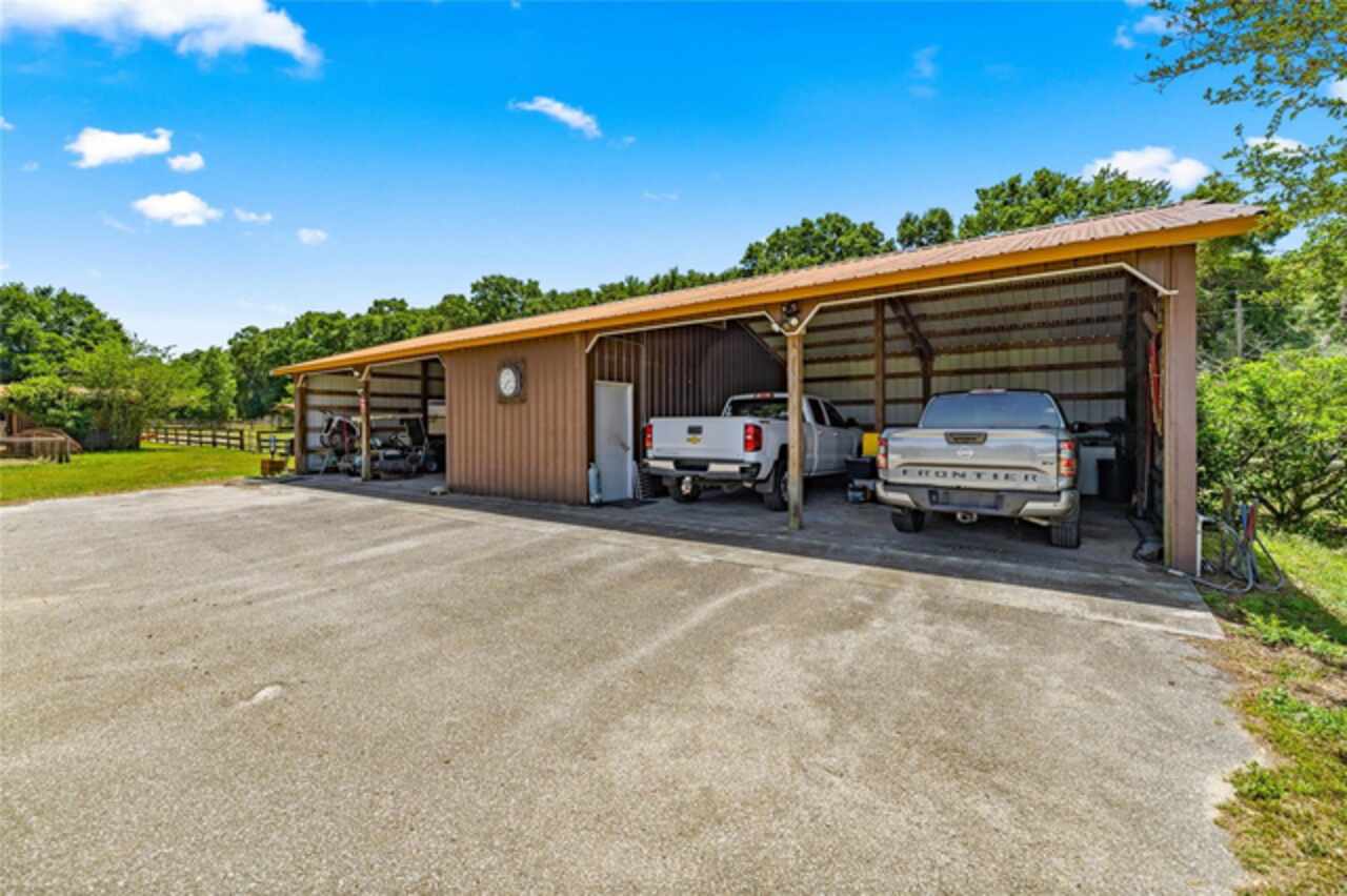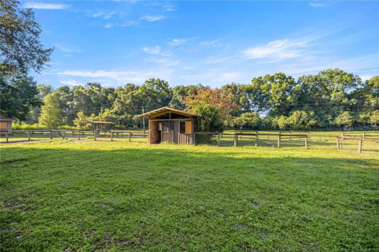 NEW ROOF PRIOR TO CLOSING! *Preferred lender offering a $5, 000 credit towards closing costs* Welcome to your dream countryside retreat! Nestled on 10 acres, this versatile property offers the perfect blend of comfortable living and functional equestrian amenities. The 3 bedroom, 2 bathroom home provides a warm and inviting atmosphere with plenty of natural light. Who wouldn't love the added benefit of an in ground pool and a hot tub in the lanai! Equestrian enthusiasts will love the 5 stall barn (4 stalls are 12x12, 1 stall is 24x12), 3 loafing sheds, and 3 additional 15x15 single stall barns, giving you plenty of space for boarding and training, and the ability to stay out of inclement weather. There is a 60' 4 bay garage with storage room and loft, big enough for both tractors and vehicles. With open land to roam and the infrastructure already in place, this property is ready for your own farm vision. Farm is located less than 2 miles from Florida Horse Park and Greenway Trails. Pool pump replaced in 2024, A/C replaced in 2025. Motivated Seller will consider all offers!