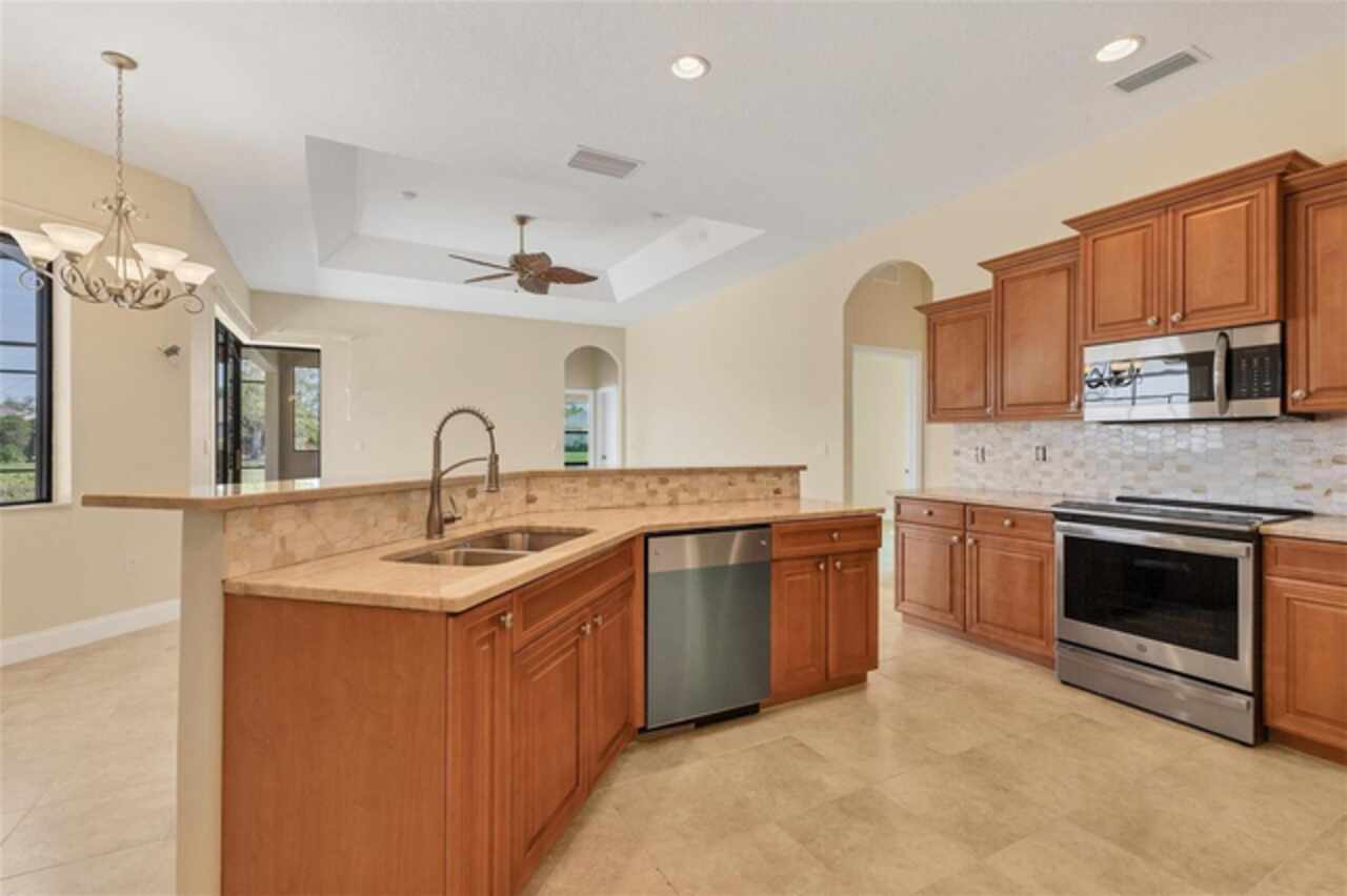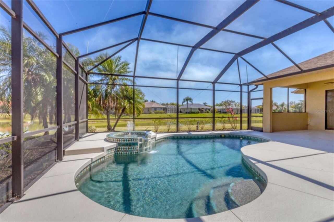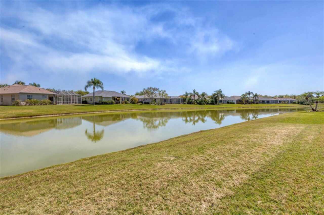 One or more photo(s) has been virtually staged.Beautiful 4 Bedroom 3 Bath Ranch with 3 Car Garage (638 sqft) located on the most Scenic water waterfront lot in Laural Meadows. All new kitchen with Quartz counter tops, stainless steel appliances, all 3 baths remodeled with new vanities, New Luxury vinyl flooring, New Roof 2022, PGT Hurricane (tilt in) Impact Windows, Hurricane Rated Garage Door, and New Central air system 2019. Master Bedroom offers walk-in closet and Spacious Master bath with double vanities along with both bathtub and walking shower. Oversized screened lanai with inground Pool, covered Barbecue area overlooking Peaceful Lake on 2 sides. Laurel Meadows is conveniently near shopping, dining, golf courses, Rothenbach Park, Celery fields for hiking and bird watching and just a short drive Nearby Beaches and Downtown Sarasota. Property is located in flood zone X no flood insurance required. Just move in ... Welcome Home!!!