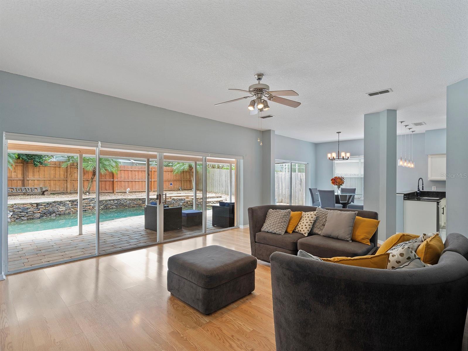 Under contract-accepting backup offers. You don't want to miss this beauty with a VA Assumable loan! This home is on a CORNER LOT in the popular GOLF COMMUNITY of Twin Rivers. Upon entering you will find your formal living space (or flex space) on the left. Beyond this space is an office with a door for privacy (currently used as a downstairs bedroom) and beyond is a FULL BATHROOM with access to the PAVERED pool deck and outside pavered patio. Back from the front door to the right is your formal dining room (or flex space) that is separate and leads to a LARGE KITCHEN with a KITCHEN ISLAND. To the right of the kitchen is the INSIDE UTILITY room with your washer and dryer hookups and a door that leads into the 2-CAR GARAGE. To the left of the kitchen is a LARGE EAT-IN KITCHEN AREA. Walking straight from the front door past the steps (accessible from both front room and kitchen) is the Family room with AN ENTIRE BACK WALL OF SLIDING GLASS DOORS with an INCREDIBLE VIEW OF THE RESORT STYLE POOL AND ITS 3 FOUNTAINS. The family room and kitchen are adjacent to those wonderful views of the fabulous STONE TRIMMED POOL! The FULLY FENCED backyard and pool area were designed for entertaining and creating incredible memories! Onto the second floor, at the top of the stairs you will find a LARGE LOFT AREA, a great living space with so many possibliites! Left of the stairs is the LARGE PRIMARY SUITE with a WALK-IN CLOSET and and UPDATED PRIMARY BATHROOM with separate tub and shower, a vanity with incredible storage and dual sinks, and a private commode. The upstairs is a split-bedroom plan with 3 LARGE BEDROOMS on the other side of the loft sharing a 2-room bathroom: one side with the shower-tub & a commode with the entrance room hosting dual sinks. The flow and space of this home is highly desirable! This home is minutes to major roads, A-rated Seminole County Public schools, Univeristy of Central Florida, Seminole State College Oviedo campus, shopping, restaurants, medical facilities, Riverside Park and Econ Wilderness making it an ideal location. WATER HEATER 2022; HVAC 2021; POOL HEATER 2021. Come see TODAY, this home has something for everyone!
