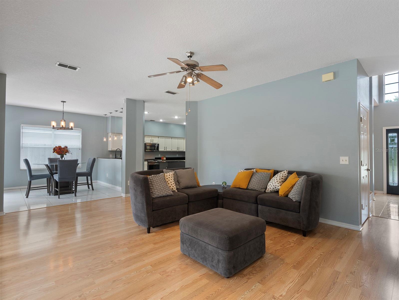 Ceiling Fans(s), High Ceilings, Kitchen/Family Room Combo, PrimaryBedroom Upstairs, Split Bedroom, Walk-In Closet(s), Window Treatments