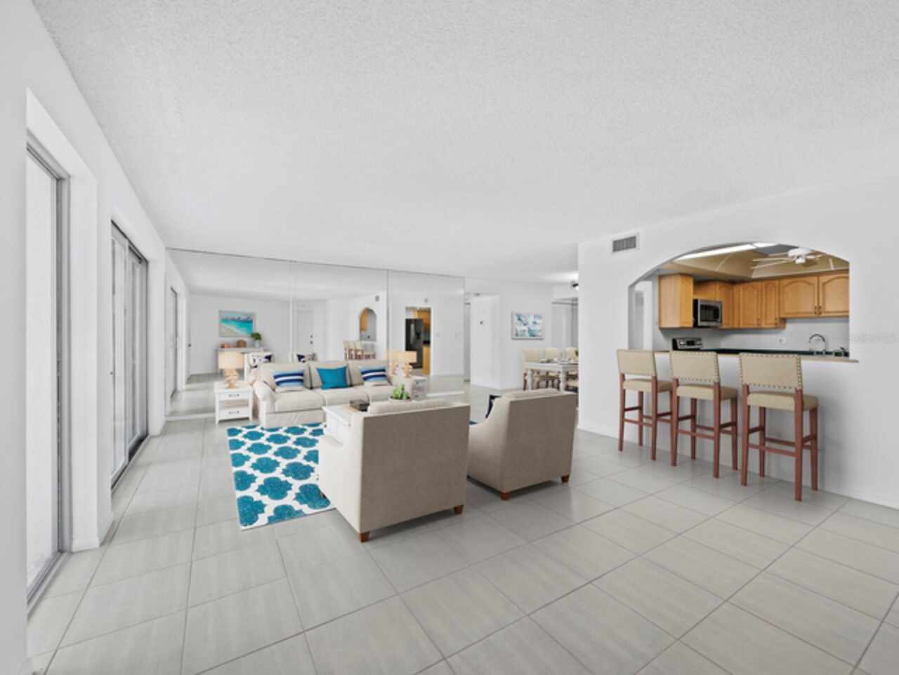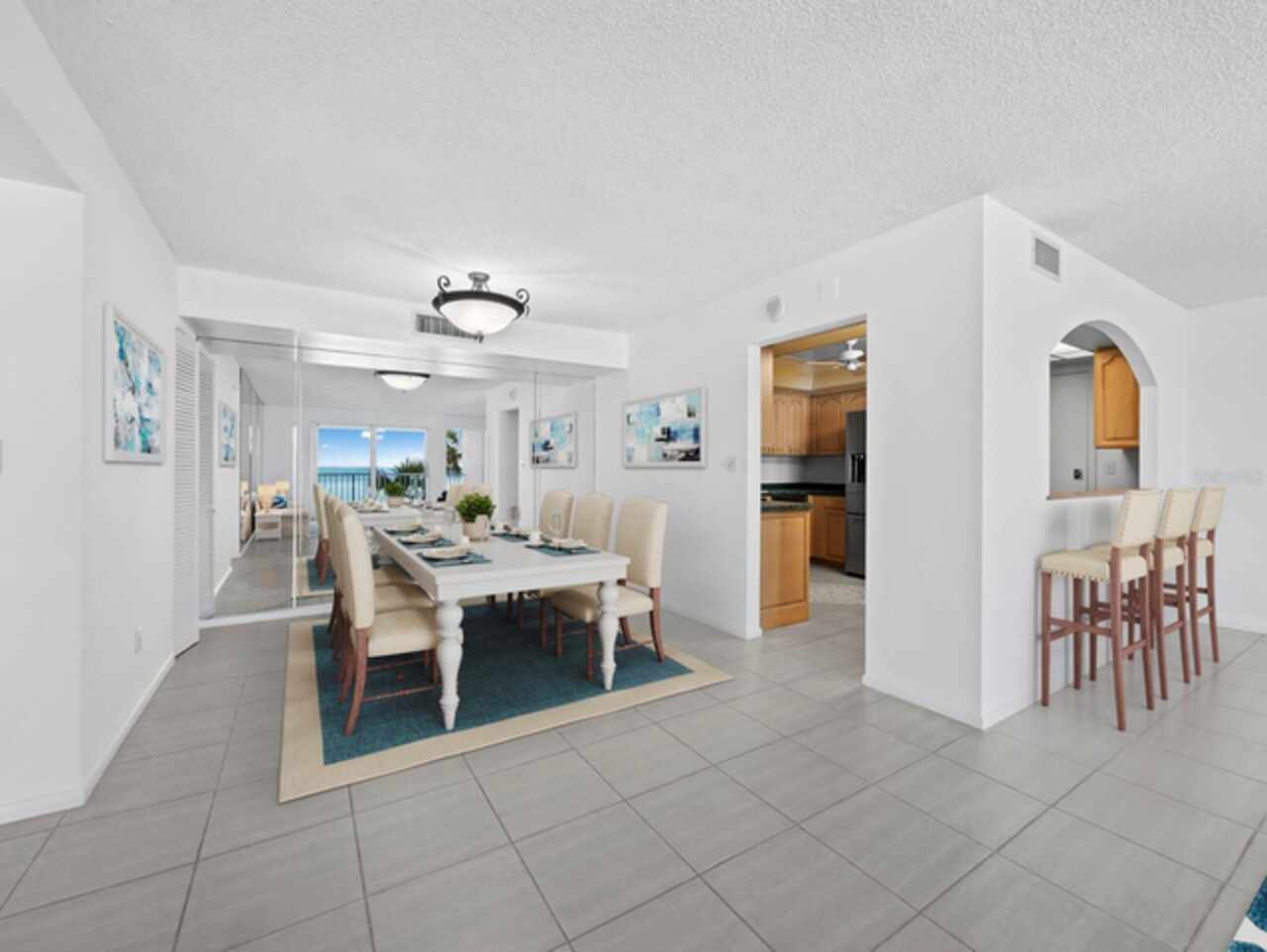 One or more photo(s) has been virtually staged. Front-row Gulf views and beachfront living set this 2BR/2BA residence apart at the Islander Club of Longboat Key. With over 1, 235 sq. ft. of light-filled space set just above the sand, savor sweeping vistas of the shoreline and SPECTACULAR SUNSETS over the Gulf. White tile floors and neutral tones throughout create a sense of openness that draws focus to the stunning natural surroundings. A wall of glass sliders in the living room opens to the expansive terrace, where salty breezes and soft waves make every day feel like a vacation. The terrace spans the full width of the residence and can be accessed from both bedrooms, blending indoor and outdoor living in perfect balance. It’s a space with strong potential to match the lifestyle it serves. The primary suite is bathed in natural light, with floor-to-ceiling windows, a walk-in closet and a private bath with a separate water closet. The guest bedroom is equally inviting, with generous space and direct Gulf views. Islander Club is a highly desirable Gulf-front community offering resort-style amenities, including a beachfront pool, tennis courts, a fitness center, library, and billiards room, along with a secure, gated entrance. Conveniently located in the heart of Longboat Key, you're just minutes from St. Armands Circle, downtown Sarasota, and everything the area has to offer. Additionally, while membership to the Longboat Key Club is not required, it is available for residents seeking enhanced amenities. The club offers Restaurants, lounges, beach & poolside facilities, spa, fitness center, tennis courts, and access to 45 holes of championship golf.