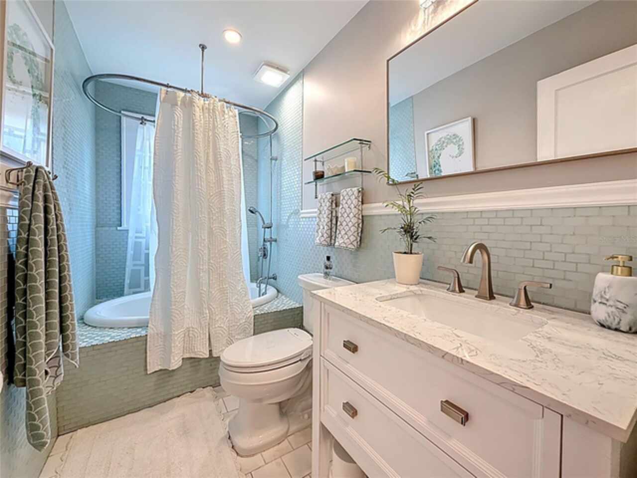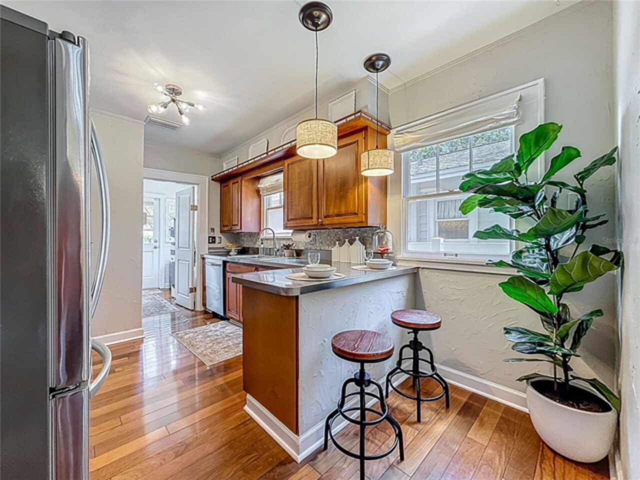 WELCOME TO A MASTERFULLY RENOVATED VINTAGE MODERN CRAFTSMAN HOME NEAR DOWNTOWN ST. PETERSBURG Discover the perfect blend of historic charm and modern luxury in this beautifully renovated 3 Bedroom 2 ½ bathroom layout craftsman bungalow, nestled in the heart of Historic Old Northeast. Perfectly situated just moments from the vibrant energy of downtown St. Petersburg, this residence has been meticulously updated to deliver the pinnacle of luxury and comfort in one of Florida's most sought-after locations. From the moment you arrive, the inviting front porch and classic Craftsman details welcome you to a home that has been reimagined for modern living while honoring its original architectural beauty. Inside, every detail has been thoughtfully curated to create a warm, and functional space designed for both entertaining and everyday life. The newly designed main living areas exude comfort and style, featuring a spacious family room with a vintage brick fireplace accent wall that serves as the heart of the home. The primary suite has many windows which allow natural light to pour in and has direct access to a spa-inspired en-suite bathroom, featuring an spacious shower, with timeless design, featuring elegant finishes and glass tile-walls with a walk-in shower. The guest bedroom is spacious and has Brazilian hardwood floors exposed, that is the same floor all through the house. The guest bathroom has been updated with glass tiles and a deep tub for a relaxing time. Upstairs loft bespoke a respite reading retreat. The additional bedrooms have been thoughtfully updated with new carpeting, new paint and fresh finishes. Also, besides the bedroom, there is a lovely loft with space for a TV room, office or game room. Making your way toward the back of the home, you will love the separate dining room adjacent to the kitchen featuring solid wood cabinetry, glass knob handles, with newly appointed light fixtures and stainless-steel new appliances, loads of storage space and a breakfast bar for casual dining with abundance of natural light. The laundry room is inside the house. From the kitchen, step out back to your outdoor paradise and detached garage. Artisan pavers and turf for play create a completely maintenance free outdoor experience. Enjoy secured parking in your detached garage, this space an equally appealing location for an art studio or workshop. The 1 car garage has a Tesla wall charger and has an additional parking pad behind. Outside, the zero outdoor maintenance landscaped property provides ample opportunities for relaxation and recreation, whether you're enjoying morning coffee on the front porch or hosting gatherings in the backyard. This lovely property has a new roof, new paint, and updated electrical systems with water softener and a tankless hot water heater. The home is in an X flood zone and was high and dry during the last two storms. Located within few blocks from downtown’s waterfront, local markets, coffee shops and parks, this home is a true gem. Click on the virtual tour icon to view the virtual tour! Buyer to verify all measurements.