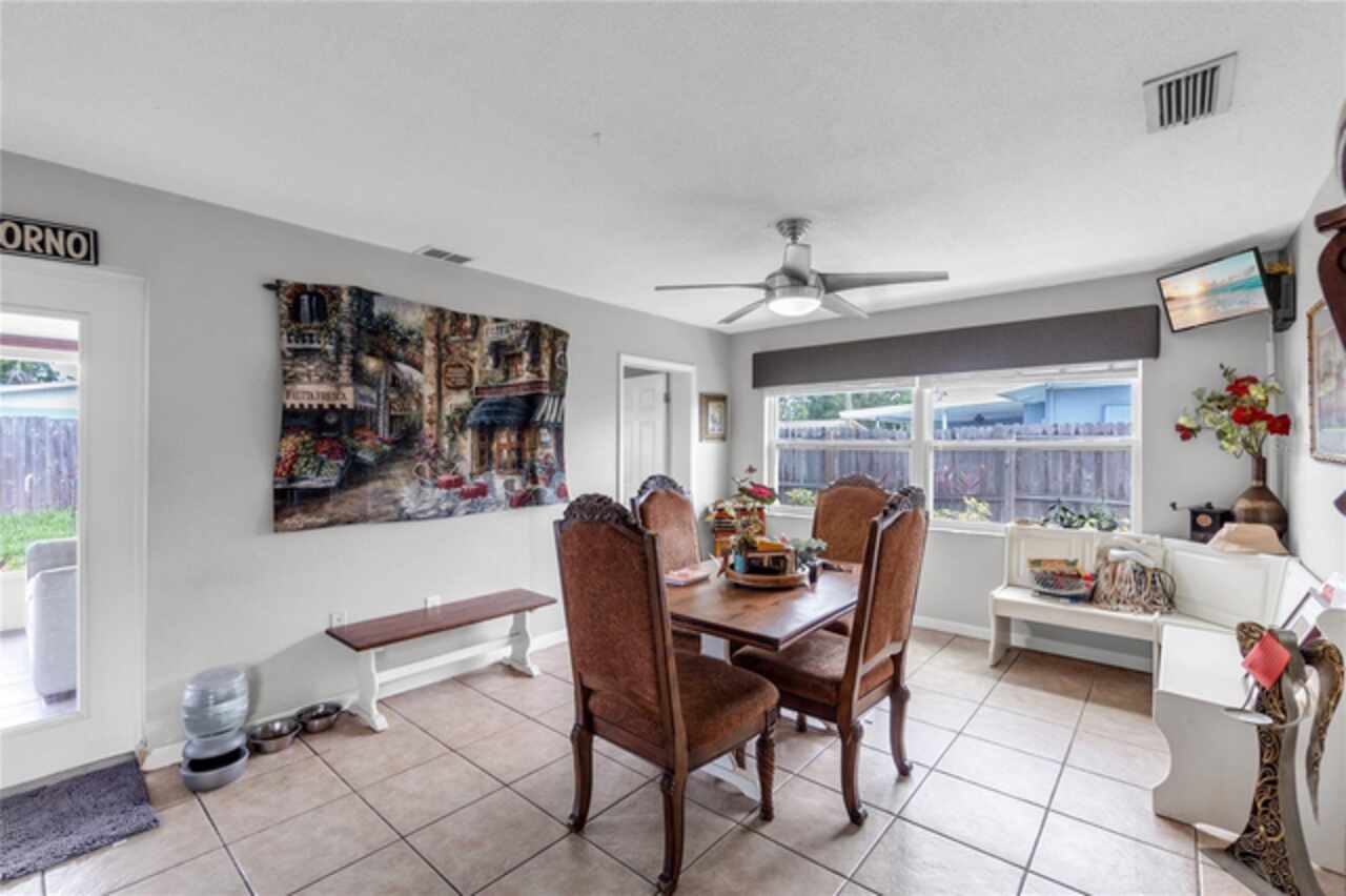 Located in one of the area's most sought-after neighborhoods—popular with young families and investors alike—this updated home is full of character, comfort, and convenience. Nestled in a warm, welcoming, and kid-friendly community, this home offers both lifestyle and opportunity. Inside, you’re greeted by a sun-filled living room featuring a large picture window overlooking the front yard. The layout flows seamlessly into a spacious, open-concept kitchen and dining area, complete with a cozy farmhouse table nook—perfect for gatherings. The kitchen is a standout with its cabinetry, granite countertops, stainless steel appliances, modern glass tile backsplash, under-cabinet lighting, and a window view to the lush backyard. Step through to a generous screened porch, where tiled floors and an artistic wood accent wall create an ideal indoor-outdoor retreat. Just off this area is a versatile office or guest bedroom—perfect for remote work or hosting visitors. The fully fenced backyard is ready for play and entertaining, featuring new sod and landscaping, a fire pit, and plenty of space to make it your own. Bathrooms have been refreshed with new toilets, vanities, cabinetry (guest), and fresh paint. The single-car garage includes a washer, dryer, and deep utility sink, with additional exterior parking conveniently located next to the driveway. Major updates include new electrical and a water heater in 2021 Enjoy a central location just minutes from Downtown Bradenton, the vibrant art district, and the pristine beaches of Anna Maria Island. With dining, shopping, and activities all nearby, this home checks every box for comfort, style, and smart investment.