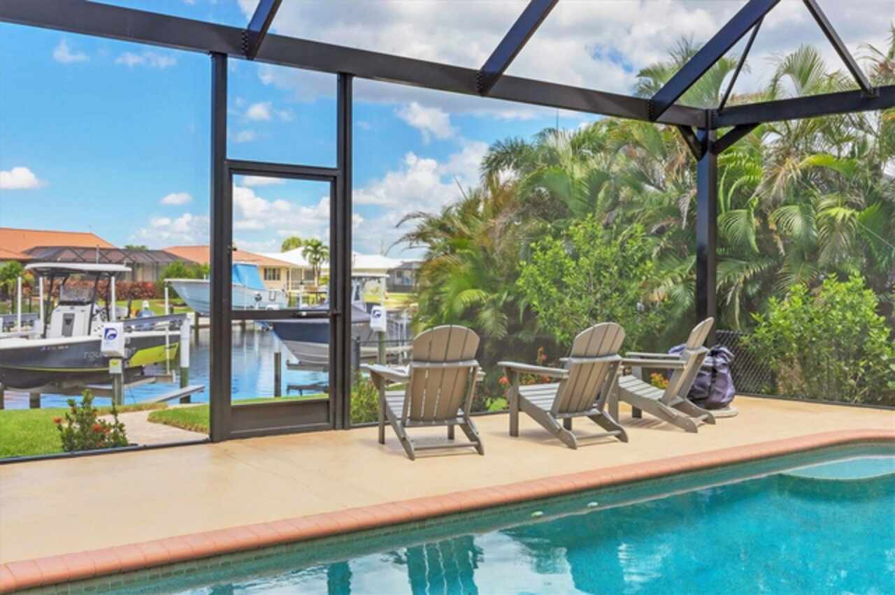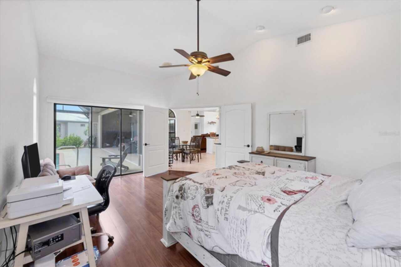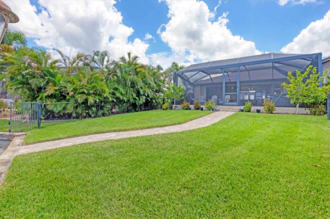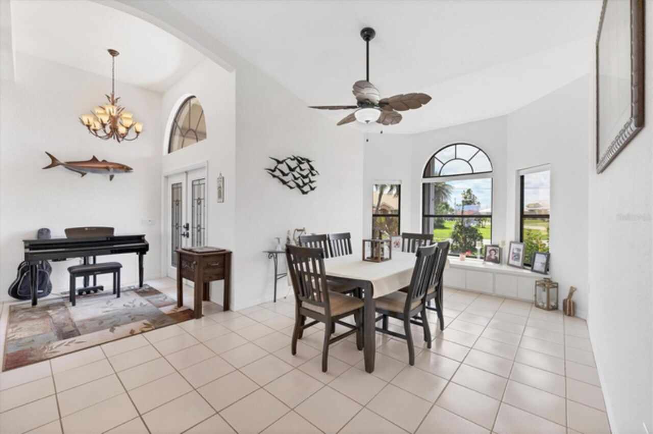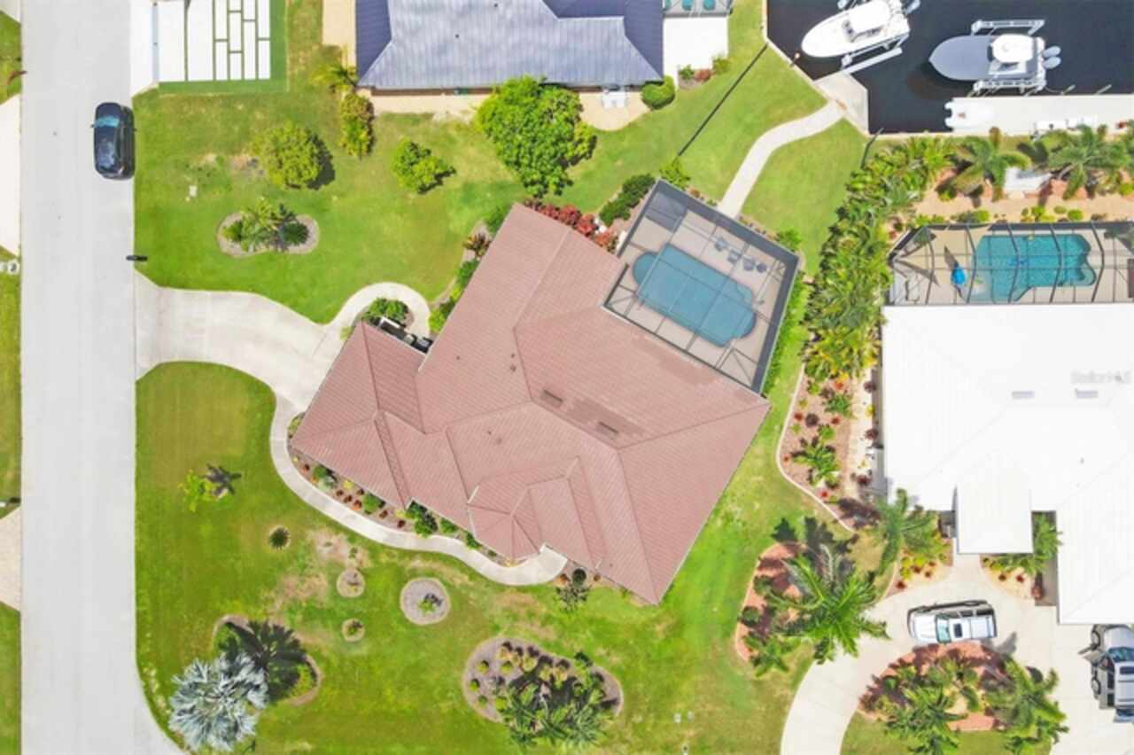 Tucked away within Punta Gorda Isles & just a short boat ride out to the open waters of Charlotte Harbor! Now available, an authentic Potter built, 3/2/2 home that offers peace, privacy and everything a watersport enthusiast could ever want! Overlooking a canal lagoon w/30 ft of sea wall, an 8 x12 angular cement dock & a 10, 000 lb. boat lift! The home attributes vaulted & tall ceilings, freshly painted neutral hues throughout, a sprawling & open floor plan with split sleeping quarters! One of its best features is its large, heated swimming pool, situated within the *NEW* “Miami-Dade grade” pool cage & nosuem screen; its covered lanai, w/ 2 fans, which can all be accessed via glass pocket sliders off the living room, the great room/den as well as from the Primary bedroom! Whether you're hosting out of town guests, enjoying family time, or simply relaxing, this home offers plenty of room to entertain inside that naturally flows outside! Inside, a bright and inviting atmosphere, but the real magic happens outside and out on the water! Perfect for gathering with friends or winding down after a day on the boat. What really sets this property apart, is built on a spacious, oversized, corner lot, on a cul-de-sac and is significantly set-back off the canal & along with the newly planted landscape, provides plenty of seclusion and tranquility. It's a haven for those who love to relax and enjoy being in the outdoors in every way. Whether you're looking for a quiet, seasonal retreat or a full-time home, this property surely delivers! It's private, peaceful, and will be perfect for the most discerning buyer.