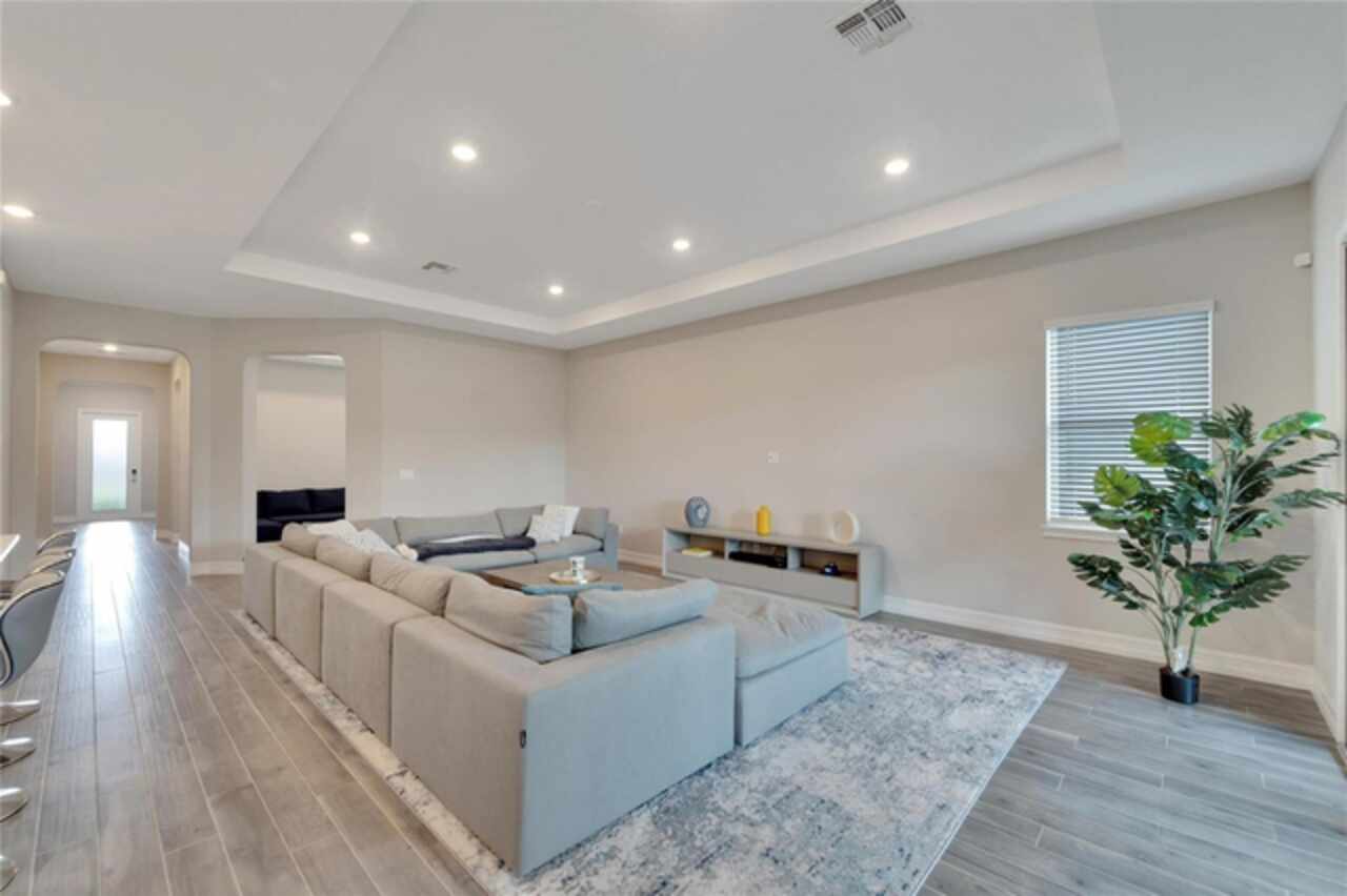 High Ceilings, Kitchen/Family Room Combo, Open Floorplan, Primary Bedroom Main Floor, Solid Surface Counters, Thermostat, Tray Ceiling(s), Walk-In Closet(s), Window Treatments