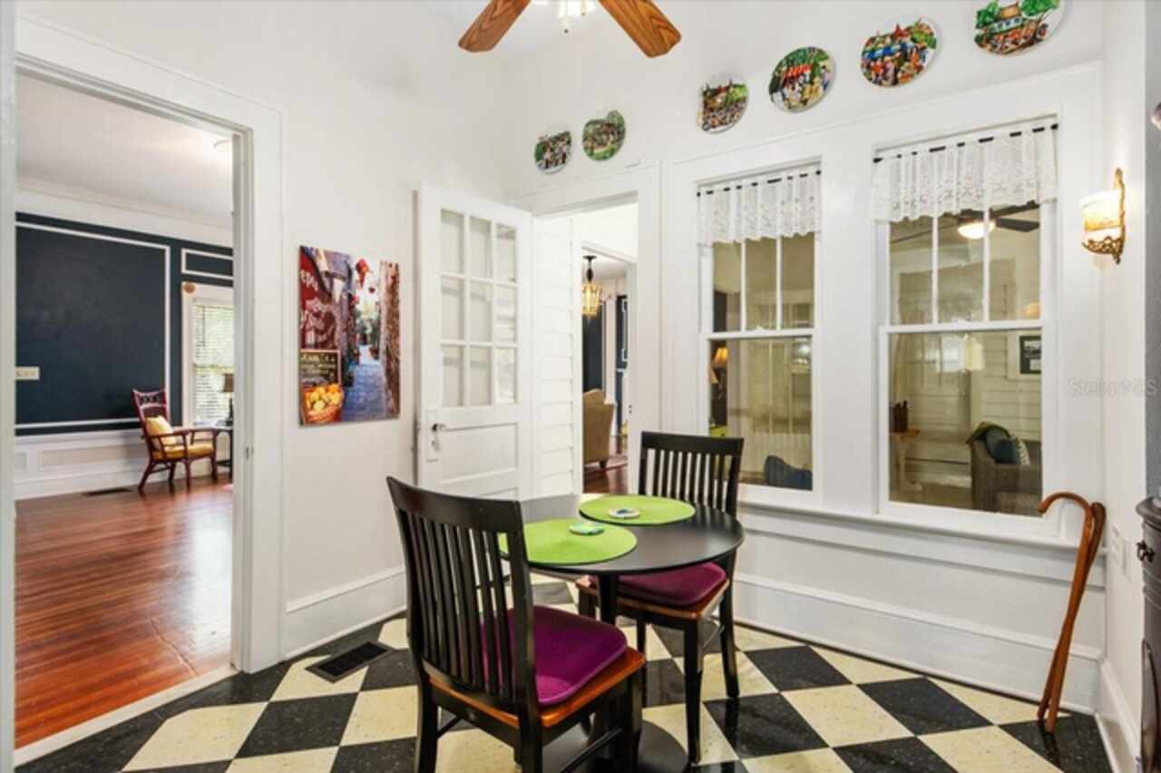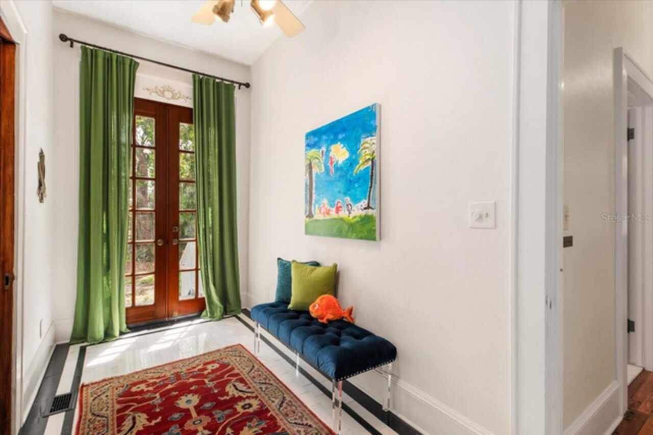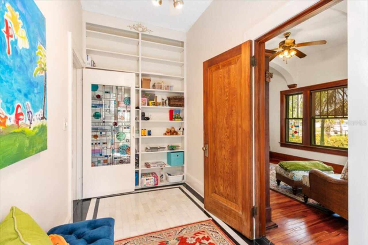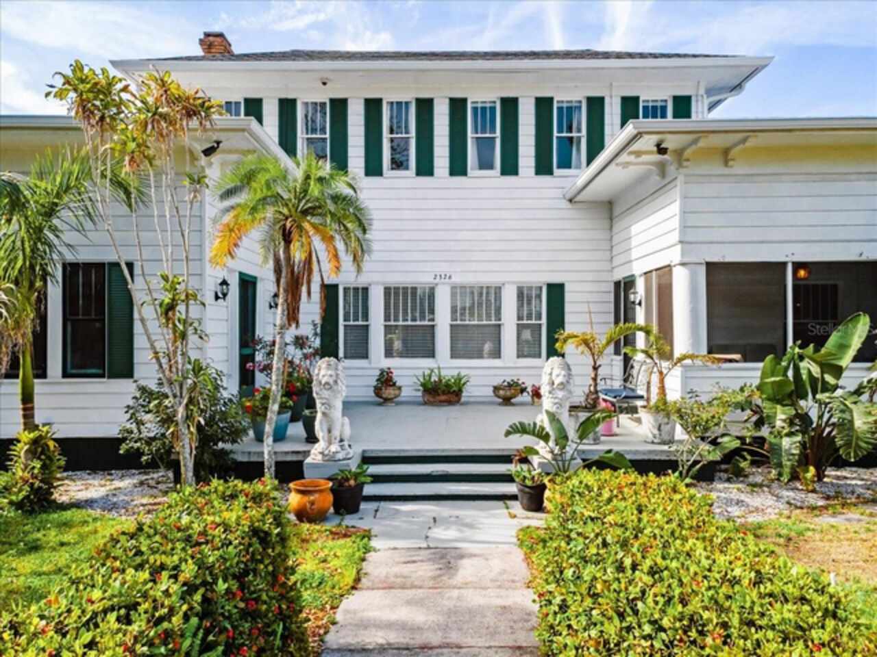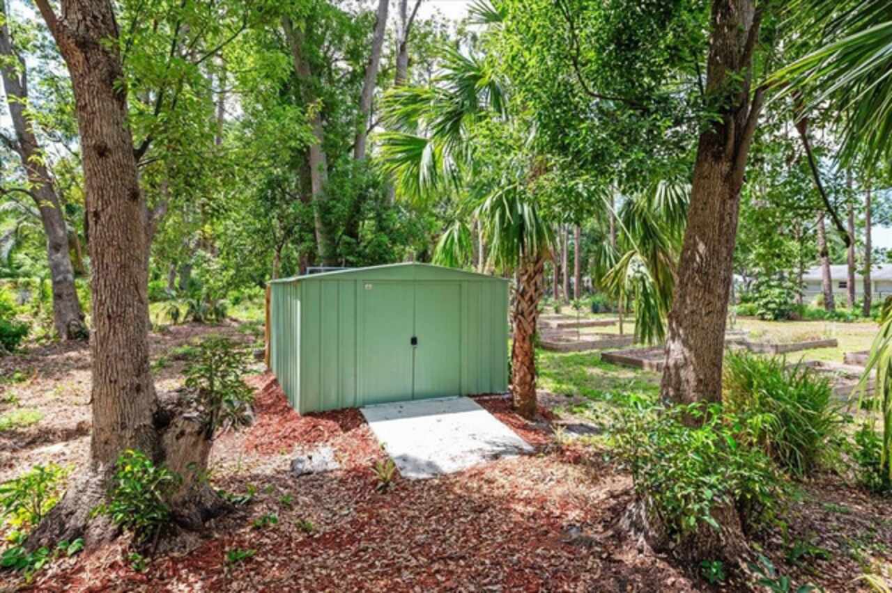 Come home to your oasis, a home distinguished by refined elegance and old Florida charm. Built around 1928 as the personal residence of Dr Blake Lancaster, a local surgeon, painter, and musician, this is no old house with a cookie cutter renovation. Move-in ready, the home has preserved features and historic patina that combine with modern functionality for a light- filled and joyful ambience. With spacious rooms and 10’4” ceilings, it is perfect for those who love to entertain or host fun family gatherings, who seek a serene retreat or who crave a huge canvas to express their creativity. Miraculously, many original features remain: gleaming heart- pine flooring, 7’ mahogany veneer paneling, 4 original murals by Lancaster; arched ceilings, carved pilasters, gilted carved pocket doors, impressive Art Deco light fixtures, a built-in bookcase & mahogany wardrobe. Renovations and updates (between 2020-24) include kitchen and laundry with new LG appliances, bathrooms, window glazing, plumbing, electrical, new roof, & 3 new A/C units. Additions include a bespoke stained-glass interior door, ornamental fence, & backyard irrigation. A new 400 sq ft sunroom (2023) features ceiling-to-floor doors that open onto the deck of a 29’ heated, saltwater pool with sun shelf + bubbler. Sweeping views of the rear garden transport you to a leafy preserve, with winding nature trails, raised garden beds, lush tropical trees, flowering vegetation, even insect hotels! An outdoor chessboard with oversized playing pieces lend a European city park vibe; a climbing structure created from lighter trees is a kids’ favorite. A 12x20’ custom shed (2022) is stylistically in step with the house & fully wired with A/C; it is used as workshop but could be converted into pool house, art studio, or office. Two rooms in the house – the breakfast room and the former east foyer, now a playroom – are also versatile and could be repurposed, and prior owners used the study as a 4 th bedroom. So many options! Unlike many older homes, this one offers great storage, including walk-in closets in every bedroom and a walk-in linen closet upstairs. Main bedroom is downstairs. The home is solidly constructed on a raised foundation to minimize risk of flooding. The rear lots (~.8 acre) are zoned residential, but options to develop are almost limitless with city approval: homes for the next generation, in-law or Airbnb cottages, a retreat center, a wedding venue. Or keep the entire property as it is, your oasis, an escape that invites you to relax and play, that inspires you and draws out your creativity. A copy of the history of the house conveys. Many furnishings negotiable, if turnkey is preferred. This remarkable home is set in a diverse and friendly neighborhood, walkable to Olde Manatee, the Bradenton Riverwalk & Manatee River. Close proximity to public boat launch on Braden River, golf courses, shops, restaurants, & grocers. Minutes to downtown Bradenton, Saturday farmers market, & marina; 11 miles to world-class soft-sand beaches, 20 minutes to SRQ airport or UTC mall, 30 to downtown Sarasota, 35 to St Pete, 50 to TPA airport. Discover how old Florida can enliven your future!