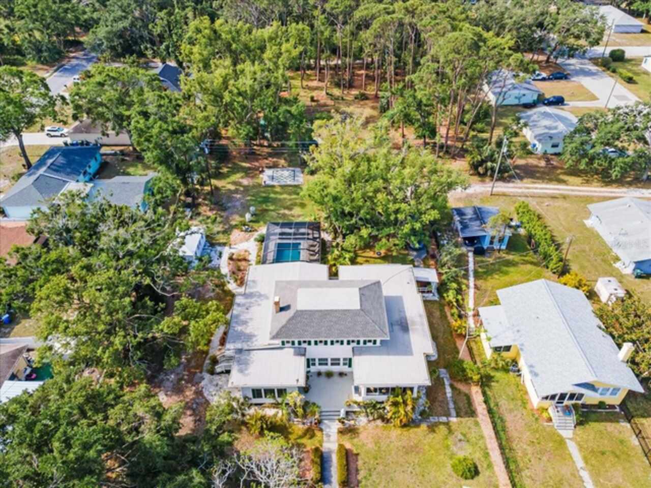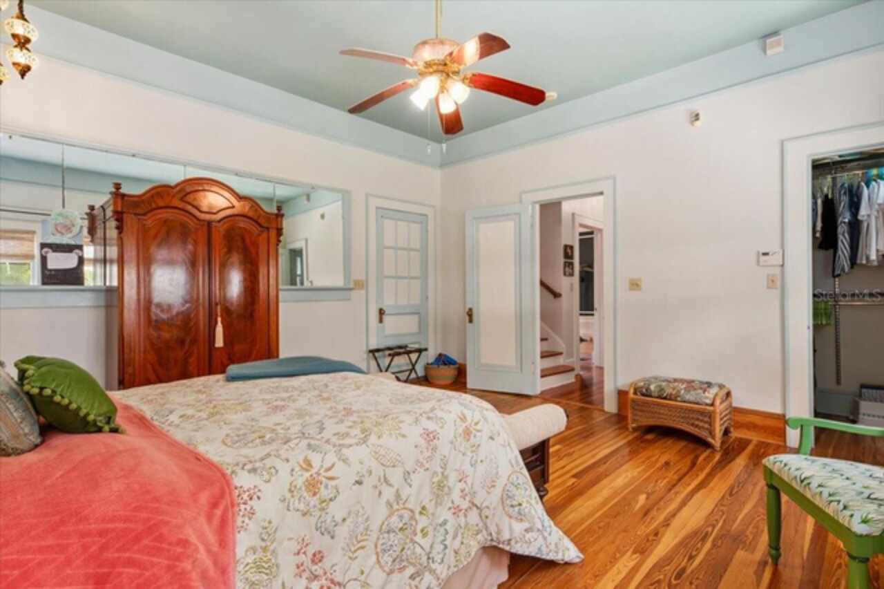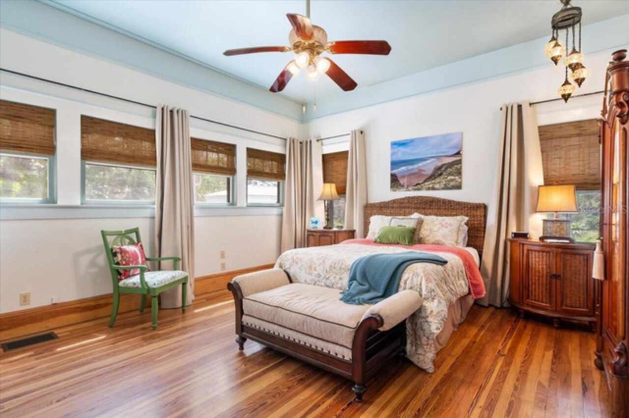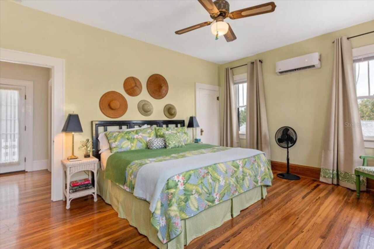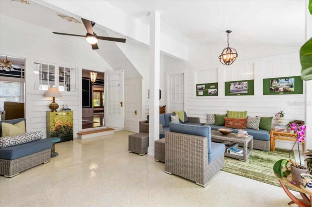 Come home to your oasis, a home distinguished by refined elegance and old Florida charm. Built around 1928 as the personal residence of Dr Blake Lancaster, a local surgeon, painter, and musician, this is no old house with a cookie cutter renovation. Move-in ready, the home has preserved features and historic patina that combine with modern functionality for a light- filled and joyful ambience. With spacious rooms and 10’4” ceilings, it is perfect for those who love to entertain or host fun family gatherings, who seek a serene retreat or who crave a huge canvas to express their creativity. Miraculously, many original features remain: gleaming heart- pine flooring, 7’ mahogany veneer paneling, 4 original murals by Lancaster; arched ceilings, carved pilasters, gilted carved pocket doors, impressive Art Deco light fixtures, a built-in bookcase & mahogany wardrobe. Renovations and updates (between 2020-24) include kitchen and laundry with new LG appliances, bathrooms, window glazing, plumbing, electrical, new roof, & 3 new A/C units. Additions include a bespoke stained-glass interior door, ornamental fence, & backyard irrigation. A new 400 sq ft sunroom (2023) features ceiling-to-floor doors that open onto the deck of a 29’ heated, saltwater pool with sun shelf + bubbler. Sweeping views of the rear garden transport you to a leafy preserve, with winding nature trails, raised garden beds, lush tropical trees, flowering vegetation, even insect hotels! An outdoor chessboard with oversized playing pieces lend a European city park vibe; a climbing structure created from lighter trees is a kids’ favorite. A 12x20’ custom shed (2022) is stylistically in step with the house & fully wired with A/C; it is used as workshop but could be converted into pool house, art studio, or office. Two rooms in the house – the breakfast room and the former east foyer, now a playroom – are also versatile and could be repurposed, and prior owners used the study as a 4 th bedroom. So many options! Unlike many older homes, this one offers great storage, including walk-in closets in every bedroom and a walk-in linen closet upstairs. Main bedroom is downstairs. The home is solidly constructed on a raised foundation to minimize risk of flooding. The rear lots (~.8 acre) are zoned residential, but options to develop are almost limitless with city approval: homes for the next generation, in-law or Airbnb cottages, a retreat center, a wedding venue. Or keep the entire property as it is, your oasis, an escape that invites you to relax and play, that inspires you and draws out your creativity. A copy of the history of the house conveys. Many furnishings negotiable, if turnkey is preferred. This remarkable home is set in a diverse and friendly neighborhood, walkable to Olde Manatee, the Bradenton Riverwalk & Manatee River. Close proximity to public boat launch on Braden River, golf courses, shops, restaurants, & grocers. Minutes to downtown Bradenton, Saturday farmers market, & marina; 11 miles to world-class soft-sand beaches, 20 minutes to SRQ airport or UTC mall, 30 to downtown Sarasota, 35 to St Pete, 50 to TPA airport. Discover how old Florida can enliven your future!