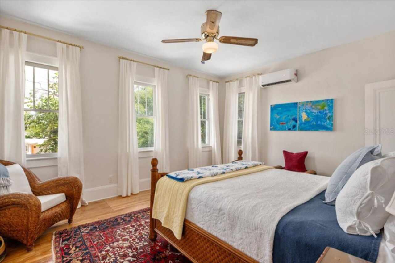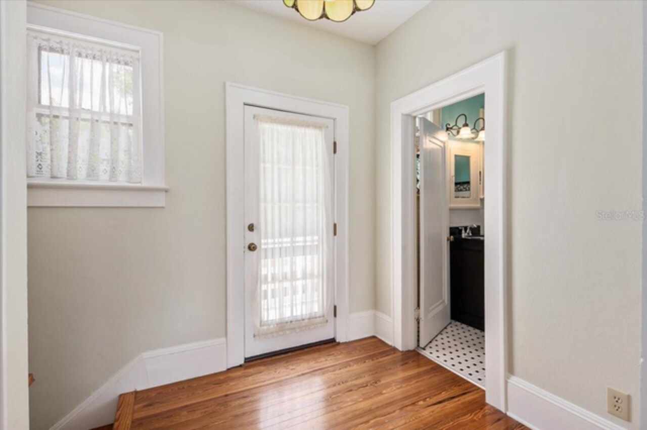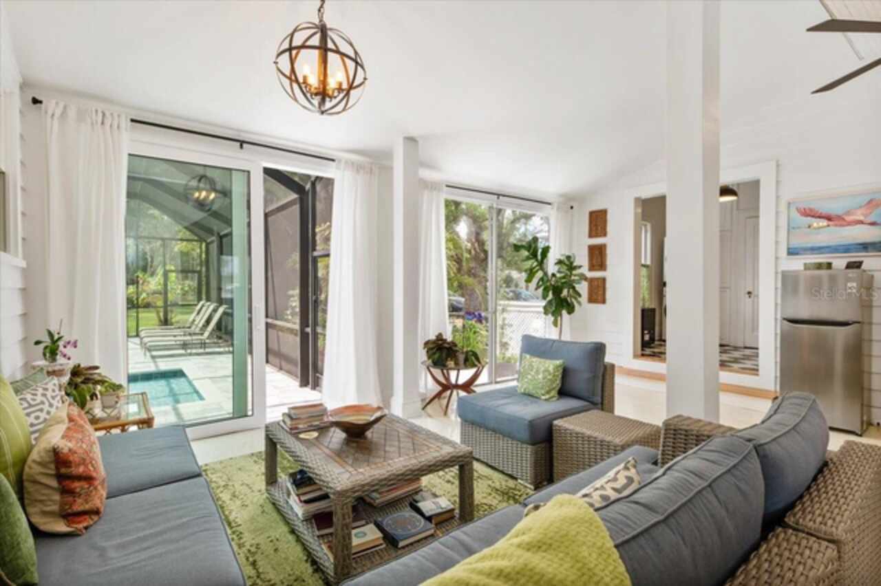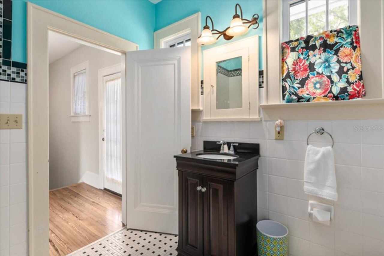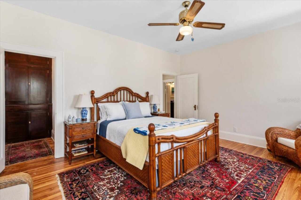 Come home to your oasis, a home distinguished by refined elegance and old Florida charm. Built around 1928 as the personal residence of Dr Blake Lancaster, a local surgeon, painter, and musician, this is no old house with a cookie cutter renovation. Move-in ready, the home has preserved features and historic patina that combine with modern functionality for a light- filled and joyful ambience. With spacious rooms and 10’4” ceilings, it is perfect for those who love to entertain or host fun family gatherings, who seek a serene retreat or who crave a huge canvas to express their creativity. Miraculously, many original features remain: gleaming heart- pine flooring, 7’ mahogany veneer paneling, 4 original murals by Lancaster; arched ceilings, carved pilasters, gilted carved pocket doors, impressive Art Deco light fixtures, a built-in bookcase & mahogany wardrobe. Renovations and updates (between 2020-24) include kitchen and laundry with new LG appliances, bathrooms, window glazing, plumbing, electrical, new roof, & 3 new A/C units. Additions include a bespoke stained-glass interior door, ornamental fence, & backyard irrigation. A new 400 sq ft sunroom (2023) features ceiling-to-floor doors that open onto the deck of a 29’ heated, saltwater pool with sun shelf + bubbler. Sweeping views of the rear garden transport you to a leafy preserve, with winding nature trails, raised garden beds, lush tropical trees, flowering vegetation, even insect hotels! An outdoor chessboard with oversized playing pieces lend a European city park vibe; a climbing structure created from lighter trees is a kids’ favorite. A 12x20’ custom shed (2022) is stylistically in step with the house & fully wired with A/C; it is used as workshop but could be converted into pool house, art studio, or office. Two rooms in the house – the breakfast room and the former east foyer, now a playroom – are also versatile and could be repurposed, and prior owners used the study as a 4 th bedroom. So many options! Unlike many older homes, this one offers great storage, including walk-in closets in every bedroom and a walk-in linen closet upstairs. Main bedroom is downstairs. The home is solidly constructed on a raised foundation to minimize risk of flooding. The rear lots (~.8 acre) are zoned residential, but options to develop are almost limitless with city approval: homes for the next generation, in-law or Airbnb cottages, a retreat center, a wedding venue. Or keep the entire property as it is, your oasis, an escape that invites you to relax and play, that inspires you and draws out your creativity. A copy of the history of the house conveys. Many furnishings negotiable, if turnkey is preferred. This remarkable home is set in a diverse and friendly neighborhood, walkable to Olde Manatee, the Bradenton Riverwalk & Manatee River. Close proximity to public boat launch on Braden River, golf courses, shops, restaurants, & grocers. Minutes to downtown Bradenton, Saturday farmers market, & marina; 11 miles to world-class soft-sand beaches, 20 minutes to SRQ airport or UTC mall, 30 to downtown Sarasota, 35 to St Pete, 50 to TPA airport. Discover how old Florida can enliven your future!