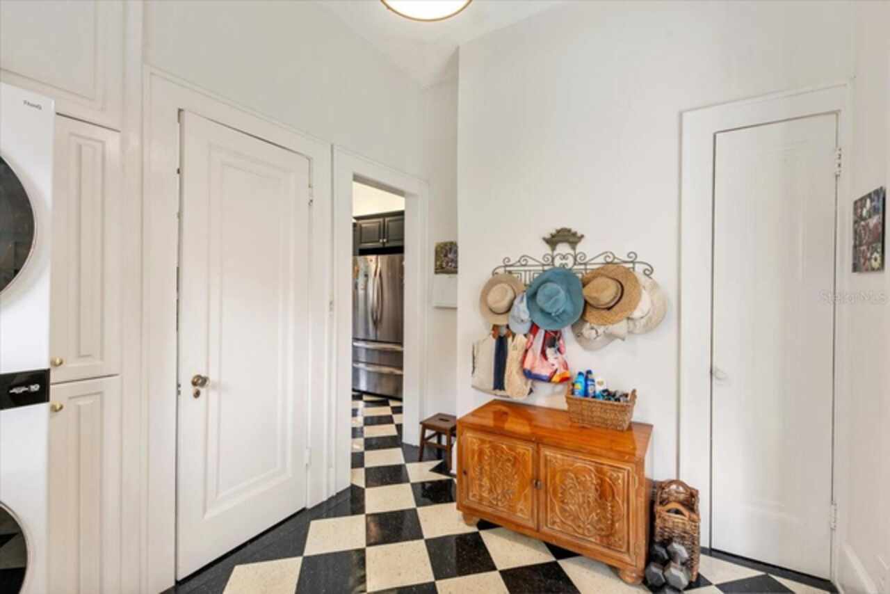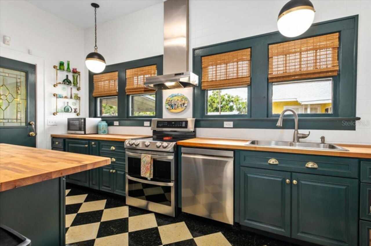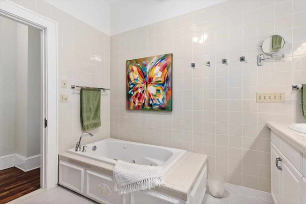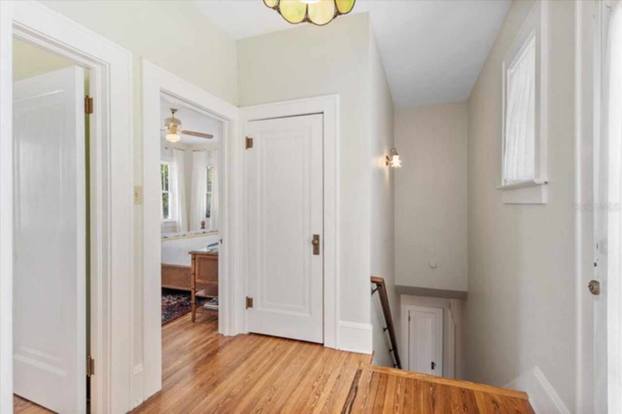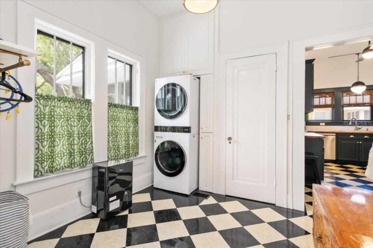 Come home to your oasis, a home distinguished by refined elegance and old Florida charm. Built around 1928 as the personal residence of Dr Blake Lancaster, a local surgeon, painter, and musician, this is no old house with a cookie cutter renovation. Move-in ready, the home has preserved features and historic patina that combine with modern functionality for a light- filled and joyful ambience. With spacious rooms and 10’4” ceilings, it is perfect for those who love to entertain or host fun family gatherings, who seek a serene retreat or who crave a huge canvas to express their creativity. Miraculously, many original features remain: gleaming heart- pine flooring, 7’ mahogany veneer paneling, 4 original murals by Lancaster; arched ceilings, carved pilasters, gilted carved pocket doors, impressive Art Deco light fixtures, a built-in bookcase & mahogany wardrobe. Renovations and updates (between 2020-24) include kitchen and laundry with new LG appliances, bathrooms, window glazing, plumbing, electrical, new roof, & 3 new A/C units. Additions include a bespoke stained-glass interior door, ornamental fence, & backyard irrigation. A new 400 sq ft sunroom (2023) features ceiling-to-floor doors that open onto the deck of a 29’ heated, saltwater pool with sun shelf + bubbler. Sweeping views of the rear garden transport you to a leafy preserve, with winding nature trails, raised garden beds, lush tropical trees, flowering vegetation, even insect hotels! An outdoor chessboard with oversized playing pieces lend a European city park vibe; a climbing structure created from lighter trees is a kids’ favorite. A 12x20’ custom shed (2022) is stylistically in step with the house & fully wired with A/C; it is used as workshop but could be converted into pool house, art studio, or office. Two rooms in the house – the breakfast room and the former east foyer, now a playroom – are also versatile and could be repurposed, and prior owners used the study as a 4 th bedroom. So many options! Unlike many older homes, this one offers great storage, including walk-in closets in every bedroom and a walk-in linen closet upstairs. Main bedroom is downstairs. The home is solidly constructed on a raised foundation to minimize risk of flooding. The rear lots (~.8 acre) are zoned residential, but options to develop are almost limitless with city approval: homes for the next generation, in-law or Airbnb cottages, a retreat center, a wedding venue. Or keep the entire property as it is, your oasis, an escape that invites you to relax and play, that inspires you and draws out your creativity. A copy of the history of the house conveys. Many furnishings negotiable, if turnkey is preferred. This remarkable home is set in a diverse and friendly neighborhood, walkable to Olde Manatee, the Bradenton Riverwalk & Manatee River. Close proximity to public boat launch on Braden River, golf courses, shops, restaurants, & grocers. Minutes to downtown Bradenton, Saturday farmers market, & marina; 11 miles to world-class soft-sand beaches, 20 minutes to SRQ airport or UTC mall, 30 to downtown Sarasota, 35 to St Pete, 50 to TPA airport. Discover how old Florida can enliven your future!