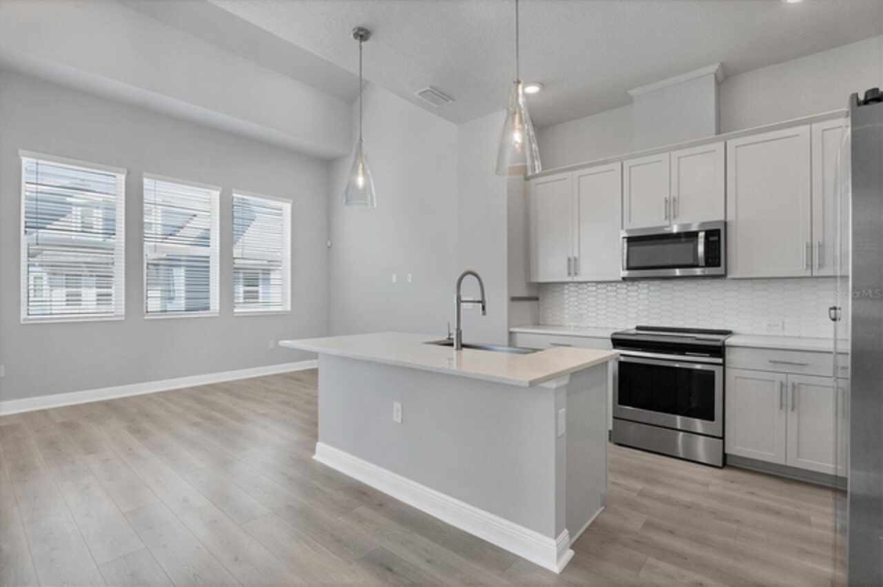DOWNTOWN SARASOTA MODERN LIVING! You could be the proud owner of this Newer built (2022) Luxury Townhome. With 3 bedrooms + 3 full baths + ½ Bath + Bonus Loft + Rear entry 2 Car Garage there is room for everyone. This freshly painted, beautiful, and modern Townhome boasts over 1800 sq ft and 3 levels of living space. There is a bedroom and bathroom on each floor making this is an ideal opportunity to be together, but also have some privacy. The upscale design will lure you into all the comforts of home! The open style kitchen has it all with stainless steel appliances, quartz countertops, 42” wood cabinets, designer pendant lights, and an island with room for multiple counter height stools. There is even a separate pantry closet that is HUGE with custom wood shelving. The Kitchen opens up to the Living Space with Soaring Ceilings and views of the pool and amenities. Sunshine fills all the rooms with so many windows we lost count and all with custom blinds. The Primary Bedroom is so roomy with an En-suite bathroom including glass showers doors, separate water closet, large vanity with double sinks, classy quartz countertops, and modern lighting. The laundry is located next to the primary Bedroom on the 2nd level and includes a stackable washer and dryer. This Townhome has its very own brick paver fenced front courtyard that leads to the front door. This one of a kind neighborhood includes sidewalks, beautiful tropical landscaping, resort style heated pool and spa, tons of resort style pool lounge chairs, umbrellas, doggie park, grills, and picnic tables, and even corn hole. This Sarasota, FL location is one of the best as The Legacy Trail (18 Miles of entertainment and/or exercise) is easily accessible from the private entrance. Just across the street from the community is Sarasota's very own Payne Park including acres and acres of green space including tennis courts, circus playground, skate park, disc golf course, café, and so much more. Downtown Sarasota is known for its crazy amount of wide range delicious restaurants, entertainment, parades, arts, events, and weekly farmers market. LIVE/WORK/PLAY all in one place! Start Living your Dreams Today!