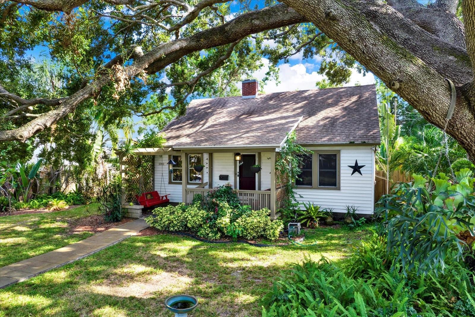 BUYER CONCESSIONS AVAILABLE- RATE BUY DOWN, CLOSING COSTS, GENERAL CREDIT, WHATEVER BENEFITS THE BUYER BEST! HVAC OVERHAUL - BRAND NEW AC DUCTS WITH FULL SYSTEM TUNEUP & WARRANTY. TERMITE Tenting warranty fully transferrable, have piece of mind with the cost of tenting fully covered! Historic Charm Meets Modern Functionality in the Heart of Kenwood Welcome to 2342 8th Avenue North, a beautifully preserved and thoughtfully updated home in the highly sought-after Historic Kenwood neighborhood of St. Petersburg. This rare gem blends the character of the 1940s with modern conveniences, offering a perfect balance of timeless craftsmanship and functional living. Inside, you’ll find three bedrooms and two bathrooms, including a spacious primary suite featuring a private en suite bath, independent A/C system for personalized climate control, and elegant French doors that open directly to the lush backyard oasis—ideal for relaxing mornings or quiet evenings outdoors. The home is adorned with original 1940 hardwood flooring throughout the main living areas, historic glass and brass doorknobs, and vintage bathroom tile that nods to the home’s architectural roots. Metal hurricane shutters provide added peace of mind and protection. Functionality meets flexibility with a gas-connected infrastructure serving the kitchen, laundry, tankless water heater, whole-home generator, outdoor grill, and even additional hose bibs for expansion possibilities. These features are a rare find in historic homes and provide incredible utility and efficiency. Step outside into your own private sanctuary—a truly stunning backyard framed by mature oak trees, lush tropical landscaping, and designed with entertaining in mind. The space provides a unique escape from the city, perfect for hosting gatherings, enjoying outdoor dining, or simply unwinding in nature. Alley access leads to a private driveway and a covered carport with room for two vehicles, enhancing both convenience and privacy. Located just minutes from downtown St. Petersburg, the Grand Central District, local art galleries, award-winning restaurants, and vibrant community events, this home places you in one of the most dynamic and connected neighborhoods in the city—all while offering a peaceful retreat of your own. If you're searching for a home with authentic character, modern amenities, and unbeatable location, 2342 8th Avenue North is not to be missed.