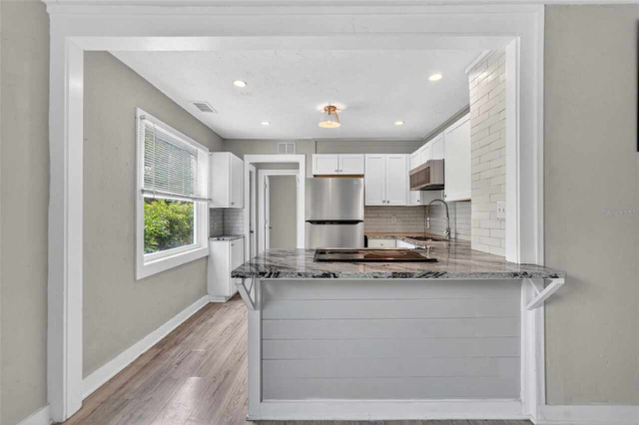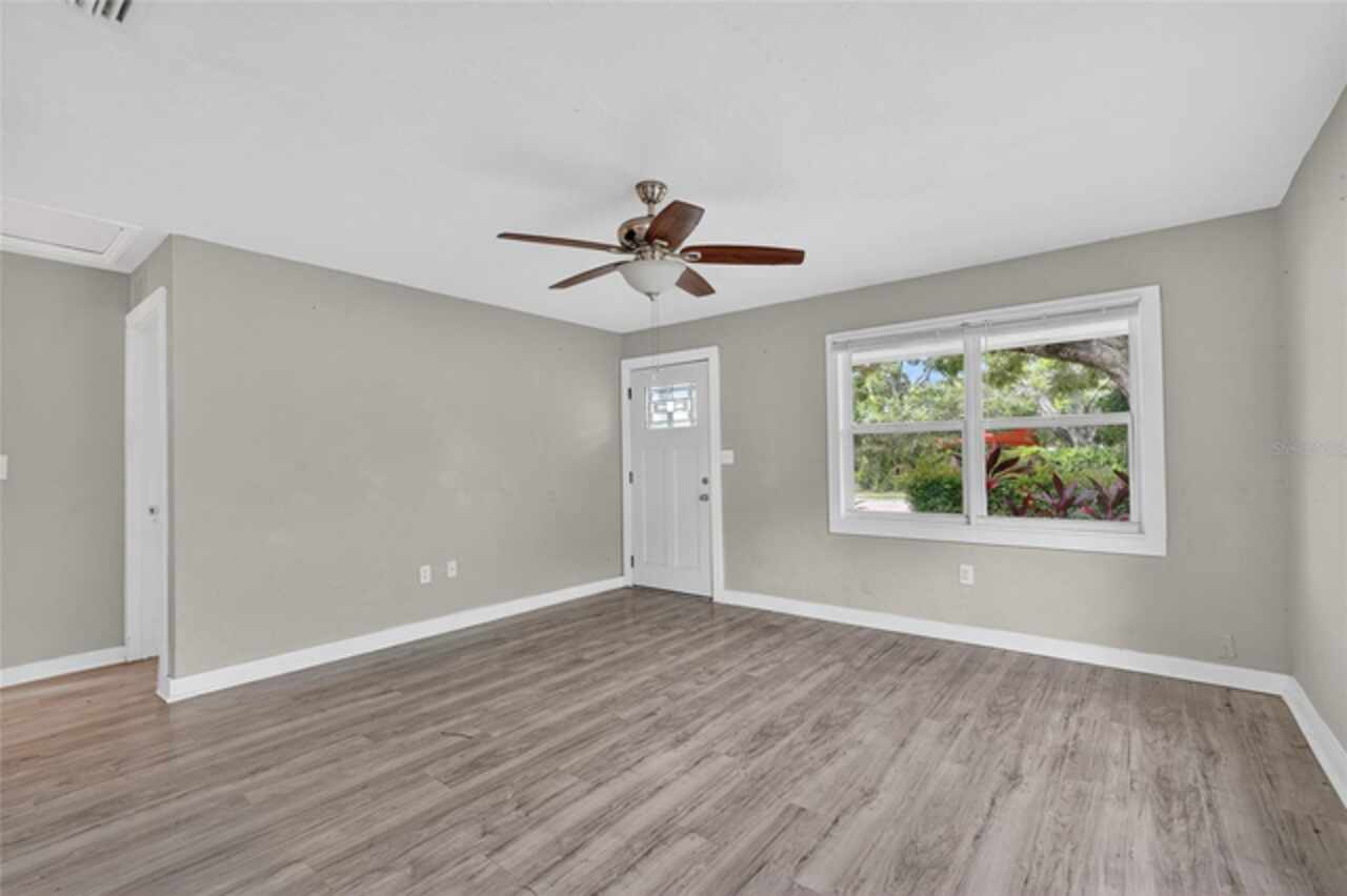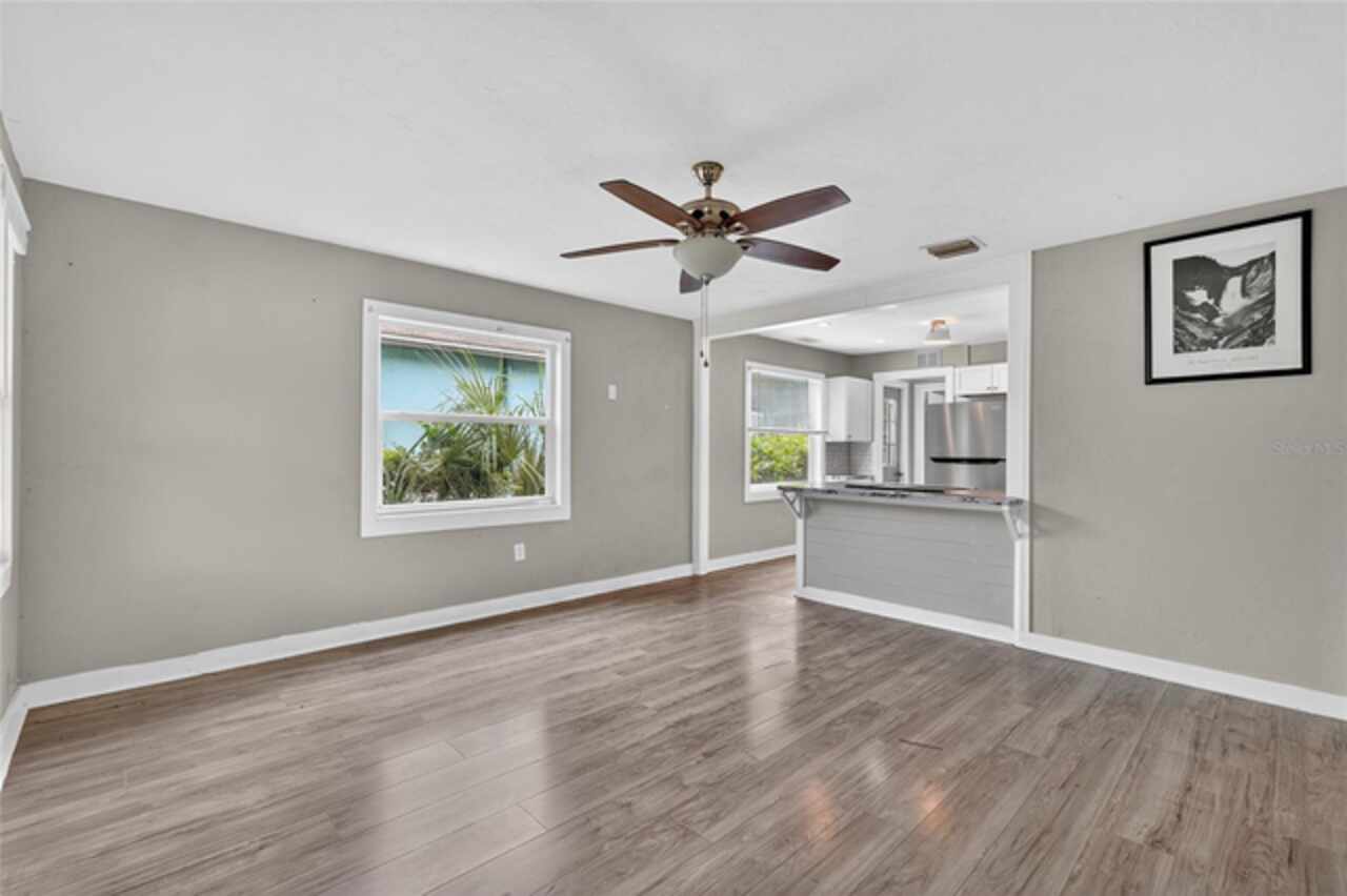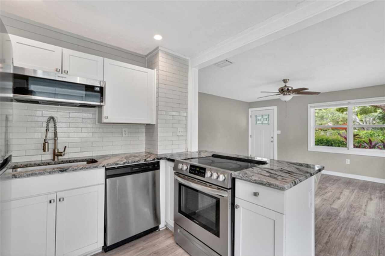 Welcome to this beautifully updated three-bedroom, two-bathroom home in St. Pete, offering modern upgrades and a spacious layout perfect for Florida living. From the charming front porch and carport parking to the huge fenced-in backyard, this home has it all. Inside, you’ll find fresh paint, wood-look laminate flooring, and a bright living room and kitchen combo with ceiling fans for comfort. The kitchen is updated, featuring granite countertops, stainless steel appliances, a stylish backsplash, and a new sink & faucet. A spacious laundry room with cabinets and extra storage makes everyday tasks a breeze. The split floor plan provides privacy, with updated bathrooms that include new vanities, mirrors, and fixtures. The primary suite offers its own attached bathroom with a beautifully tiled walk-in shower. Step outside to enjoy the expansive fenced backyard with a wooden deck, ideal for grilling, gardening, lounging, and outdoor activities. A storage shed provides plenty of space for lawn equipment and tools. Conveniently located near 34th Street with endless dining options, this home is also close to nature parks, Twin Brooks Golf Course, the Gulf beaches, and I-275 for easy travel. Downtown St. Pete is just 8 minutes away via I-275, where you’ll find even more dining options, boutique shopping, museums, events, and activities. This move-in-ready St. Pete home blends comfort, updates, and location, perfect for enjoying the Florida lifestyle. Schedule your private showing today!