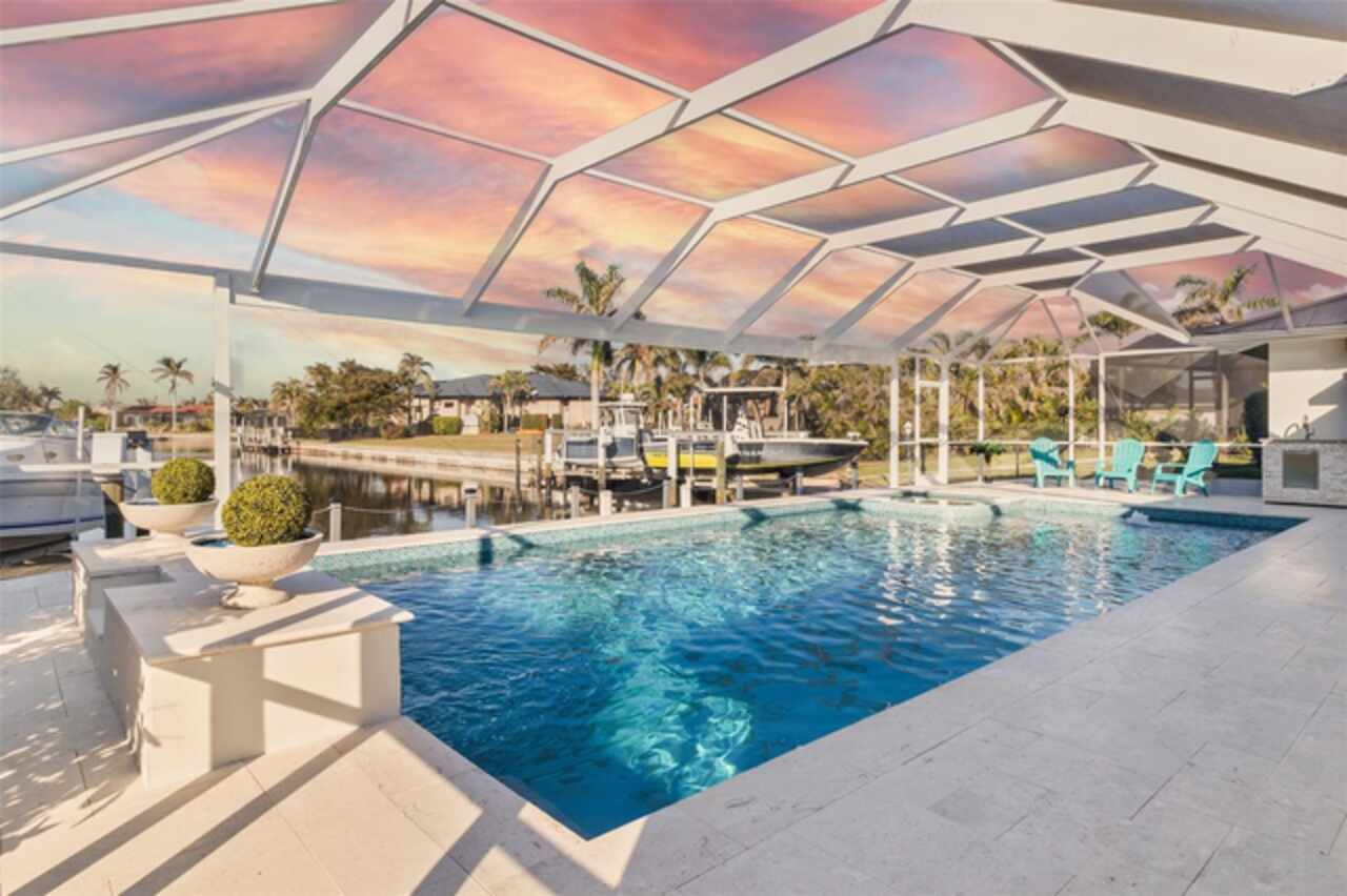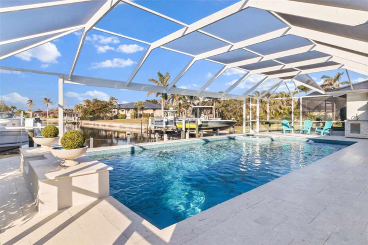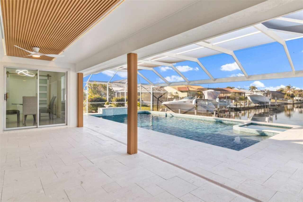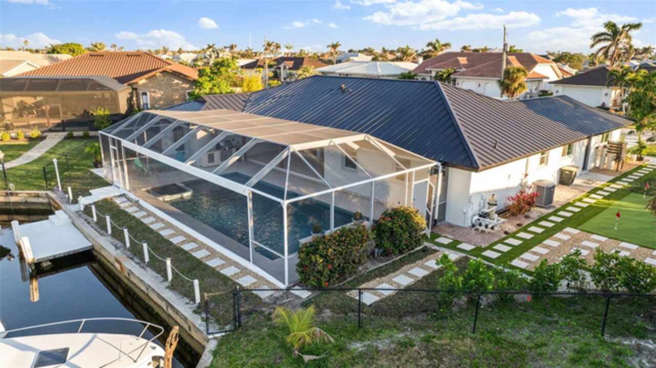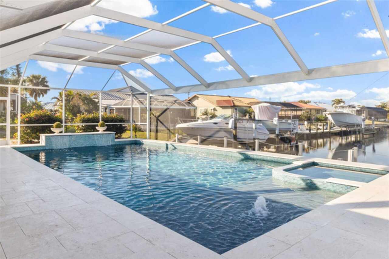 One or more photo(s) has been virtually staged. Priced To Sell, Enjoy Florida's luxury living in Punta Gorda Isles with this breathtaking 4-bedroom, 3.5-bathroom Resort-Style WATERFRONT POOL HOME with Direct Sailboat access, and DOCK. This beautifully updated Vacation or Primary Home offers almost 2, 800 sqft of meticulously designed living space with modern amenities, including a new metal roof , architecturally designed outdoor spaces, and more. As you enter, you are greeted by an abundance of natural light streaming through the new impact windows and doors, which enhance the expansive, open-concept layout. At the heart of the home is the chef-inspired custom Gourmet Kitchen, that features stainless steel appliances, including a large 60-inch custom refrigerator and freezer, sleek cabinetry, and a stunning quartz waterfall island that is ideal for both everyday living and entertaining. The Gourmet Kitchen flows seamlessly into a spacious living and dining room that overlooks the beautiful water. THE HOME FEATURES TWO EXPANSIVE MASTER SUITES, each with its own private walk-in closet and spa-inspired ensuite, offering ultimate relaxation. For those seeking a quiet retreat or dedicated workspace, this home has a private den/office that is perfect for working remotely, reading, or simply enjoying some peaceful downtime. As you step outside to your very own Resort-Style Oasis surrounded by lush landscaping with two mature mango trees and a tangerine tree, the large screen enclosed lanai is perfect for outdoor dining, social gatherings and entertaining. You can either dive into the almost 10ft deep large pool, relax in the spa, cook dinner in the outdoor kitchen, or play a round of MINI GOLF IN YOUR OWN BACKYARD. With your own private dock just steps away, enjoy boating, fishing, or simply relaxing by the water, all while soaking in Florida’s warm year-round sun and viewing vibrant sunsets. This beautiful home also includes two additional bedrooms, a two-car garage, laundry room with a new stackable washer and dryer and lots of storage space throughout. Located close to shopping, great restaurants, and beautiful beaches, this Resort-Style Home isn’t just a place to live, it’s the perfect place to embrace the best of the Florida Coastal Lifestyle.Be sure to ask for the FEATURES SHEET for additional information. Call today to schedule a private tour!