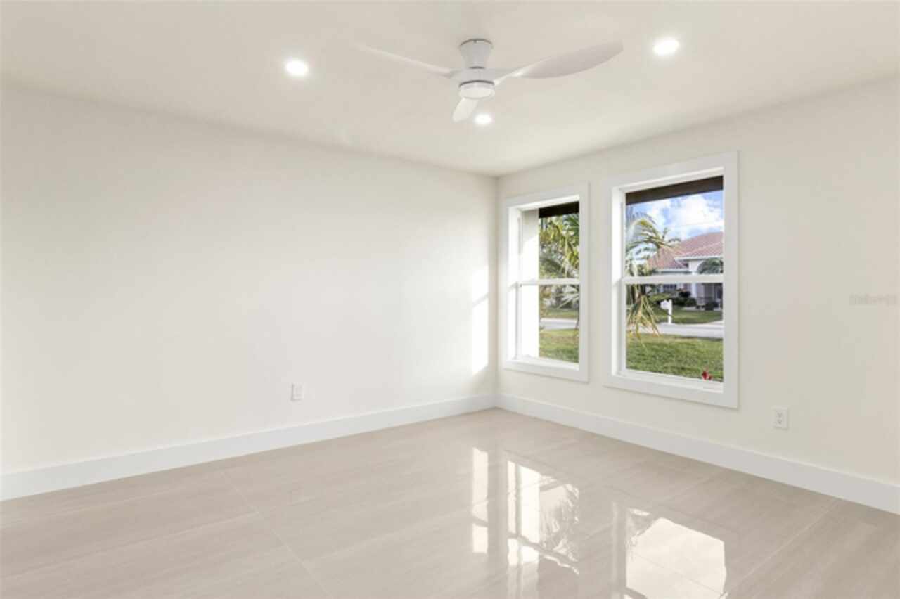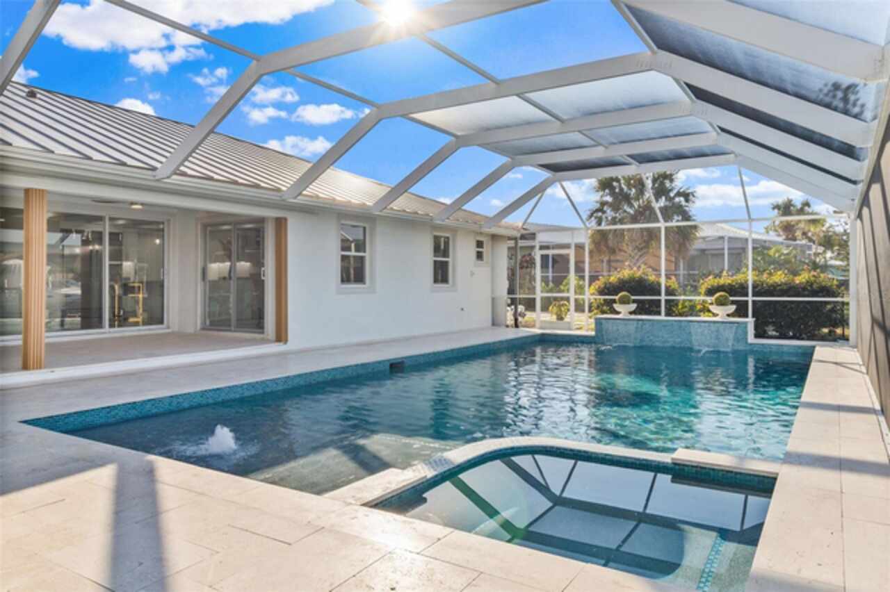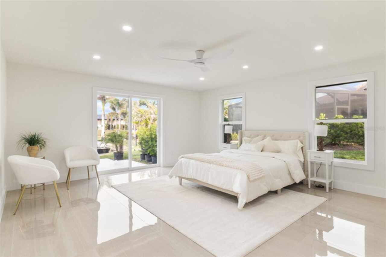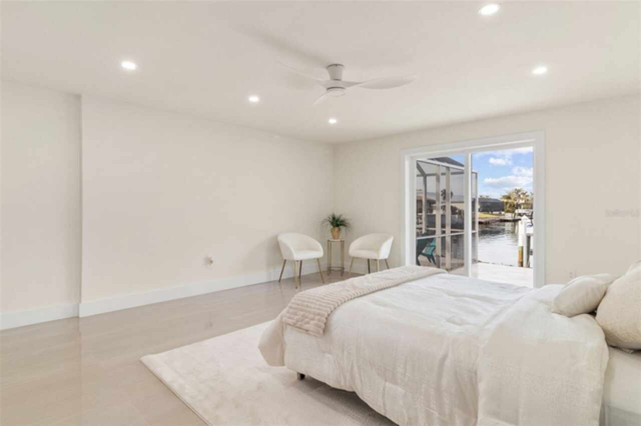 One or more photo(s) has been virtually staged. Priced To Sell, Enjoy Florida's luxury living in Punta Gorda Isles with this breathtaking 4-bedroom, 3.5-bathroom Resort-Style WATERFRONT POOL HOME with Direct Sailboat access, and DOCK. This beautifully updated Vacation or Primary Home offers almost 2, 800 sqft of meticulously designed living space with modern amenities, including a new metal roof , architecturally designed outdoor spaces, and more. As you enter, you are greeted by an abundance of natural light streaming through the new impact windows and doors, which enhance the expansive, open-concept layout. At the heart of the home is the chef-inspired custom Gourmet Kitchen, that features stainless steel appliances, including a large 60-inch custom refrigerator and freezer, sleek cabinetry, and a stunning quartz waterfall island that is ideal for both everyday living and entertaining. The Gourmet Kitchen flows seamlessly into a spacious living and dining room that overlooks the beautiful water. THE HOME FEATURES TWO EXPANSIVE MASTER SUITES, each with its own private walk-in closet and spa-inspired ensuite, offering ultimate relaxation. For those seeking a quiet retreat or dedicated workspace, this home has a private den/office that is perfect for working remotely, reading, or simply enjoying some peaceful downtime. As you step outside to your very own Resort-Style Oasis surrounded by lush landscaping with two mature mango trees and a tangerine tree, the large screen enclosed lanai is perfect for outdoor dining, social gatherings and entertaining. You can either dive into the almost 10ft deep large pool, relax in the spa, cook dinner in the outdoor kitchen, or play a round of MINI GOLF IN YOUR OWN BACKYARD. With your own private dock just steps away, enjoy boating, fishing, or simply relaxing by the water, all while soaking in Florida’s warm year-round sun and viewing vibrant sunsets. This beautiful home also includes two additional bedrooms, a two-car garage, laundry room with a new stackable washer and dryer and lots of storage space throughout. Located close to shopping, great restaurants, and beautiful beaches, this Resort-Style Home isn’t just a place to live, it’s the perfect place to embrace the best of the Florida Coastal Lifestyle.Be sure to ask for the FEATURES SHEET for additional information. Call today to schedule a private tour!