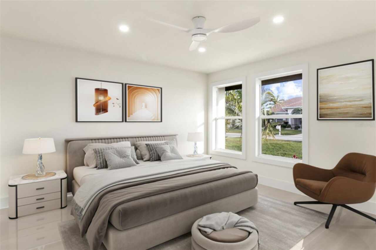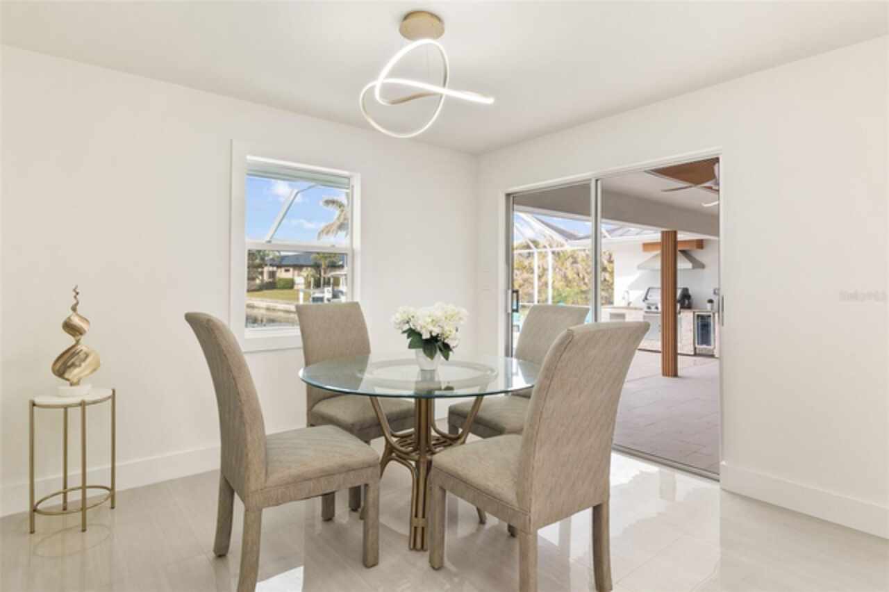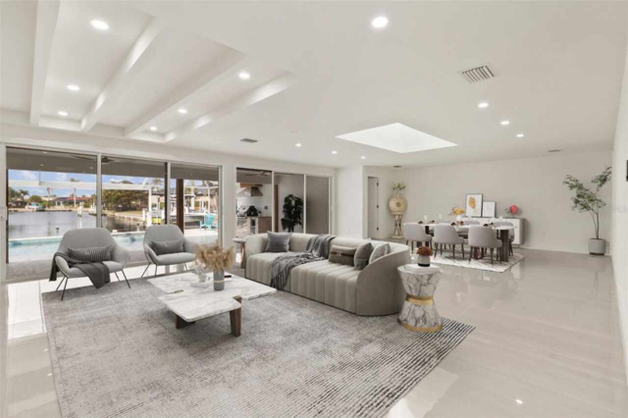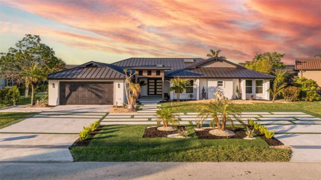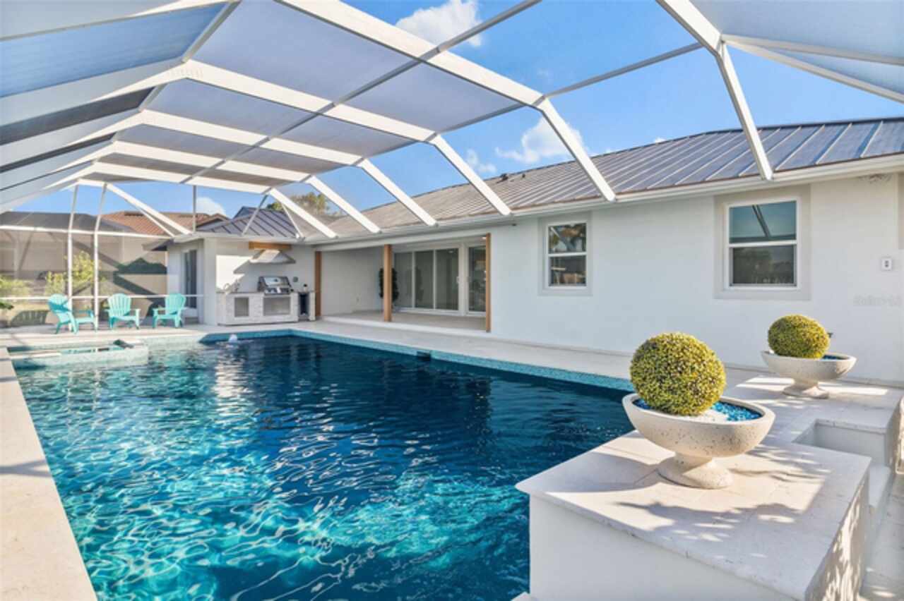 One or more photo(s) has been virtually staged. Priced To Sell, Enjoy Florida's luxury living in Punta Gorda Isles with this breathtaking 4-bedroom, 3.5-bathroom Resort-Style WATERFRONT POOL HOME with Direct Sailboat access, and DOCK. This beautifully updated Vacation or Primary Home offers almost 2, 800 sqft of meticulously designed living space with modern amenities, including a new metal roof , architecturally designed outdoor spaces, and more. As you enter, you are greeted by an abundance of natural light streaming through the new impact windows and doors, which enhance the expansive, open-concept layout. At the heart of the home is the chef-inspired custom Gourmet Kitchen, that features stainless steel appliances, including a large 60-inch custom refrigerator and freezer, sleek cabinetry, and a stunning quartz waterfall island that is ideal for both everyday living and entertaining. The Gourmet Kitchen flows seamlessly into a spacious living and dining room that overlooks the beautiful water. THE HOME FEATURES TWO EXPANSIVE MASTER SUITES, each with its own private walk-in closet and spa-inspired ensuite, offering ultimate relaxation. For those seeking a quiet retreat or dedicated workspace, this home has a private den/office that is perfect for working remotely, reading, or simply enjoying some peaceful downtime. As you step outside to your very own Resort-Style Oasis surrounded by lush landscaping with two mature mango trees and a tangerine tree, the large screen enclosed lanai is perfect for outdoor dining, social gatherings and entertaining. You can either dive into the almost 10ft deep large pool, relax in the spa, cook dinner in the outdoor kitchen, or play a round of MINI GOLF IN YOUR OWN BACKYARD. With your own private dock just steps away, enjoy boating, fishing, or simply relaxing by the water, all while soaking in Florida’s warm year-round sun and viewing vibrant sunsets. This beautiful home also includes two additional bedrooms, a two-car garage, laundry room with a new stackable washer and dryer and lots of storage space throughout. Located close to shopping, great restaurants, and beautiful beaches, this Resort-Style Home isn’t just a place to live, it’s the perfect place to embrace the best of the Florida Coastal Lifestyle.Be sure to ask for the FEATURES SHEET for additional information. Call today to schedule a private tour!