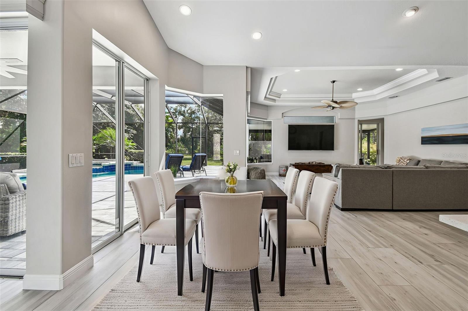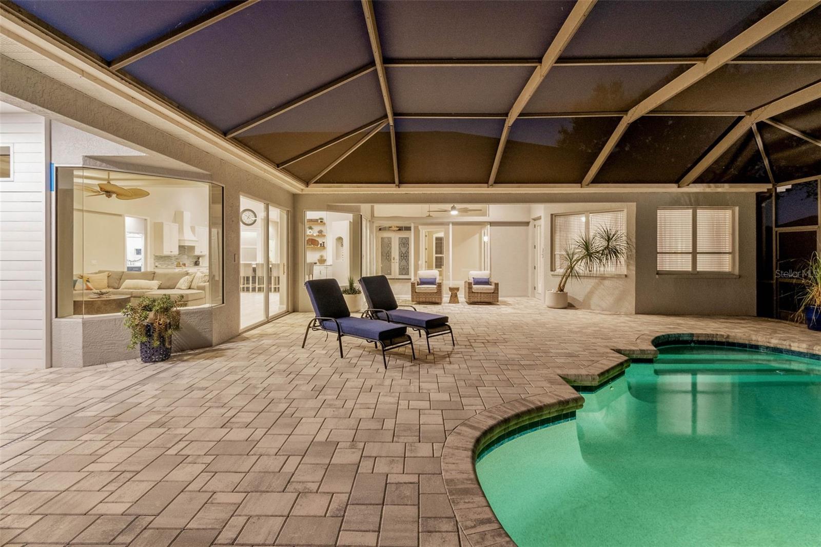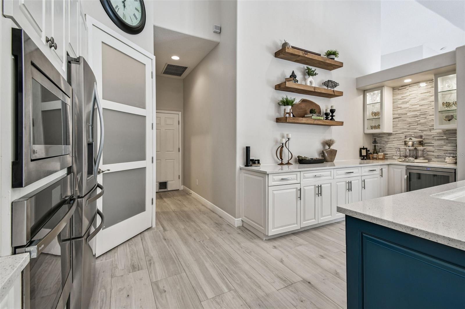 One or more photo(s) has been virtually staged. **A Modern Sanctuary in River Wilderness** This is the one you have been waiting for...Welcome to 2354 Little Country Road, where modern sophistication meets timeless Florida serenity. Tucked away on nearly half an acre of private preserve and shimmering water views, this beautifully remodeled 3–4 bedroom, 3 bath home offers privacy, peace, and effortless luxury within the exclusive, gated community of River Wilderness Golf & Country Club. Inside, you’ll immediately sense the light and openness — 16-foot ceilings, double tray details, and fully retractable glass doors that create a seamless indoor-outdoor flow. The expansive kitchen was completely updated with a grand quartz island seating six, sleek “smart” appliances, including a new cooktop, microwave, remote-start oven, dishwasher, and wine cooler. A large dining area — currently used as a flex space or office — can efficiently serve as a formal dining room, craft room, or 4th bedroom. Throughout the home, large-format neutral tile flooring adds warmth and sophistication. The primary suite, remodeled in (2021), is a true retreat featuring a spa-inspired bathroom with new vanities, a frameless glass shower with Bluetooth sound, a deep free-standing soaking tub with waterfall filler, and luxury finishes. The second bedroom also features an ensuite bath updated in (2022) with new tiles and a frameless shower door, while the third bath, updated in (2023), includes large-format glass tile, modern lighting, and a deep-soaking tub. The living room opens completely to the lanai — perfect for enjoying Florida’s indoor/outdoor lifestyle. Step outside to your private saltwater pool and spa, surrounded by new pavers and lush professional landscaping (2025). The covered lanai was expanded by 500 sq. ft. and enhanced with an outdoor kitchen, updated irrigation system, and new professional lighting, ideal for hosting gatherings or relaxing in total privacy with no rear neighbors. Additional updates include a brand-new roof (2023), Pentair salt cell and power unit (2023), and epoxy-finished 2½-car garage with ample room for a golf cart. Two newer A/C (2025) and (2019) ensures year-round comfort, while a fenced dog run provides a safe place for your pets to play. Every upgrade — from the flooring to the fixtures — was designed for beauty, function, and longevity. Beyond the home, River Wilderness Golf & Country Club offers an unmatched lifestyle. Enjoy an 18-hole championship golf course, a 27, 000 sq. ft. clubhouse with dining, events, and a pro shop, a fitness center, tennis and pickleball courts, bocce ball, and a junior Olympic-sized pool complex. Country Club fee is optional --Residents also have access to storage for boat and/or RV and a community boat ramp with river access, walking trails, and gated security — all set within 1, 500 acres of pristine natural beauty. This is more than a home; it’s a modern sanctuary designed for those who value peace, presence, and quiet refinement — in one of the most private, scenic water-view settings in River Wilderness.