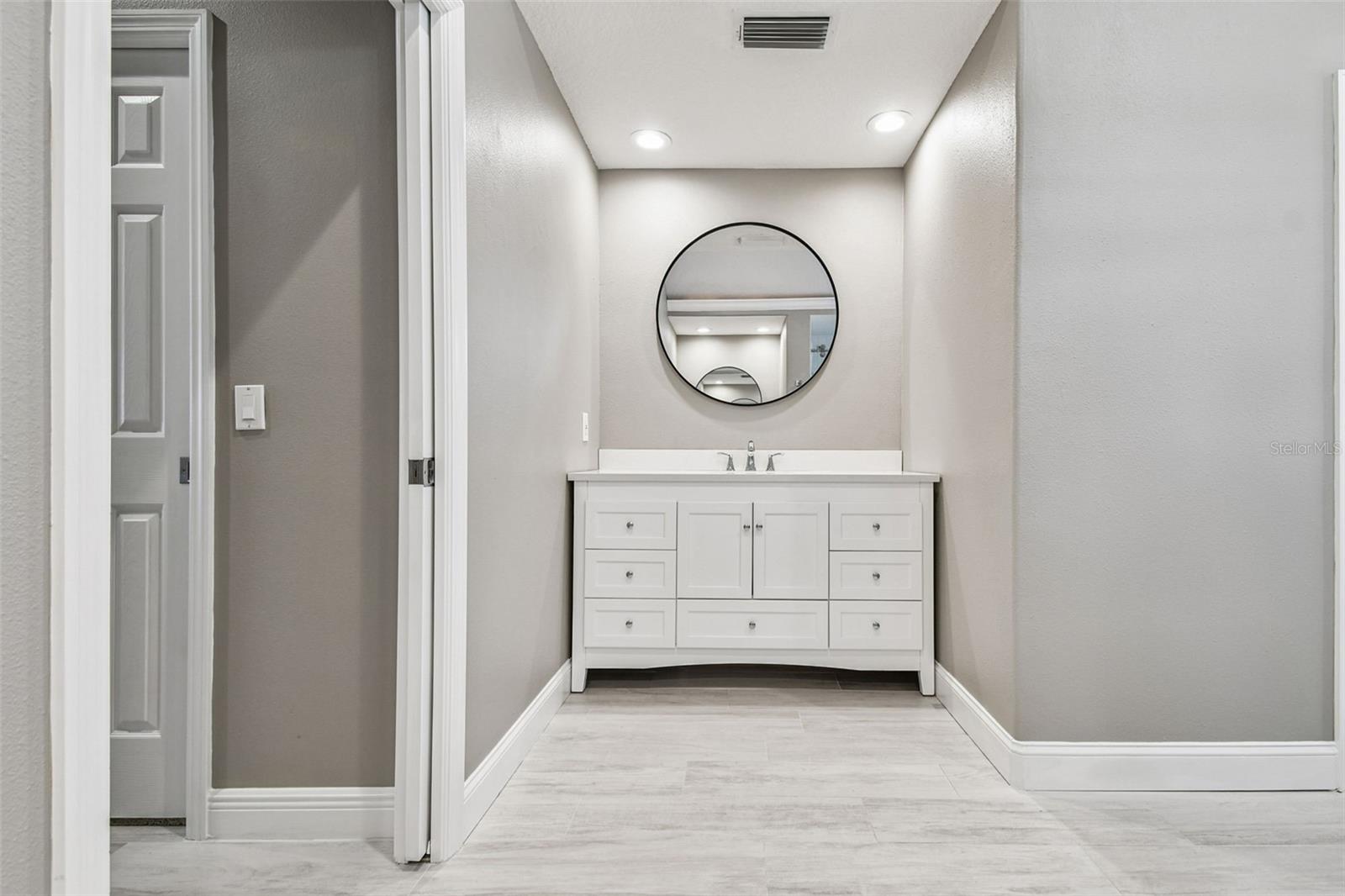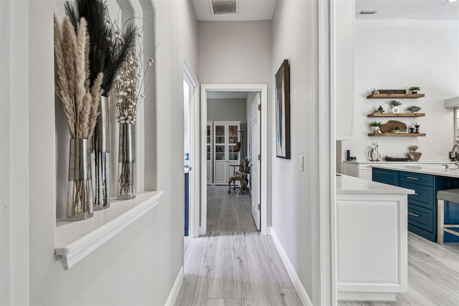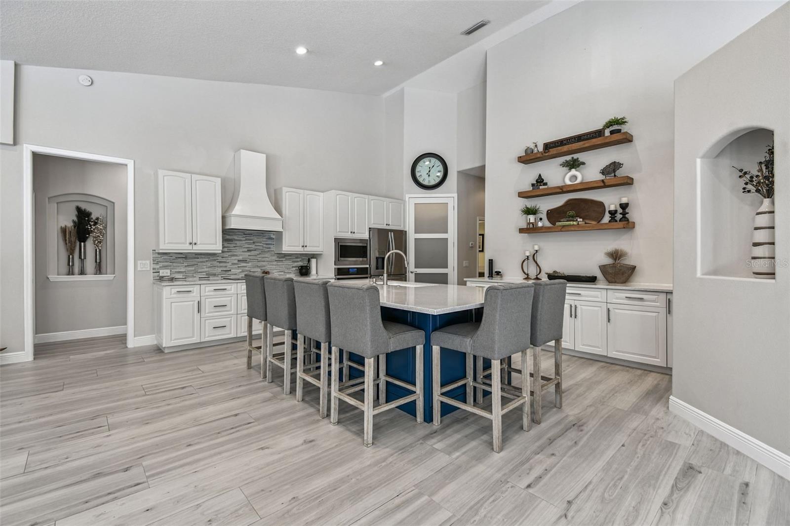 One or more photo(s) has been virtually staged. **A Modern Sanctuary in River Wilderness** This is the one you have been waiting for...Welcome to 2354 Little Country Road, where modern sophistication meets timeless Florida serenity. Tucked away on nearly half an acre of private preserve and shimmering water views, this beautifully remodeled 3–4 bedroom, 3 bath home offers privacy, peace, and effortless luxury within the exclusive, gated community of River Wilderness Golf & Country Club. Inside, you’ll immediately sense the light and openness — 16-foot ceilings, double tray details, and fully retractable glass doors that create a seamless indoor-outdoor flow. The expansive kitchen was completely updated with a grand quartz island seating six, sleek “smart” appliances, including a new cooktop, microwave, remote-start oven, dishwasher, and wine cooler. A large dining area — currently used as a flex space or office — can efficiently serve as a formal dining room, craft room, or 4th bedroom. Throughout the home, large-format neutral tile flooring adds warmth and sophistication. The primary suite, remodeled in (2021), is a true retreat featuring a spa-inspired bathroom with new vanities, a frameless glass shower with Bluetooth sound, a deep free-standing soaking tub with waterfall filler, and luxury finishes. The second bedroom also features an ensuite bath updated in (2022) with new tiles and a frameless shower door, while the third bath, updated in (2023), includes large-format glass tile, modern lighting, and a deep-soaking tub. The living room opens completely to the lanai — perfect for enjoying Florida’s indoor/outdoor lifestyle. Step outside to your private saltwater pool and spa, surrounded by new pavers and lush professional landscaping (2025). The covered lanai was expanded by 500 sq. ft. and enhanced with an outdoor kitchen, updated irrigation system, and new professional lighting, ideal for hosting gatherings or relaxing in total privacy with no rear neighbors. Additional updates include a brand-new roof (2023), Pentair salt cell and power unit (2023), and epoxy-finished 2½-car garage with ample room for a golf cart. Two newer A/C (2025) and (2019) ensures year-round comfort, while a fenced dog run provides a safe place for your pets to play. Every upgrade — from the flooring to the fixtures — was designed for beauty, function, and longevity. Beyond the home, River Wilderness Golf & Country Club offers an unmatched lifestyle. Enjoy an 18-hole championship golf course, a 27, 000 sq. ft. clubhouse with dining, events, and a pro shop, a fitness center, tennis and pickleball courts, bocce ball, and a junior Olympic-sized pool complex. Country Club fee is optional --Residents also have access to storage for boat and/or RV and a community boat ramp with river access, walking trails, and gated security — all set within 1, 500 acres of pristine natural beauty. This is more than a home; it’s a modern sanctuary designed for those who value peace, presence, and quiet refinement — in one of the most private, scenic water-view settings in River Wilderness.