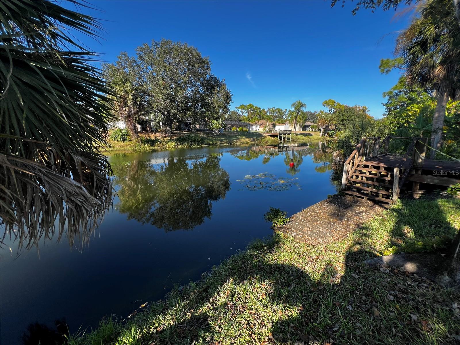 There is a pump and irrigation system that uses the water from the canal for lawn irrigation.