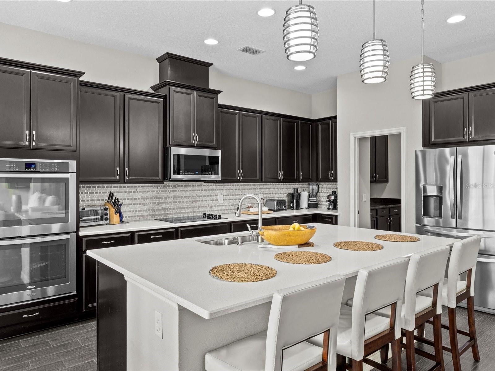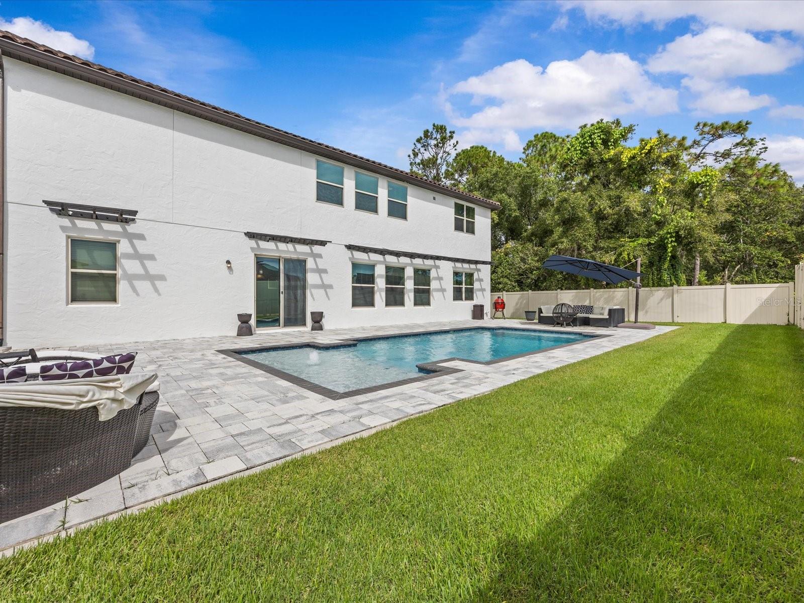 Under contract-accepting backup offers. Welcome to 2357 Bellefield Cove, a true showcase of elegance and sophistication nestled in the heart of Oviedo, Florida. Built in 2016 by Meritage Homes, this Del Rio II Elevation D model spans an impressive 5, 131 square feet and offers 7 bedrooms plus a studio/entertainment room, 5 bathrooms, and a stunning custom saltwater pool added in 2022. Perfectly situated on a premium corner lot with peaceful conservation views along the front and side, this home combines modern design, superior craftsmanship, and luxurious comfort. The curb appeal immediately captivates — with a freshly repainted exterior (October 2025) and professionally designed landscaping, this residence exudes timeless sophistication. Step inside through the grand front door and you’re greeted by a soaring two-story foyer that opens into formal living and dining rooms, both adorned with crown molding, elegant finishes, and an abundance of natural light. Every detail of this home was designed to impress and invite. At the heart of the home lies the gourmet kitchen, complete with a large center island, quartz countertops, stainless-steel appliances, a butler’s pantry with a spacious storage closet, and an adjoining café area overlooking the backyard. The kitchen flows seamlessly into the open-concept family room, creating the perfect space for entertaining guests, enjoying family gatherings, or simply relaxing at home. This home features two luxurious primary suites, offering exceptional flexibility for multi-generational living. The downstairs suite includes private access to its own one-car garage and a spa-style bath with dual vanities, soaking tub, and glass-enclosed shower. Upstairs, the second primary suite provides a tranquil retreat with a generous walk-in closet and a luxurious bath featuring dual sinks, a soaking tub, and a frameless glass shower. The second level also offers five additional bedrooms, multiple full baths, a large game room, and a dedicated media room currently configured as an in-home studio — easily repurposed into a home theater or gym to suit your lifestyle. Every space is thoughtfully designed to offer comfort, versatility, and functionality. Step outside to your custom-designed saltwater pool with a Miami Blue quartz finish — the centerpiece of a spacious open-air lanai and patio area, perfect for outdoor entertaining or unwinding beneath the Florida sky. Surrounded by lush greenery and conservation views, this private oasis delivers the ideal blend of tranquility and luxury. Pride of ownership shines through with key updates and enhancements: both air-conditioning units were replaced in 2021, a new cooktop was installed in 2022, and both heat-pump evaporator coils were replaced in 2023. The home also includes a transferable American Home Shield warranty, providing added peace of mind for the next owner. Combined with Meritage’s renowned energy-efficient construction and smart-home features, this home is the complete package — both beautiful and built to last. Ideally located within minutes of top-rated Seminole County schools, Oviedo on the Park, UCF, and major highways, this home offers luxury living with unbeatable convenience. Elegant, expansive, and designed for those who value both style and substance — 2357 Bellefield Cove is more than just a home; it’s a lifestyle waiting to be experienced.
