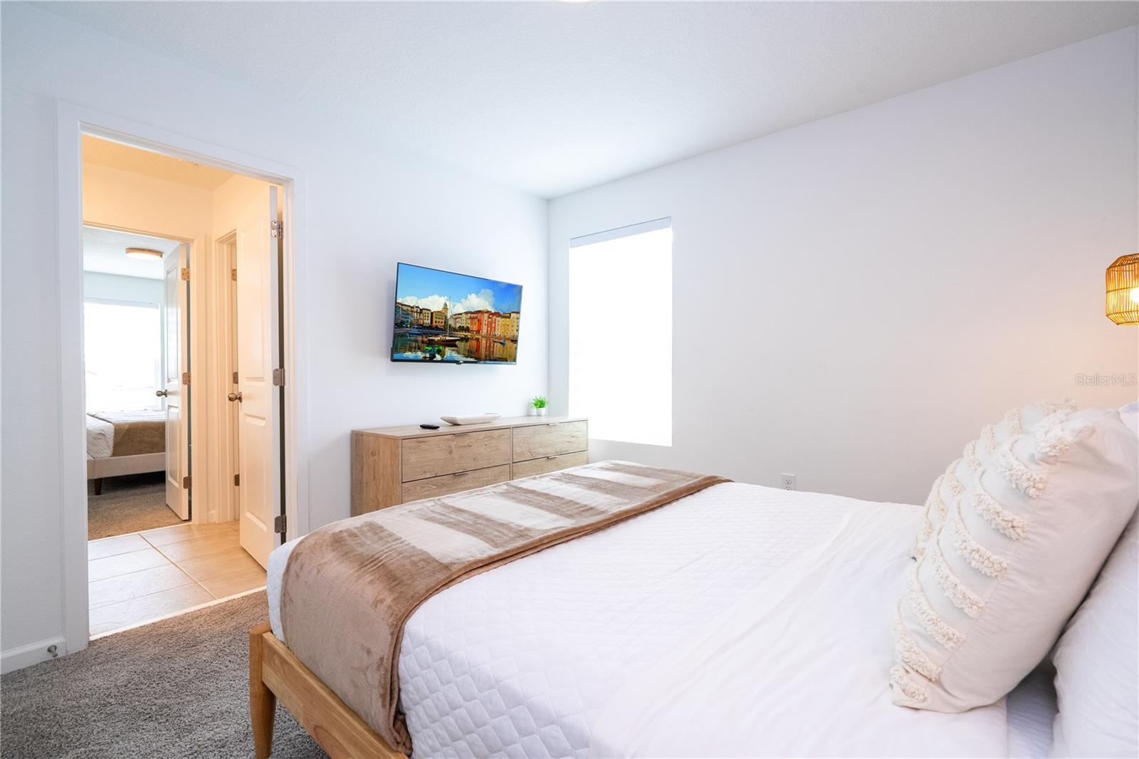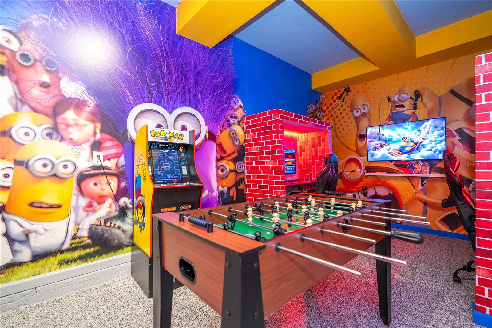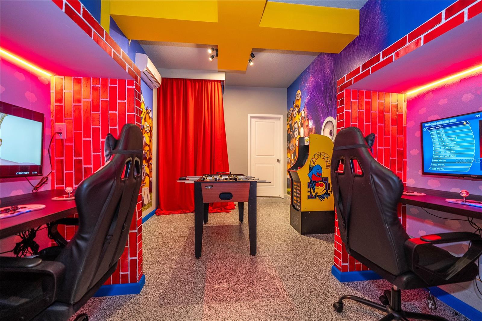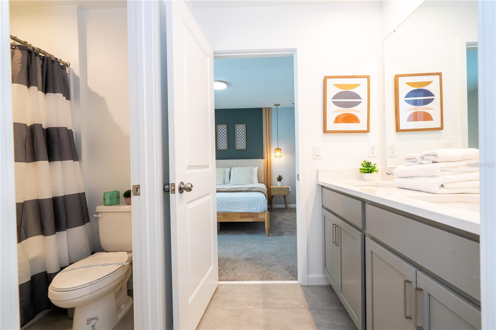 Welcome to this stylishly decorated home located at 2358 Salty Winds Way in the sought-after Solara Resort community of Kissimmee. This spacious residence offers six bedrooms and four and a half bathrooms, thoughtfully designed with both comfort and entertainment in mind. The open layout features a modern kitchen with granite countertops, stainless steel appliances, and a pantry, flowing seamlessly into the gathering room and breakfast nook. The first-floor owner’s suite provides a private retreat with a double vanity and large walk-in closet. Upstairs, a versatile loft, a private cinema, and a game room create additional space for fun and relaxation. The home also showcases beautifully themed childrens bedroom with Disney-inspired décor, alongside elegant and stylish design throughout. Outdoors, a covered lanai and private pool offer the perfect setting for entertaining or unwinding. Located in the gated Solara Resort, residents and guests enjoy access to resort-style amenities including a clubhouse, fitness center, and recreational facilities, all just minutes from Disney and Orlando’s top attractions.