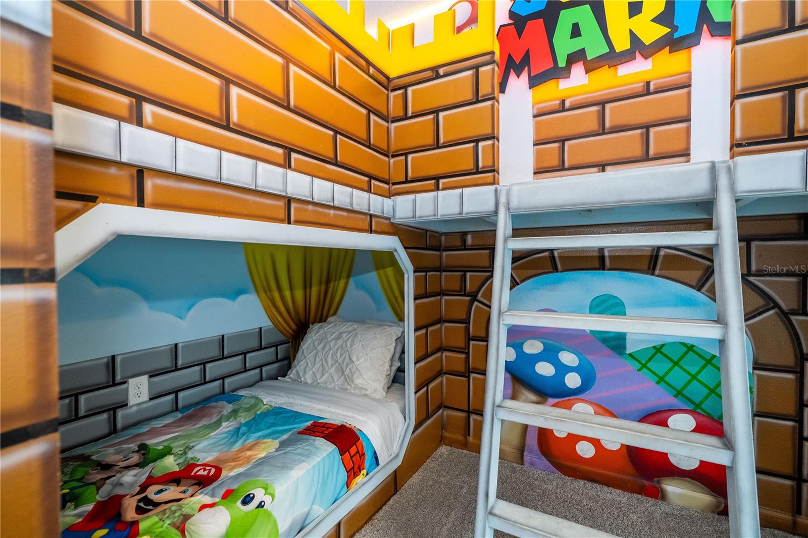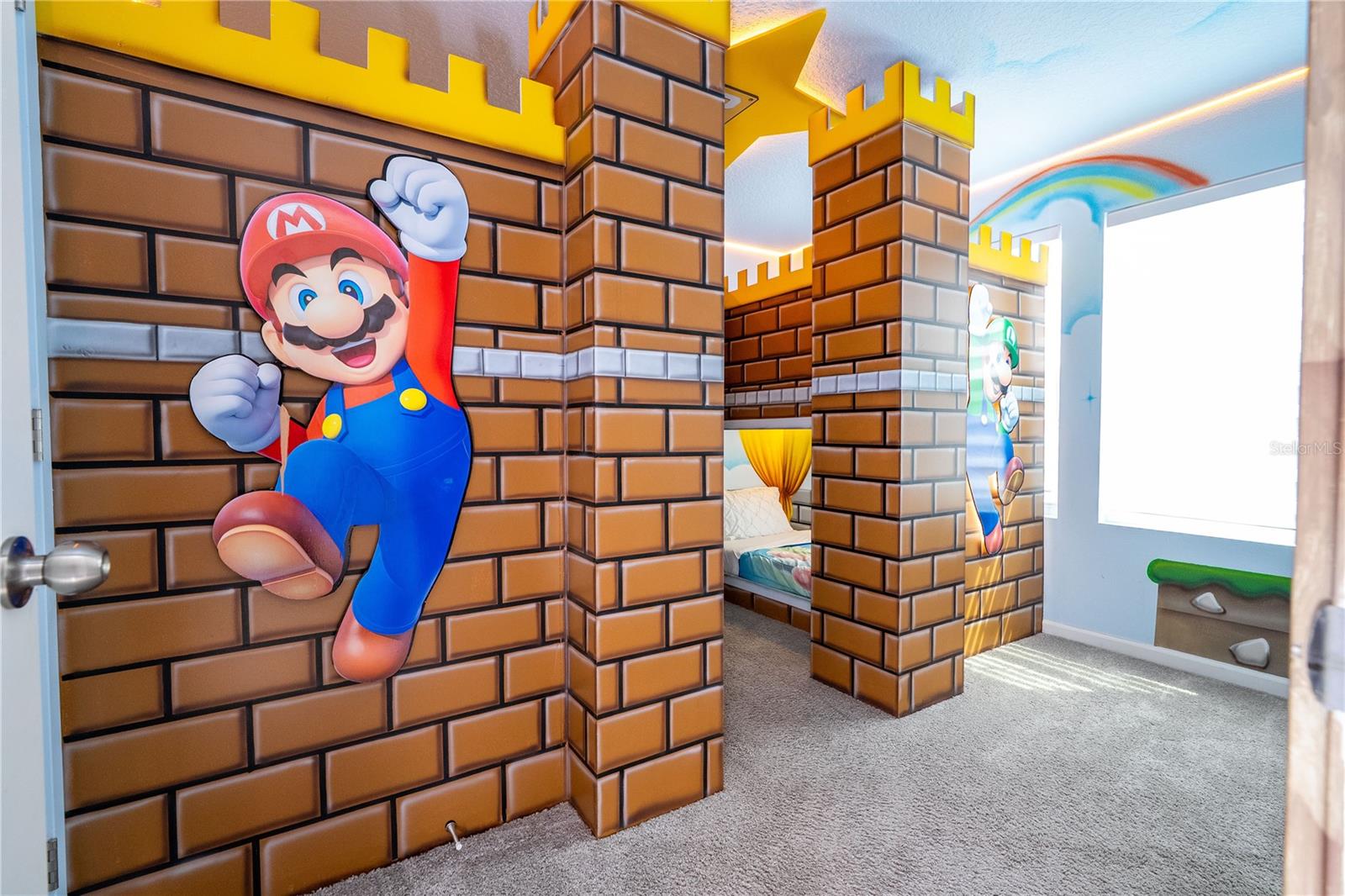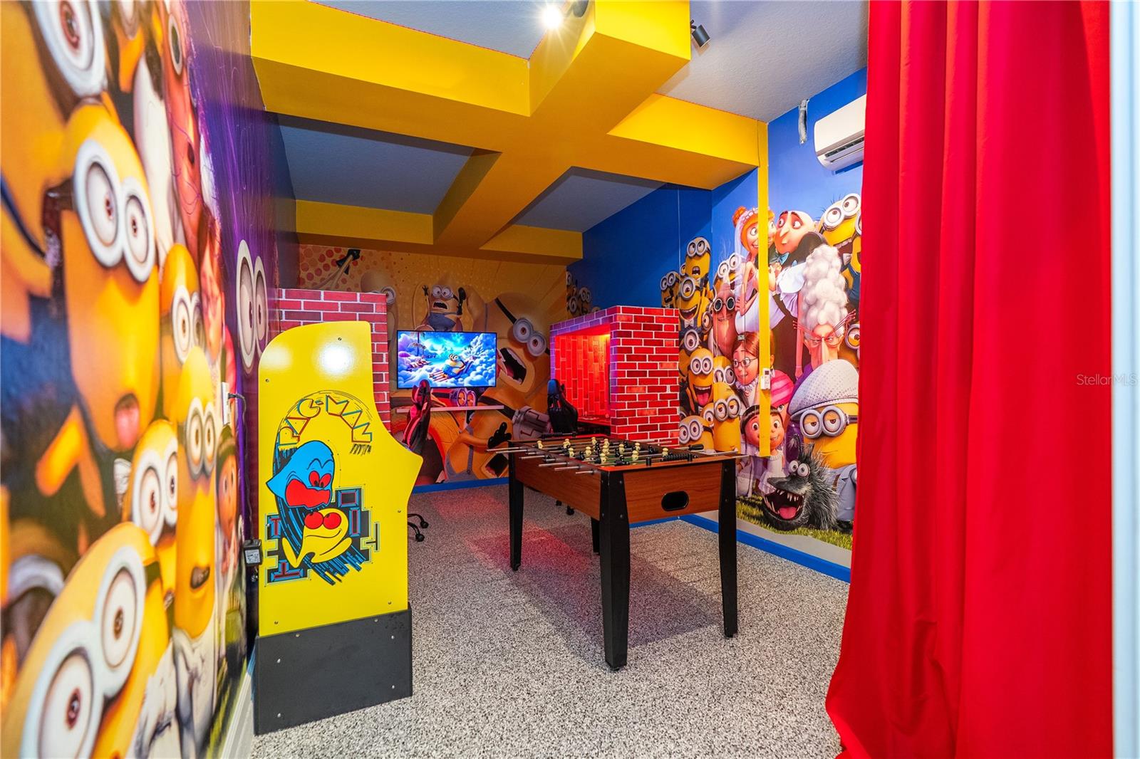 Welcome to this stylishly decorated home located at 2358 Salty Winds Way in the sought-after Solara Resort community of Kissimmee. This spacious residence offers six bedrooms and four and a half bathrooms, thoughtfully designed with both comfort and entertainment in mind. The open layout features a modern kitchen with granite countertops, stainless steel appliances, and a pantry, flowing seamlessly into the gathering room and breakfast nook. The first-floor owner’s suite provides a private retreat with a double vanity and large walk-in closet. Upstairs, a versatile loft, a private cinema, and a game room create additional space for fun and relaxation. The home also showcases beautifully themed childrens bedroom with Disney-inspired décor, alongside elegant and stylish design throughout. Outdoors, a covered lanai and private pool offer the perfect setting for entertaining or unwinding. Located in the gated Solara Resort, residents and guests enjoy access to resort-style amenities including a clubhouse, fitness center, and recreational facilities, all just minutes from Disney and Orlando’s top attractions.