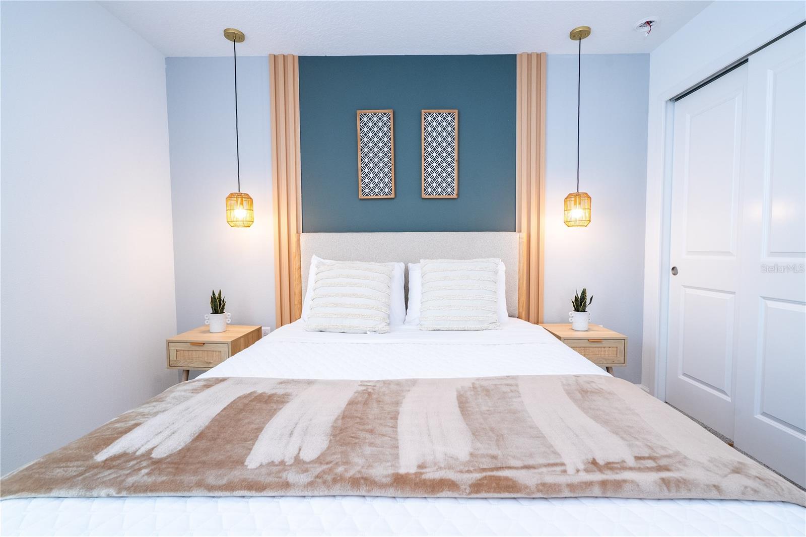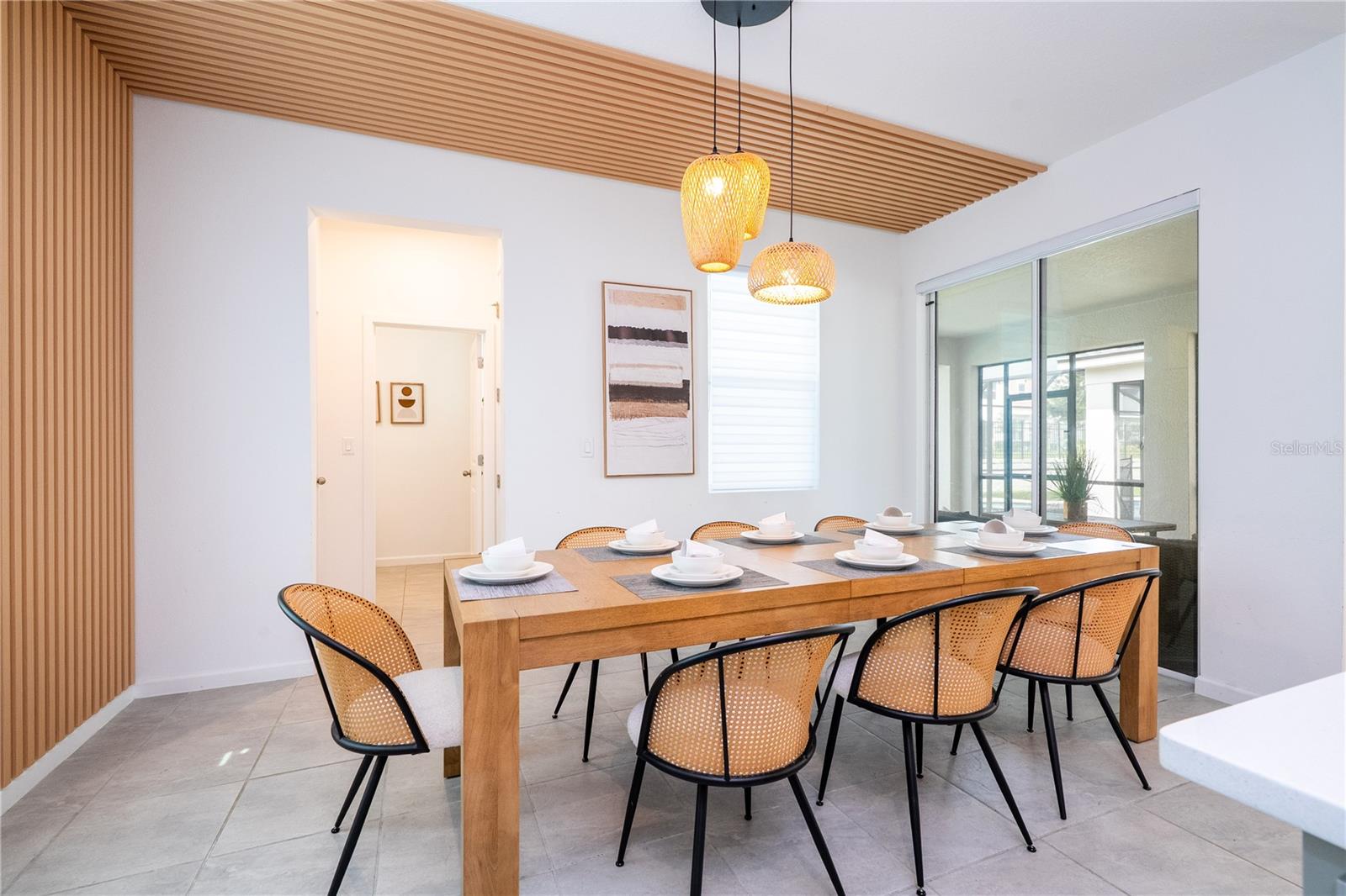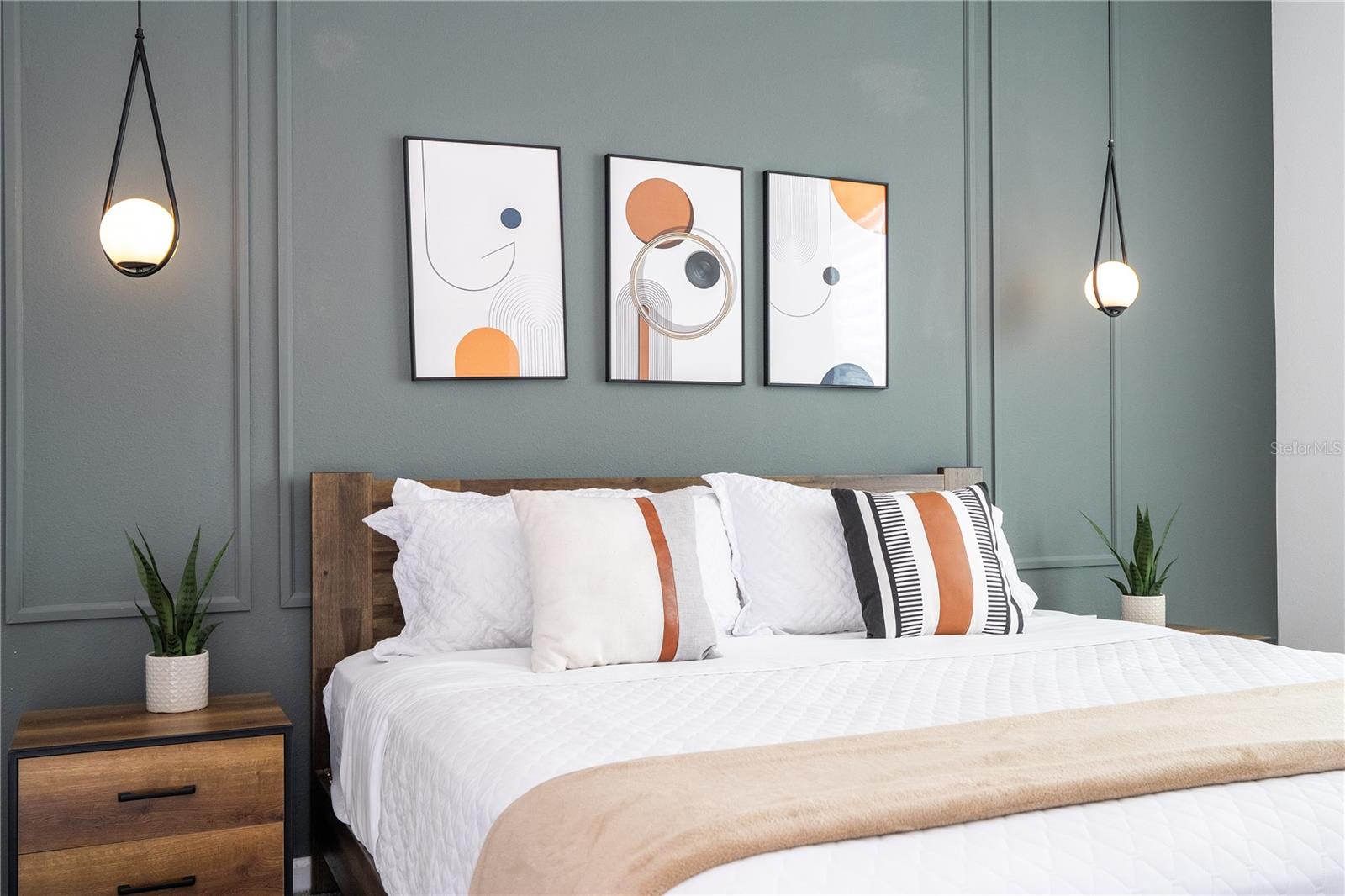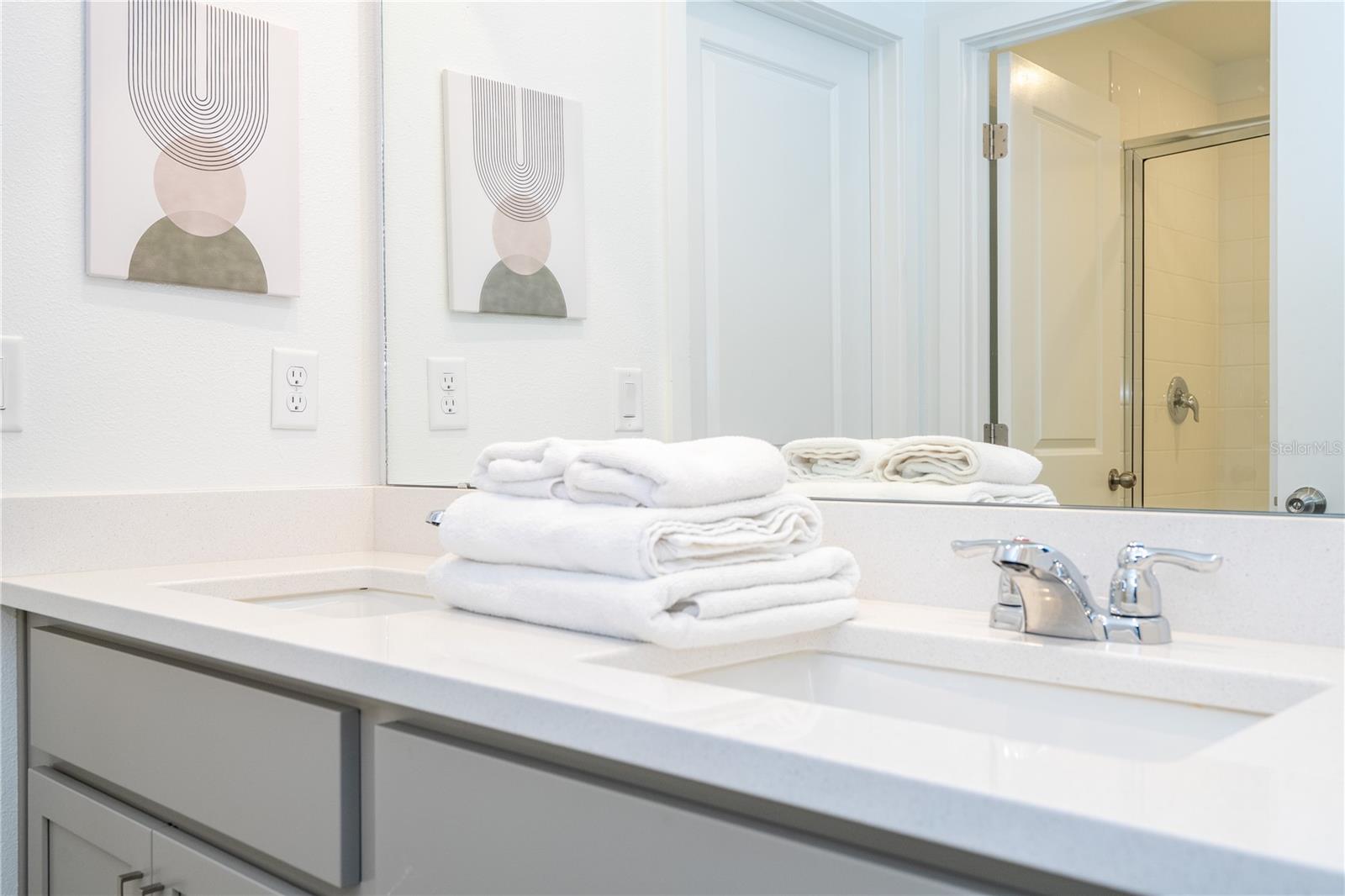 Welcome to this stylishly decorated home located at 2358 Salty Winds Way in the sought-after Solara Resort community of Kissimmee. This spacious residence offers six bedrooms and four and a half bathrooms, thoughtfully designed with both comfort and entertainment in mind. The open layout features a modern kitchen with granite countertops, stainless steel appliances, and a pantry, flowing seamlessly into the gathering room and breakfast nook. The first-floor owner’s suite provides a private retreat with a double vanity and large walk-in closet. Upstairs, a versatile loft, a private cinema, and a game room create additional space for fun and relaxation. The home also showcases beautifully themed childrens bedroom with Disney-inspired décor, alongside elegant and stylish design throughout. Outdoors, a covered lanai and private pool offer the perfect setting for entertaining or unwinding. Located in the gated Solara Resort, residents and guests enjoy access to resort-style amenities including a clubhouse, fitness center, and recreational facilities, all just minutes from Disney and Orlando’s top attractions.