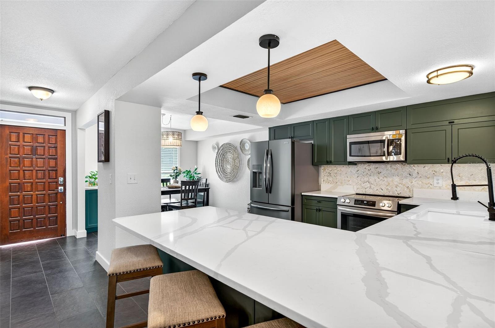 If you’ve been searching for an open floor plan with your own private pool, this is the one. The home features gorgeous tile flooring throughout and a brand-new kitchen complete with stylish green cabinetry, a modern backsplash, and an oversized pantry. You’ll also enjoy the convenience of an inside laundry room along with designer interior doors and upgraded hardware. In the Primary en-suite there is a walk-in shower and a Broan exhaust fan with a heater. Every detail in this home was well thought out for functionality and decoration. Step outside to a spacious yard showcasing a stunning pool with a tranquil water feature—perfect for relaxation or entertaining. Feel free to cozy up in the large screened in porch and read your favorite book. There’s also a brand-new shed offering plenty of room for yard tools and extra storage. An oversized two-car garage provides even more space for vehicles, hobbies, or additional storage needs. This home truly has it all—style, comfort, and functionality in an ideal location.