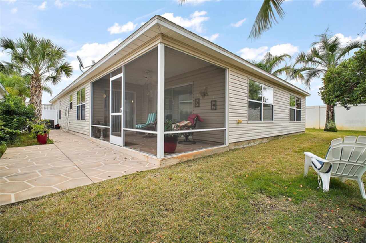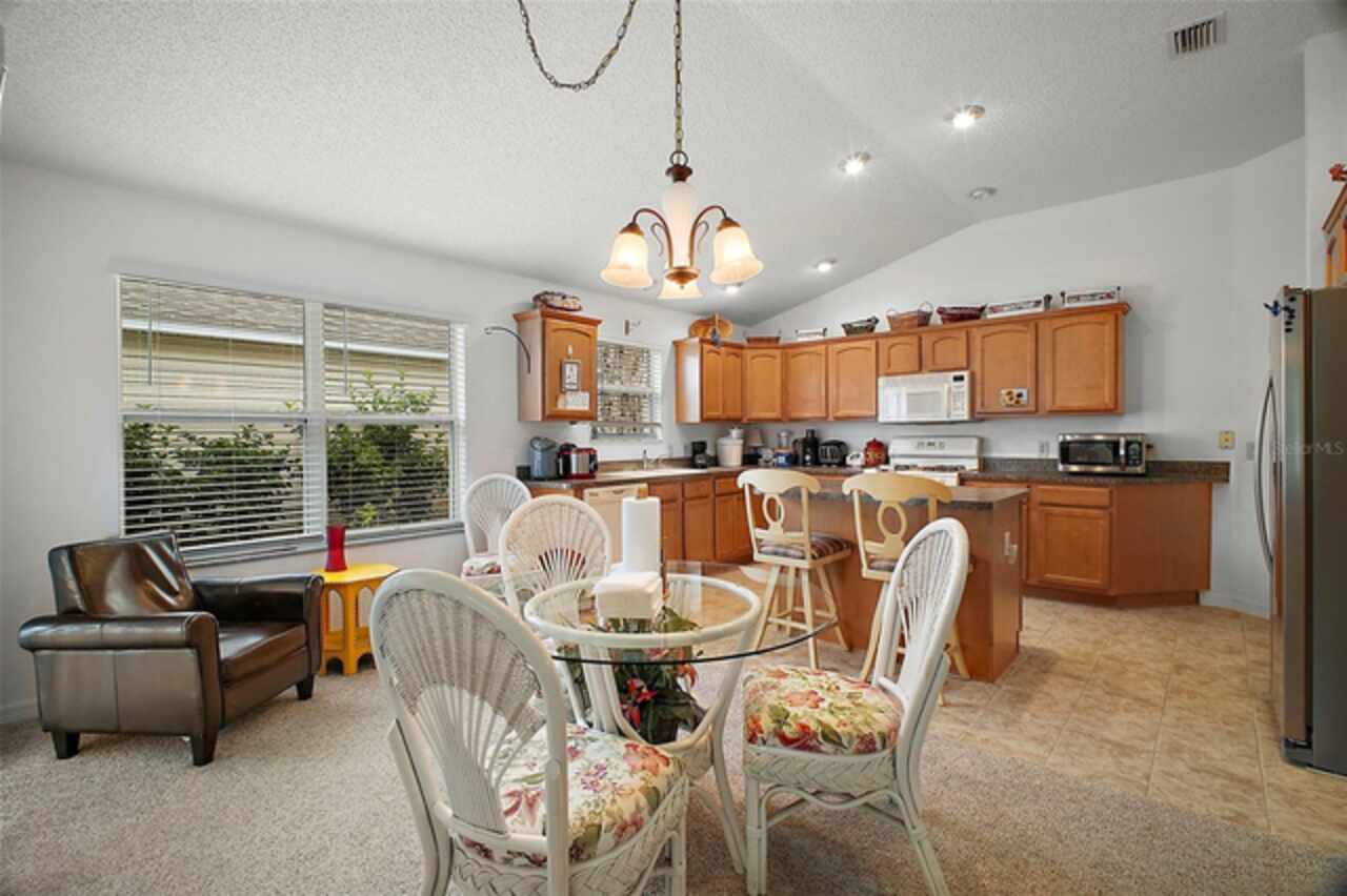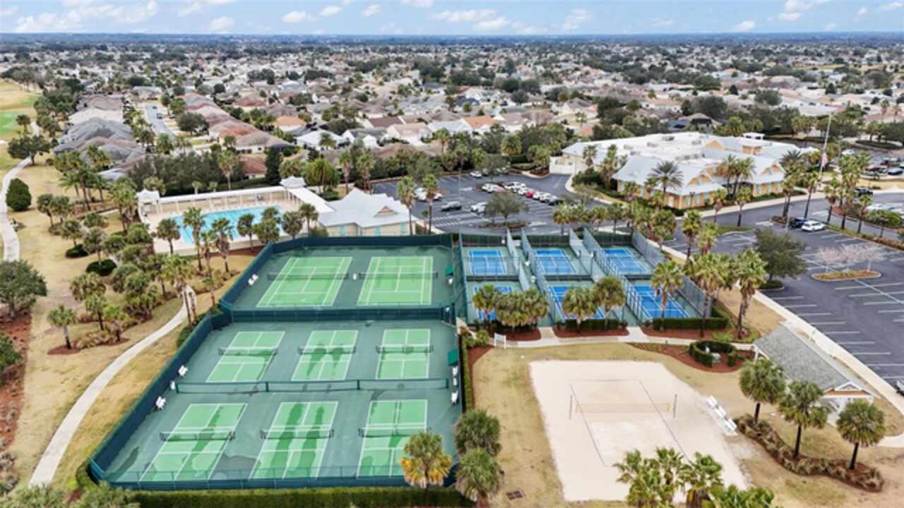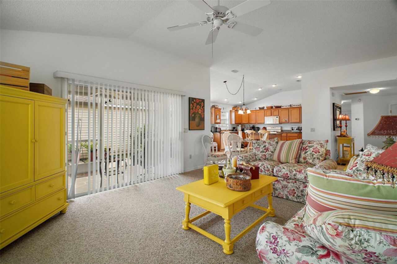 Under contract-accepting backup offers. Discover your dream home in this beautifully designed 3 bedroom, 2 bathroom residence, boasting an open and inviting floor plan that's perfect for modern living. Start your day at the charming breakfast bar, bathed in sunlight streaming through the cathedral ceilings that lend a spacious and airy feel to the home. Ceiling fans throughout ensure your comfort is a priority, gently circulating the breeze. The master bedroom is a true retreat, offering ample space and a luxurious ensuite complete with his and hers sinks for added convenience. Situated in a prime central location, this home puts you at the heart of it all. Hop in your golf cart and you're just a swift 10-minute ride away from the vibrant Lake Sumter Landing or the charming Brownwood area. Enjoy easy access to a host of recreational facilities, including Seabreeze Rec Center, Havana Country Club, Cane Garden Country Club, and Lake Miona Rec Center—there's no shortage of options for fun and leisure. Need to run some errands? Colony Shopping Center is just a short drive away, whether you're taking the car or the golf cart. And for peace of mind, the Emergency Room at Trailwinds is conveniently located nearby on 466A. Don't miss out on the chance to call this fantastic house your home. Schedule a viewing today and experience the perfect blend of comfort, style, and convenience! Bond Paid off!!