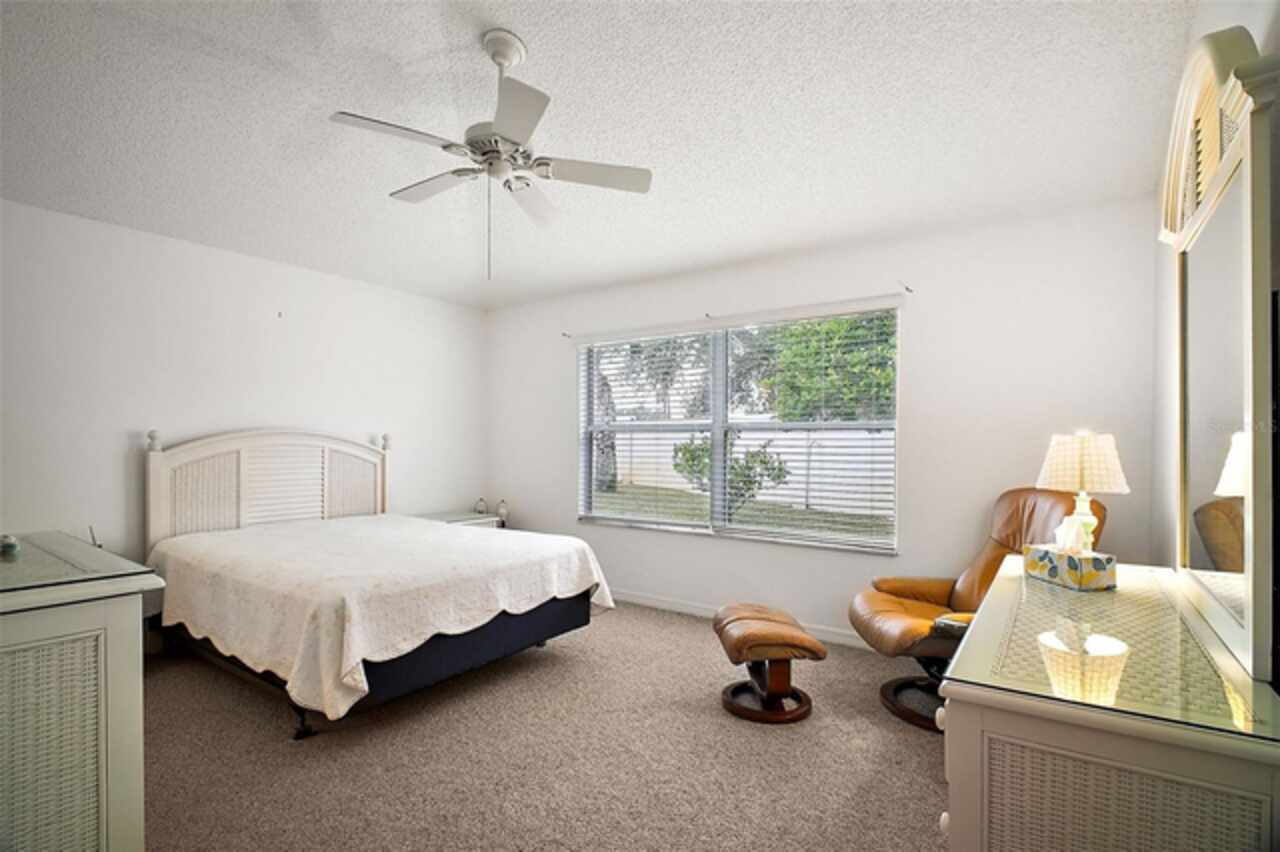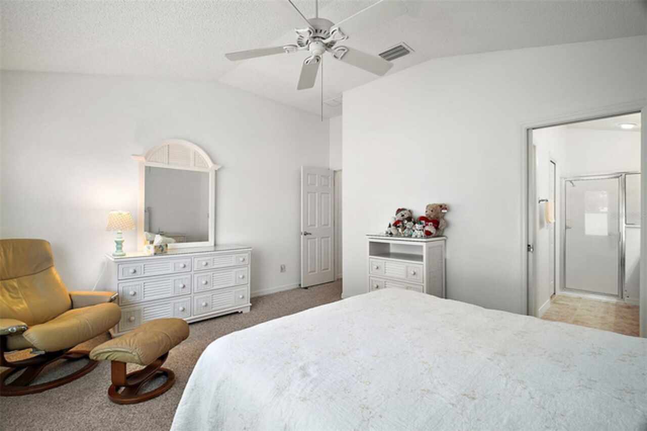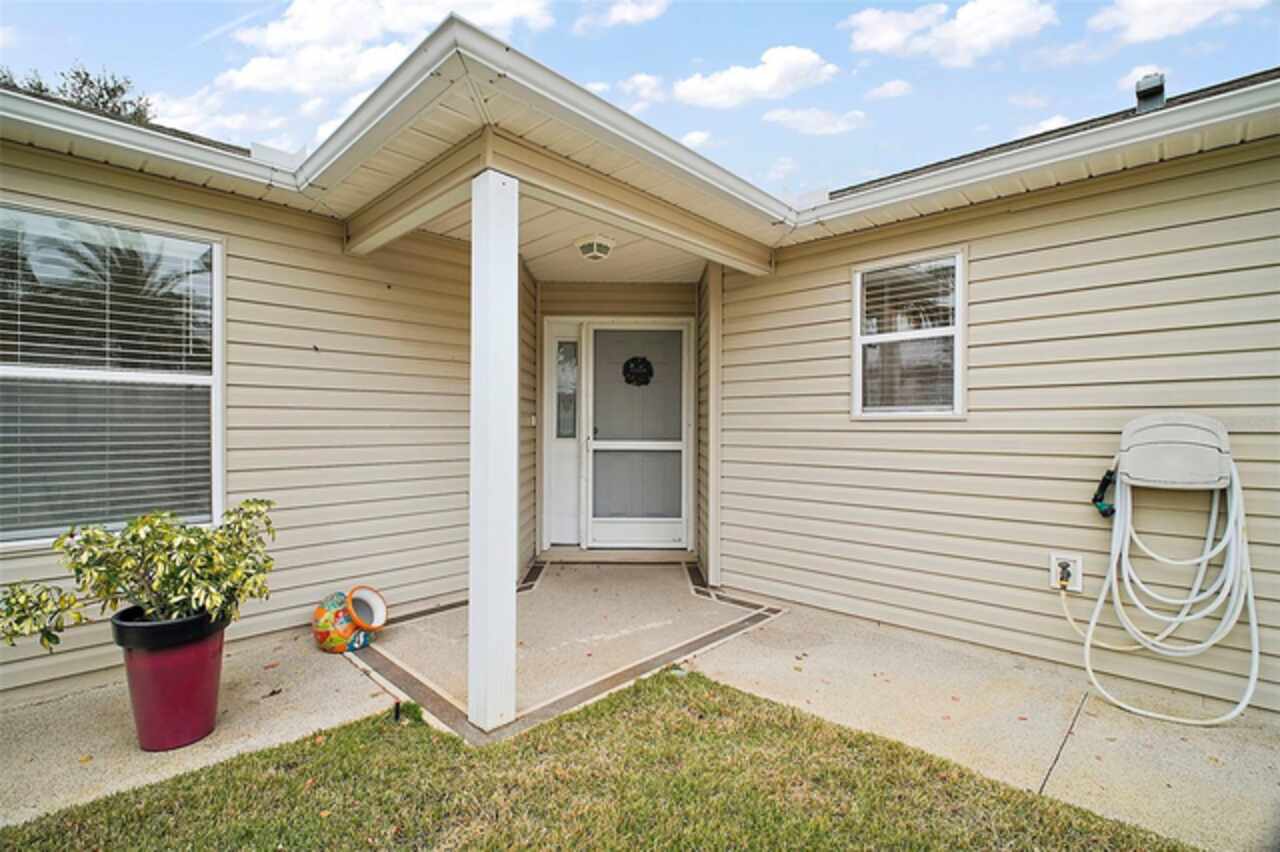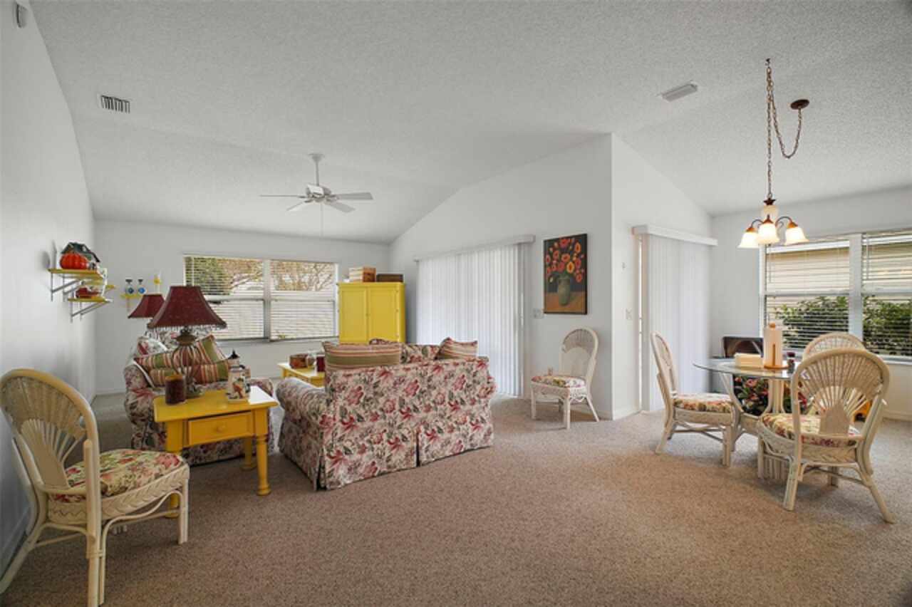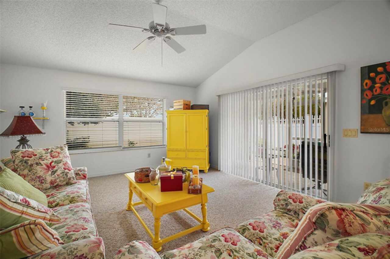 Under contract-accepting backup offers. Discover your dream home in this beautifully designed 3 bedroom, 2 bathroom residence, boasting an open and inviting floor plan that's perfect for modern living. Start your day at the charming breakfast bar, bathed in sunlight streaming through the cathedral ceilings that lend a spacious and airy feel to the home. Ceiling fans throughout ensure your comfort is a priority, gently circulating the breeze. The master bedroom is a true retreat, offering ample space and a luxurious ensuite complete with his and hers sinks for added convenience. Situated in a prime central location, this home puts you at the heart of it all. Hop in your golf cart and you're just a swift 10-minute ride away from the vibrant Lake Sumter Landing or the charming Brownwood area. Enjoy easy access to a host of recreational facilities, including Seabreeze Rec Center, Havana Country Club, Cane Garden Country Club, and Lake Miona Rec Center—there's no shortage of options for fun and leisure. Need to run some errands? Colony Shopping Center is just a short drive away, whether you're taking the car or the golf cart. And for peace of mind, the Emergency Room at Trailwinds is conveniently located nearby on 466A. Don't miss out on the chance to call this fantastic house your home. Schedule a viewing today and experience the perfect blend of comfort, style, and convenience! Bond Paid off!!