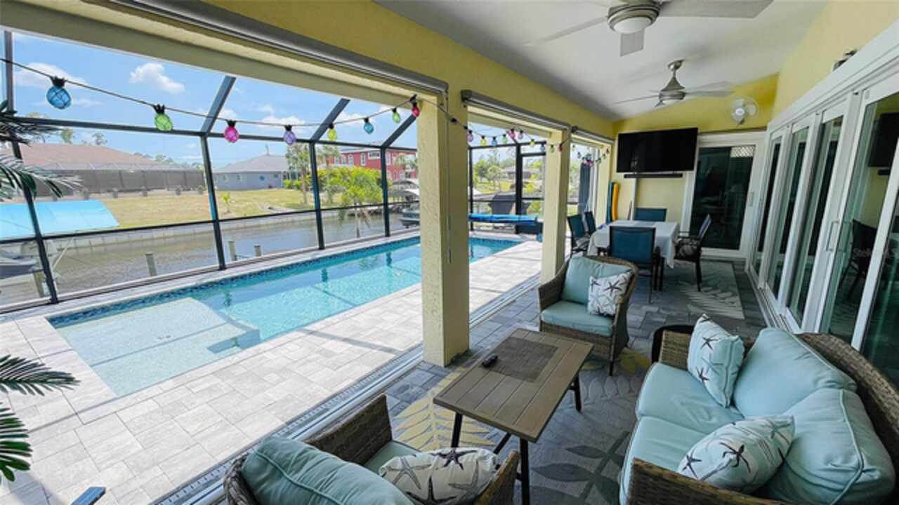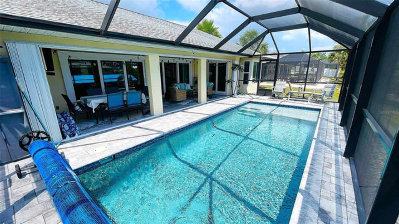 Under contract-accepting backup offers. Click The Virtual Tour Link and Discover Your Waterfront Dream Home at 2399 Bendway Dr, Port Charlotte! Imagine waking to the gentle ripple of the Auburn Waterway Canal, where your private slice of paradise awaits. This stunning 3-bedroom, 3-bathroom 2.5 Car-Garage Gulf-access masterpiece, nestled on a lush ¼-acre lot, beckons you to a life of luxury, adventure, and boundless serenity—no HOA or Deed Restrictions to hold you back. Being Sold Turn-Key! Fully furnished and flawlessly updated, this 2, 477 sq. ft. retreat is more than a home—it’s a lifestyle that whispers freedom and indulgence. Step through grand double doors into a world of elegance, where soaring ceilings and a cascade of glass sliders frame mesmerizing pool and canal views. The heart of this haven is a 2022-remodeled gourmet kitchen that will ignite your culinary passions—gleaming granite countertops, a sprawling island, custom cabinetry, and premium stainless appliances, including a sleek cooktop, built-in oven, and wine cooler, create a stage for unforgettable gatherings. The open flow to expansive living and family rooms invites both lively soirées and tranquil evenings by the water’s edge. Retreat to the primary suite, your personal sanctuary, where generous closet space meets a spa-inspired ensuite with dual vanities, a soothing jetted tub, a dual-head shower, and a touch of luxury with a bidet. Two additional bedrooms, a spa-like second bath with a large tiled shower, and a convenient third bath ensure comfort for all. Modern upgrades like impact-resistant windows, a 2023 roof, a 2021 septic system, and a freshly painted exterior (2024) promise peace of mind, while the oversized garage—complete with a hurricane-rated door, utility sink, and ample storage—doubles as a creative workshop. Complete with wood-plank tile flooring, plush bedroom carpets, and a fresh neutral palette, every detail here screams “Truly Move-in Ready.” Outside, the magic continues. (2023) A newly screened lanai and sparkling in-ground pool were added with brick pavers surrounding the pool, and a dedicated grilling area set the scene for sun-soaked afternoons and star-lit barbecues. BONUS: This Property sits at a high elevation, so No Flood Insurance is required. Now follow the brick path down to your waterfront escape—an 80ft concrete seawall, then a 60’ dock, and a 6000lb boat lift with a 24’ canopy (2021) await you, ready to launch you into world-class fishing, kayaking, or sunset cruises to gulf beaches and barrier islands within 25 Minutes and is being Sold Turn-Key! Just minutes from major highways, airports, vibrant dining, shopping, medical facilities, and treasures like Sunseekers Resort, Charlotte Sports Park, and historic Punta Gorda, this home blends coastal charm with unmatched convenience. Golf, Fishing, Pickleball, Local Farmers’ markets, and Festivals are all at your doorstep, with breathtaking sunsets to cap the end of each day. This is more than a home—it’s your gateway to the Florida dream. Don’t let this waterfront jewel slip away. Call now to schedule your private showing and step into the life you’ve always imagined! Click on the Virtual Tour Link to See a "True Video Tour"