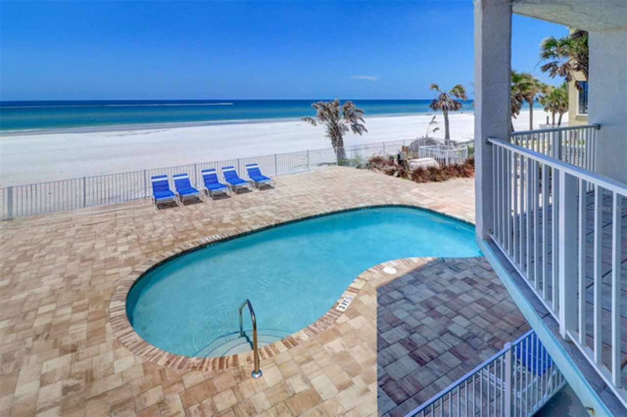 Under contract-accepting backup offers. Weekly rentals permitted, strong rental history! Direct beach front spacious two-bedroom, two-bath 1, 380-square-foot condominium with superb views of the blue tropical waters and white sandy beaches of the Gulf of Mexico and the Intracoastal Waterways. There are gorgeous water views from just about everywhere you are in this beautiful open floor plan condominium! The large gulf-front balcony has a stairwell that takes you directly to the beach and pool. In addition, a private balcony on the east side with views of the Intracoastal where you can have coffee and watch the beautiful sunrises, and keep an eye on your boat at the dock. You can also ride the semi-private elevator at your foyer door down to the beach, pool and a private dock on the Intracoastal. This unit comes with an under-building assigned parking space and private storage closet in the foyer outside the front entry door. During pre-construction, this floor plan also had the ability to be constructed as a third bedroom. Therefore, this unit could be converted to a third bedroom. This location in Indian Rocks Beach is called The Narrows, one of the unique locations in all of the Pinellas County beaches, providing access and views to the Gulf of Mexico and Intracoastal Waterway. Bring your island attitude to this special place! In addition to the white sand beach front condo, the private waterfront dock awaits on the Intracoastal for fishing and boating. Choose your view of magnificent sunsets from the large open living room, dining, kitchen, balcony or beach. Watch the morning sunlit sky over the Intracoastal from your private balcony. This unit comes fully furnished and decorated, and solid roster of potential future rental bookings. Resort-style amenities include heated pool, patio, barbecue grill, private dock and assigned parking. Activities include 10 restaurants within a 10-12-minute distance or five-minute drive. Paddleboard, kayak and boat rentals are nearby. Splash Harbor Water Park is a three-minute ride. The Sun Coast Beach Trolley stops in front of the condominium daily, and can safely and conveniently take you to all the hot spots along the 26-mile stretch of Pinellas County beaches from Clearwater Beach all the way down to St. Pete Beach. Make your appointment now, you won't be disappointed.