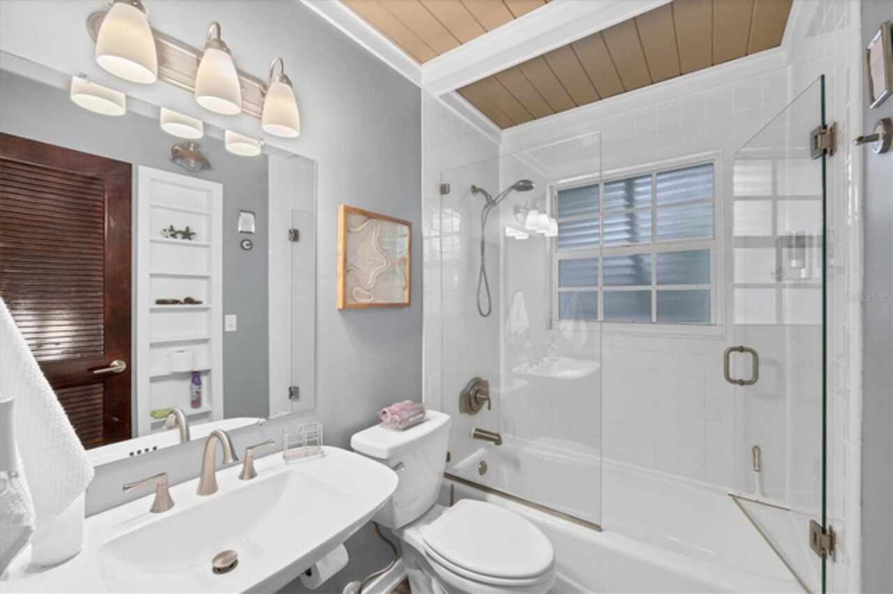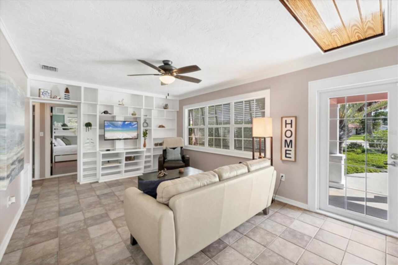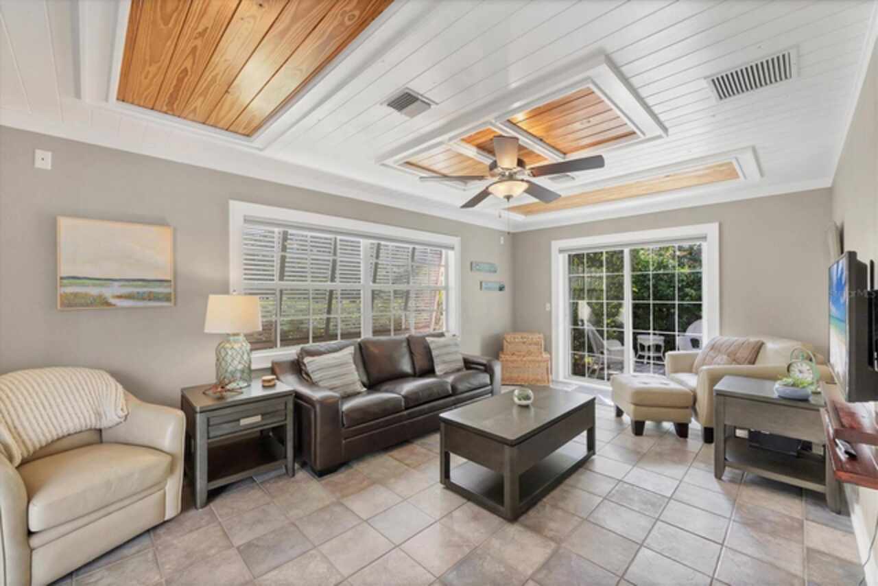 Under contract-accepting backup offers. Welcome to Villa Rosa, an exceptional turnkey residence ideally positioned on a quiet cul-de-sac in the heart of Venice, Florida. This fully furnished pool home is set within biking distance of Venice’s sandy Gulf beaches, dining and specialty shops, while providing rare privacy in a peaceful residential setting. Configured with flexible living arrangements, the home currently functions as a three-bedroom, three-bath layout, with the option to convert to a two-bedroom, two-bath main residence with a one-bedroom, one-bath private suite. The interiors are defined by nautical and Balinese-inspired design, tongue-and-groove ceilings, built-in shelving, and designer window treatments. The renovated kitchen showcases stainless steel countertops, newer appliances, and modern lighting and fans, while the home itself benefits from structural enhancements such as a metal roof, hurricane shutters, and a generator. Outdoors, a saltwater pool anchors the tropical backyard, surrounded by lush landscaping and a pergola-covered sitting area, perfect for Florida’s indoor-outdoor lifestyle. A detached, air-conditioned building expands the possibilities for a yoga studio, office, creative space, or guest suite. Villa Rosa is offered fully equipped, including all furnishings, bicycles, beach chairs, pool essentials and more, and has a strong track record as a highly rated short-term rental. Whether you are seeking a permanent Florida home, seasonal getaway or income-producing asset, this one-of-a-kind property offers the best of all worlds. Don’t miss the opportunity to own a furnished coastal retreat in Venice, schedule your private showing today!